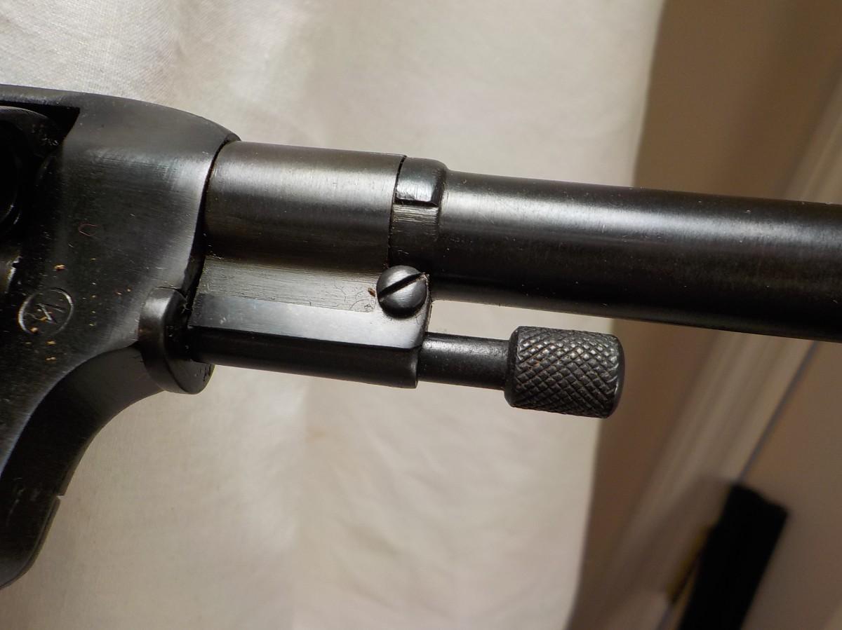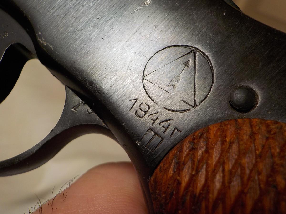 A amazing well built hand gun, all metal, smooth barrel, bluing at 80%,6 round fluted cylinder and checker wood hand grips. Barrel lenght 4.5 in has holster and landyerd with screw driver for cleaning.
