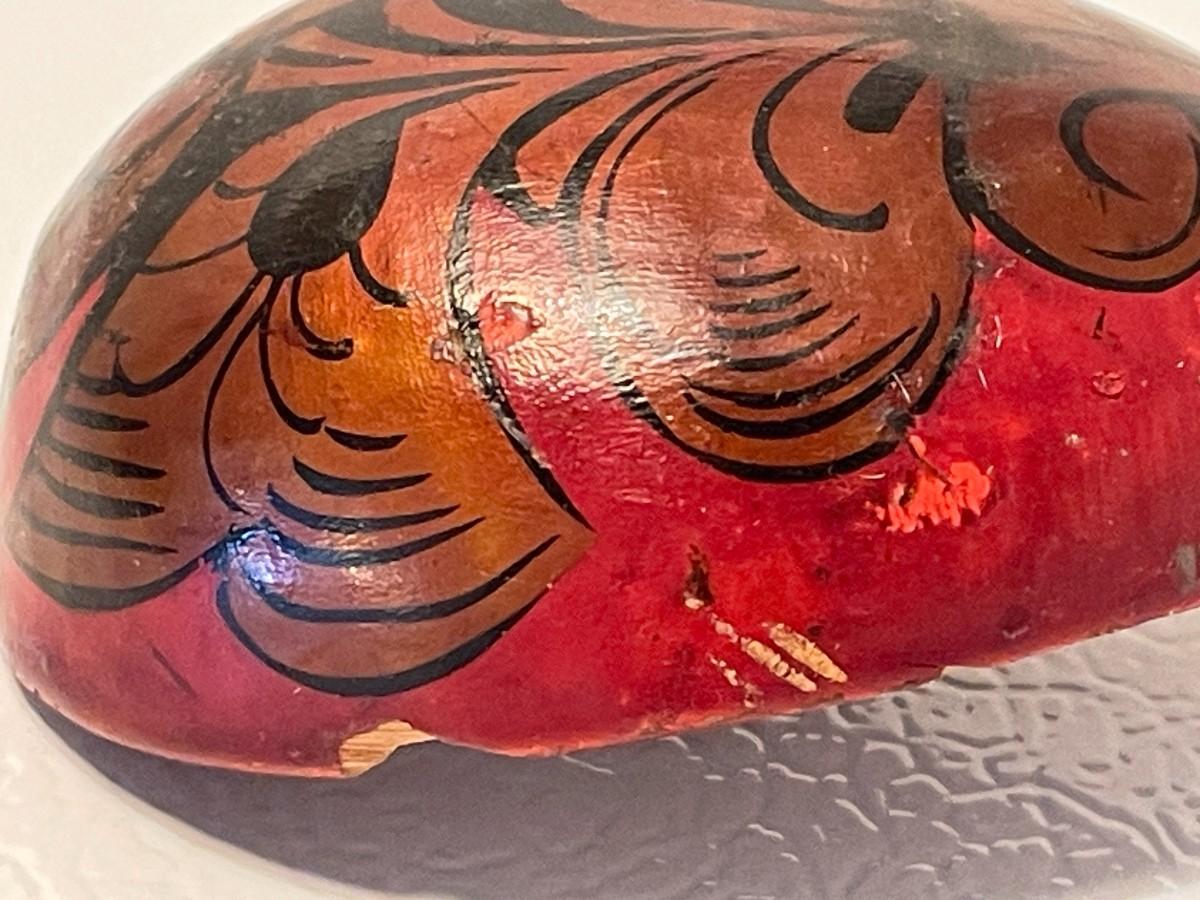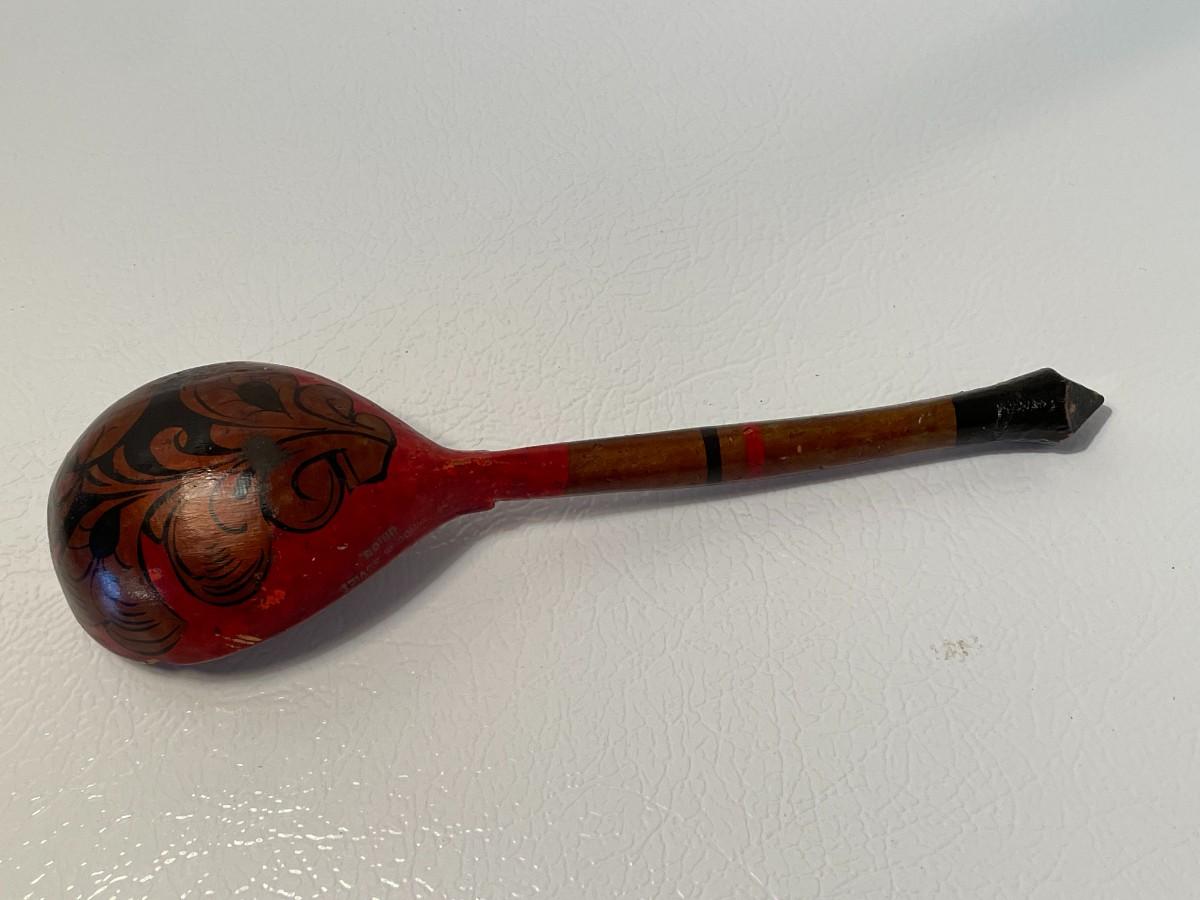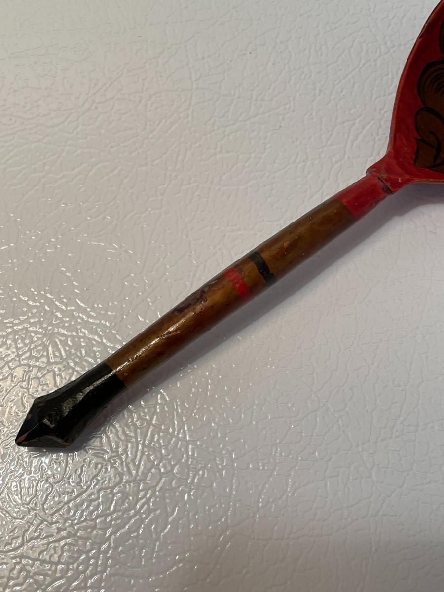 This spoon is about 7.75 inches in length and has been hand painted. There is a small chip on one edge of the spoon, otherwise it is in great vintage condition.