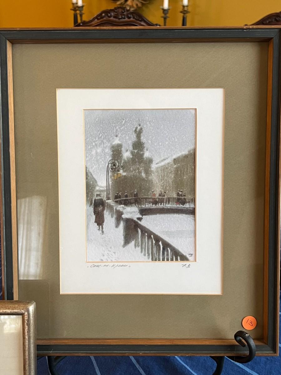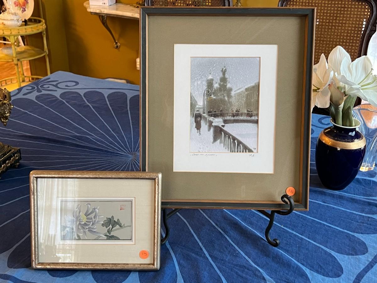 Russian Print Lithograph and Chinese Watercolor (est value $35-$50)