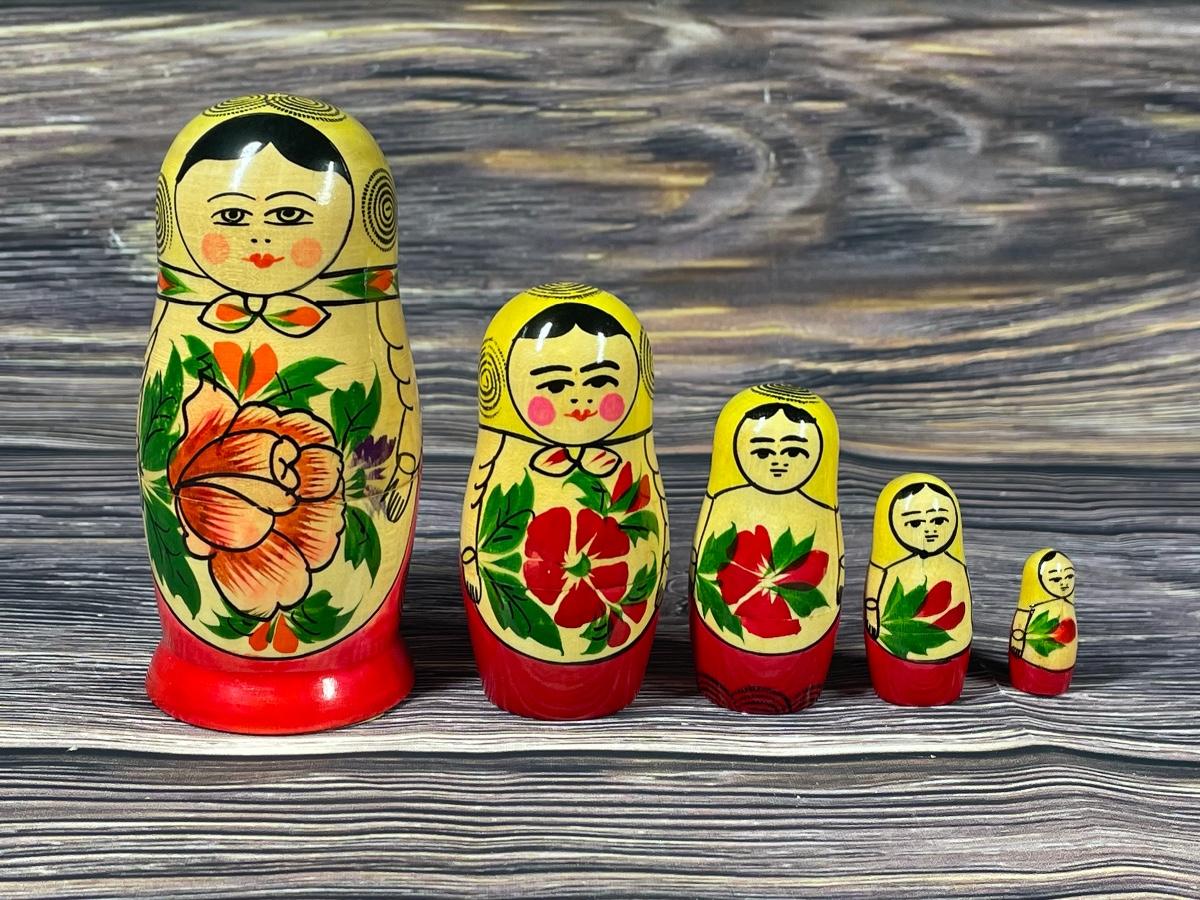 Russian Vintage Wood Matryoshka Nesting Dolls Set of Five