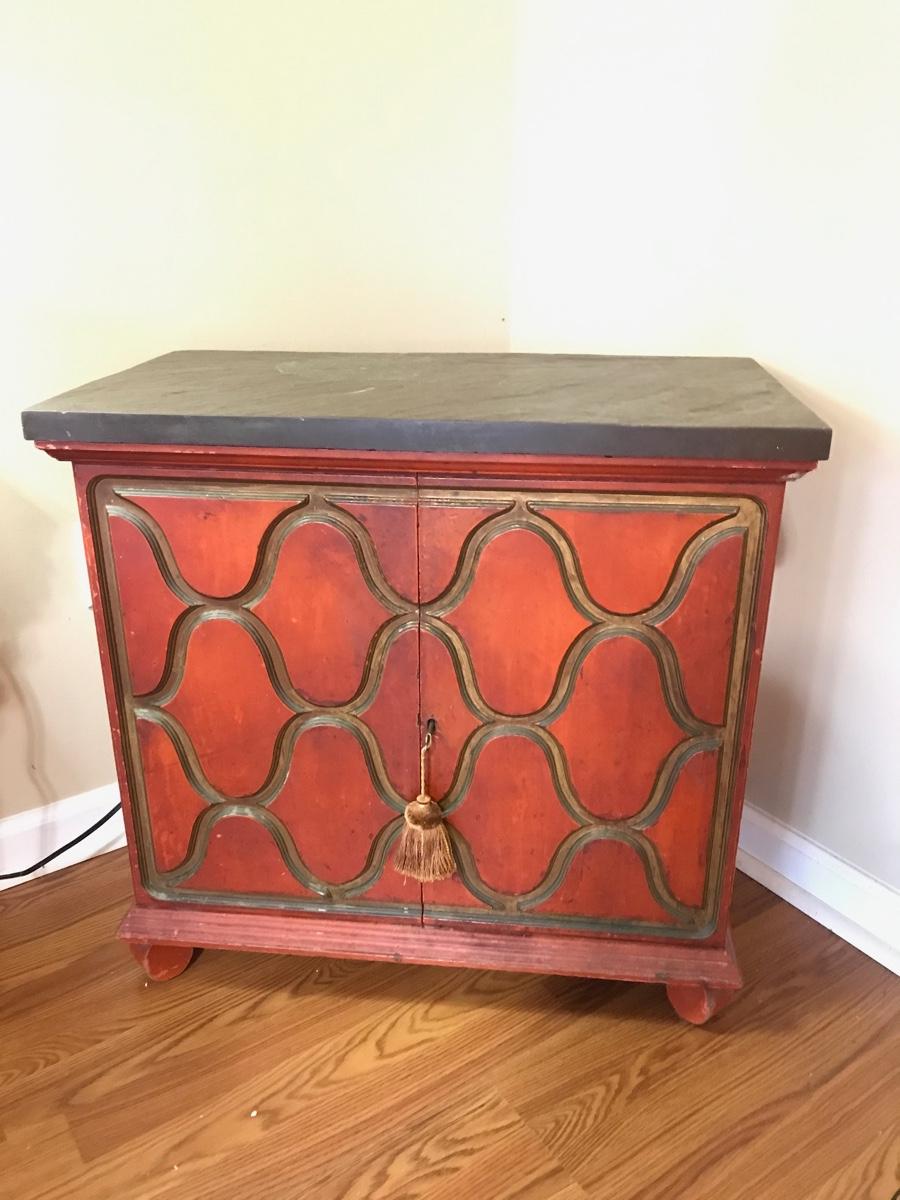 **Rust Colored Console Cabinet w/2 Doors & Slate Top & Key