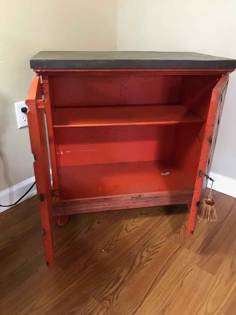 Rust Colored Console Cabinet w/2 Doors & Slate Top & Key 28"W x 15"D x 27"H