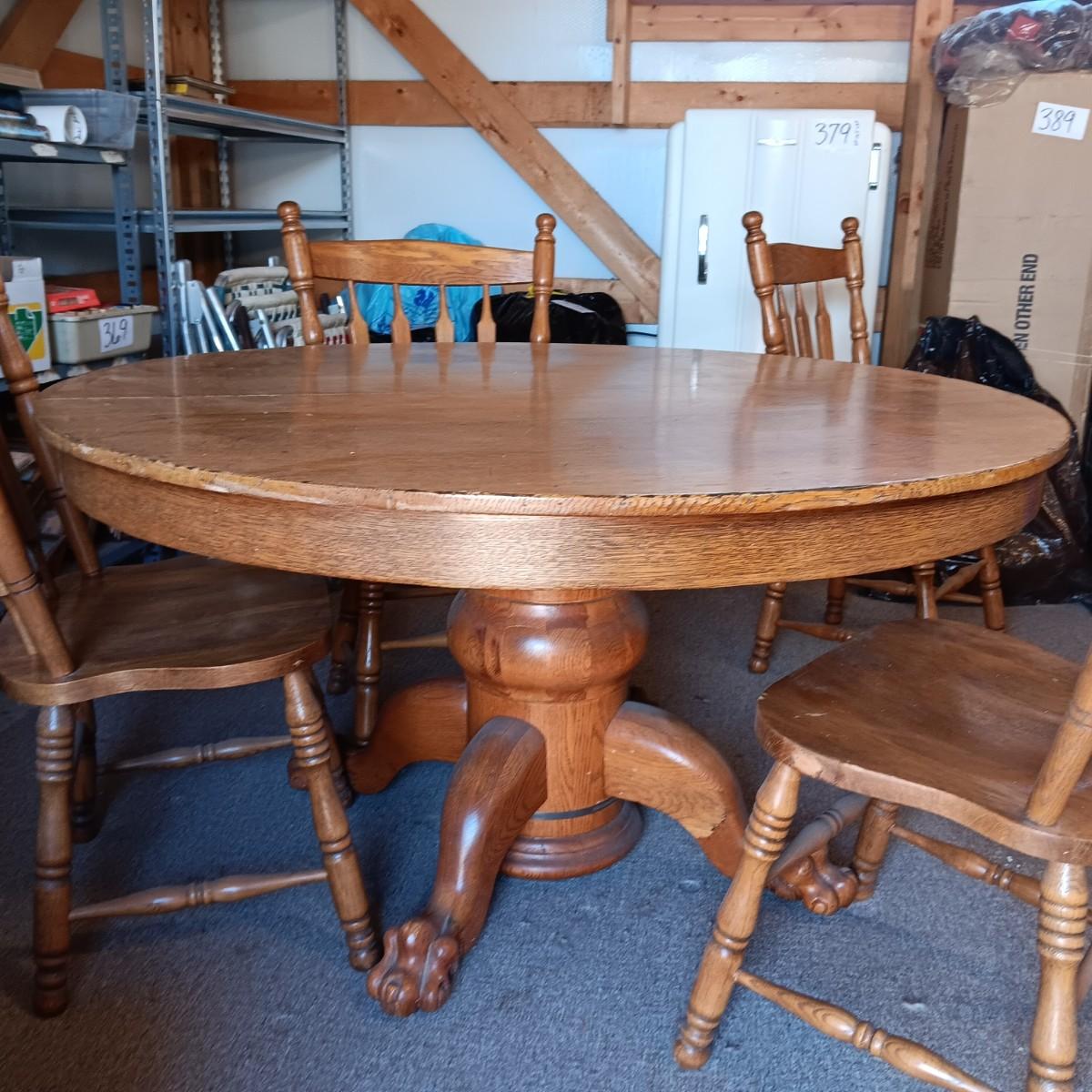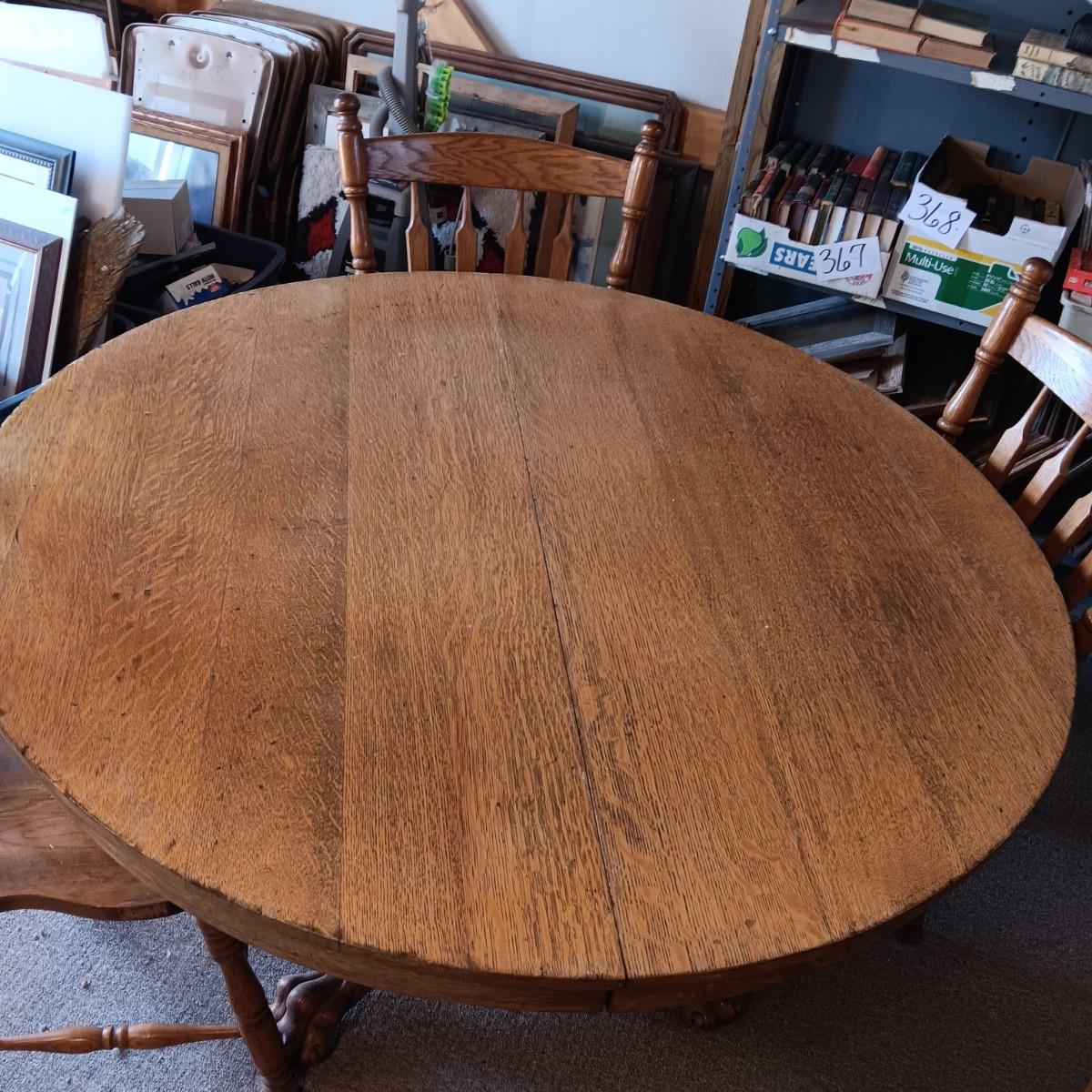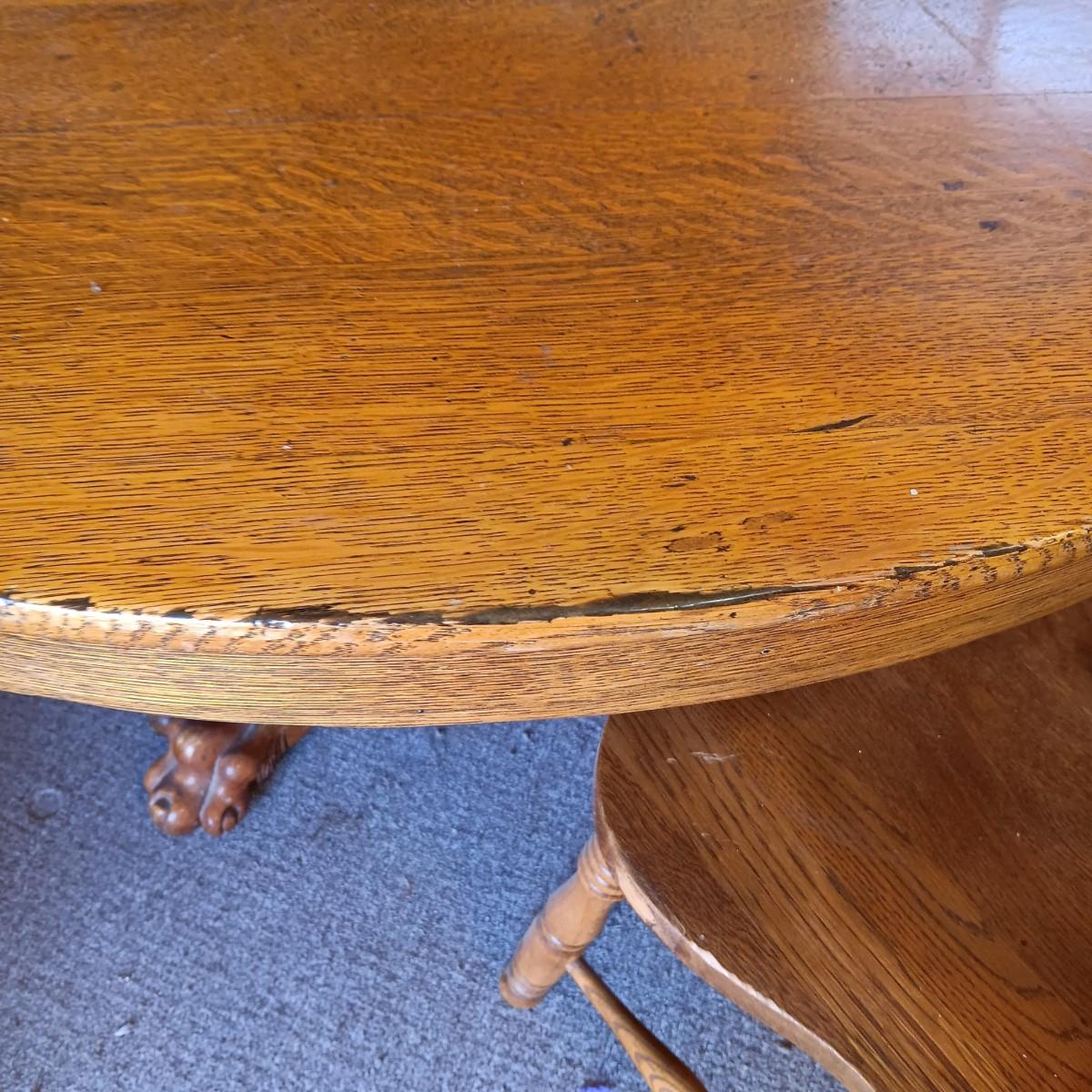 54" ROUND THERE ARE SOME BLEMISHES WHICH ADD TO THIS RUSTIC TABLE