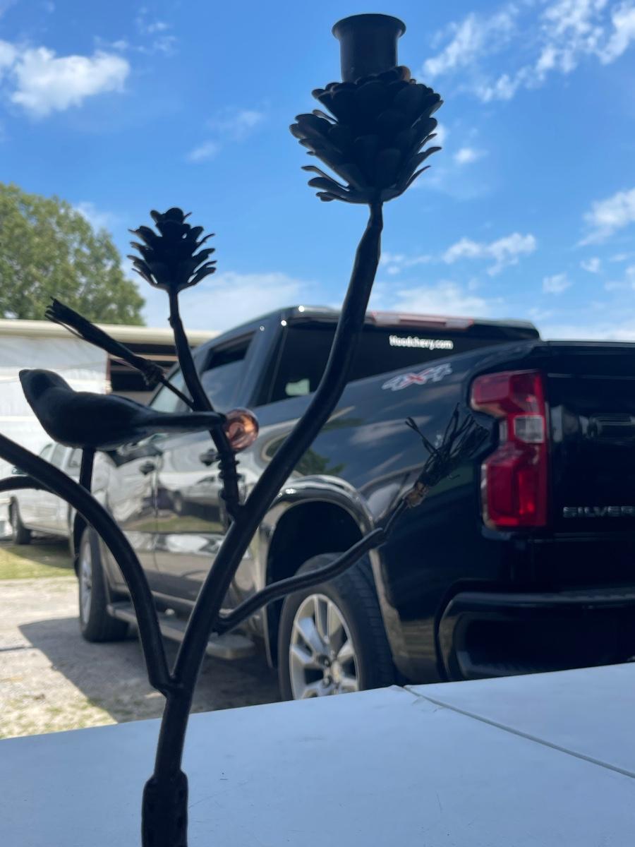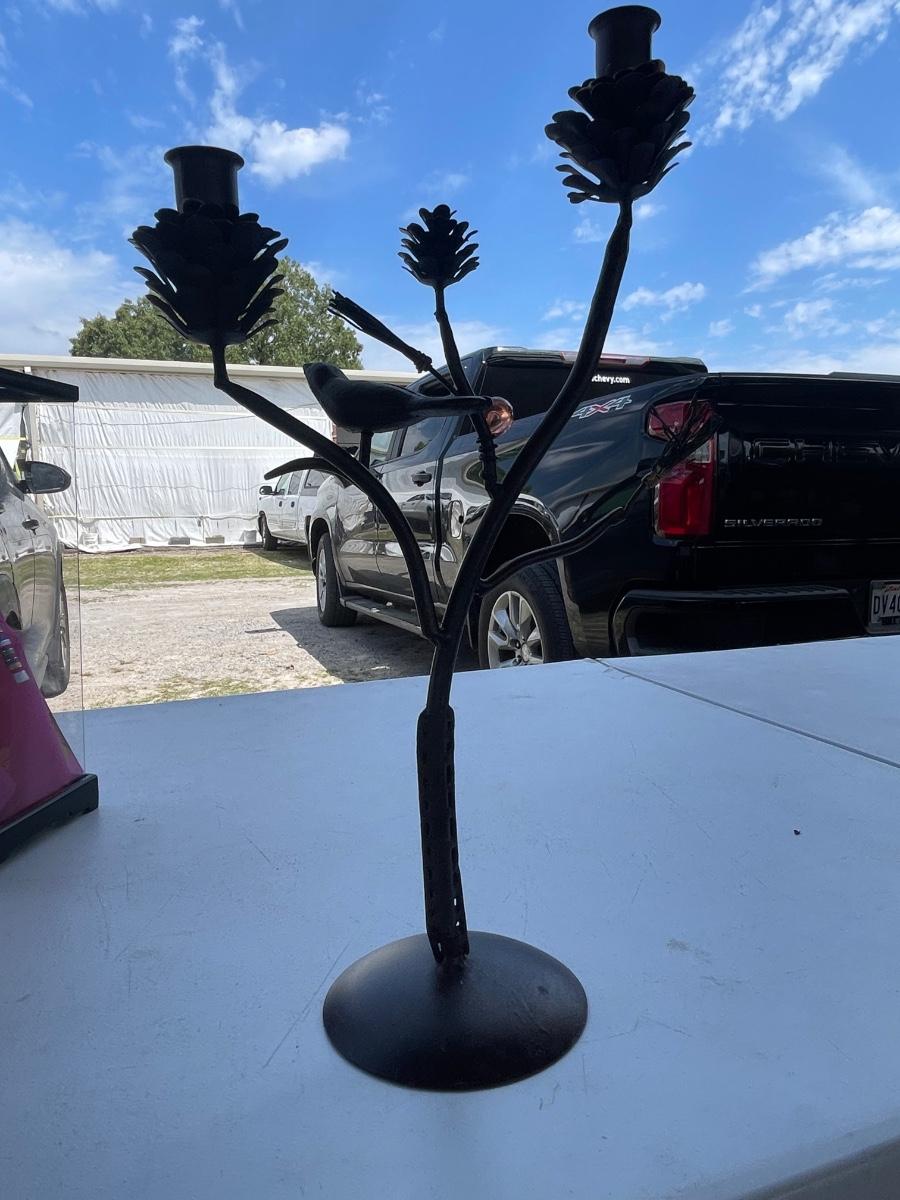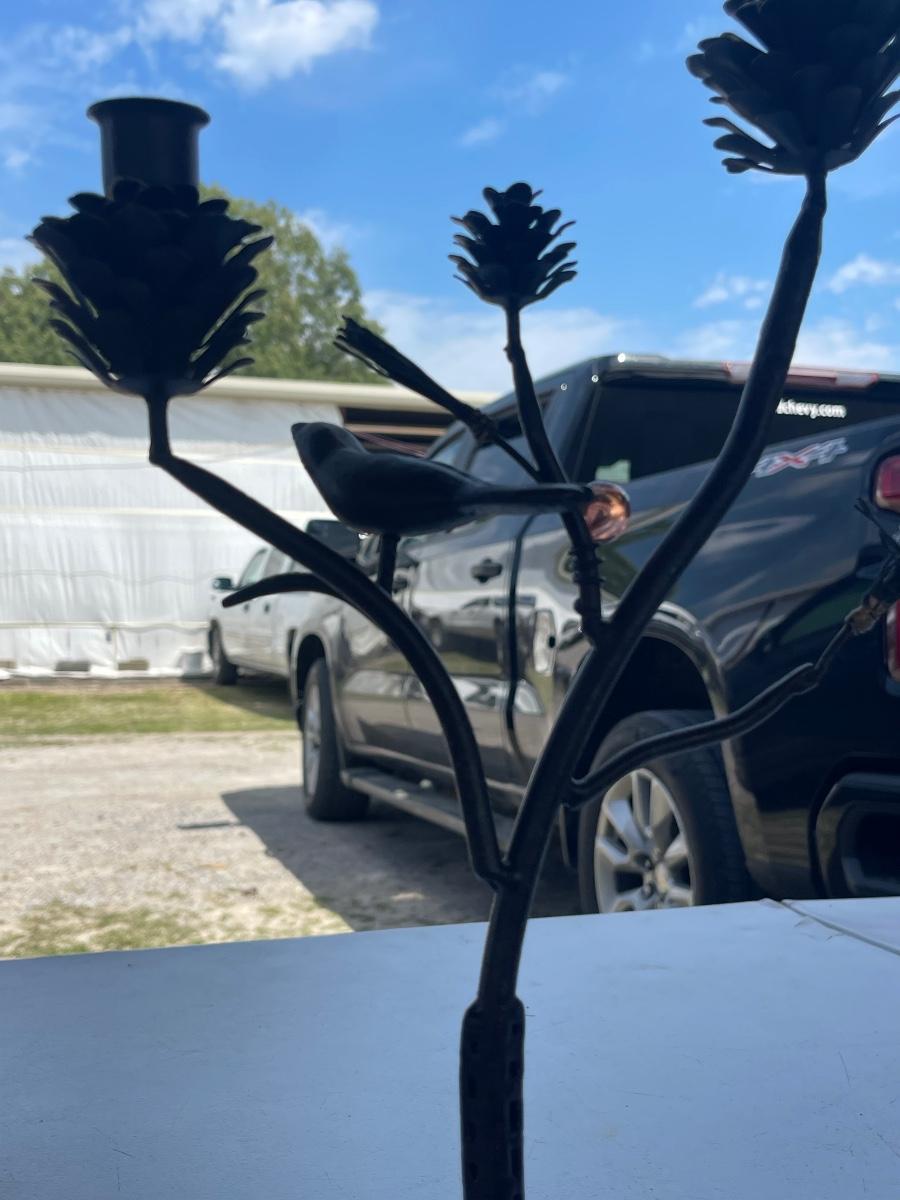 Rustic Artisan Crafted Farmhouse Style Double Taper Candle Holder - Pine Cones, Bird and Needles