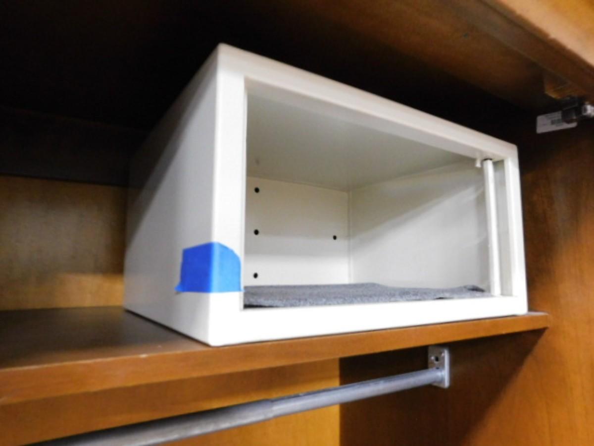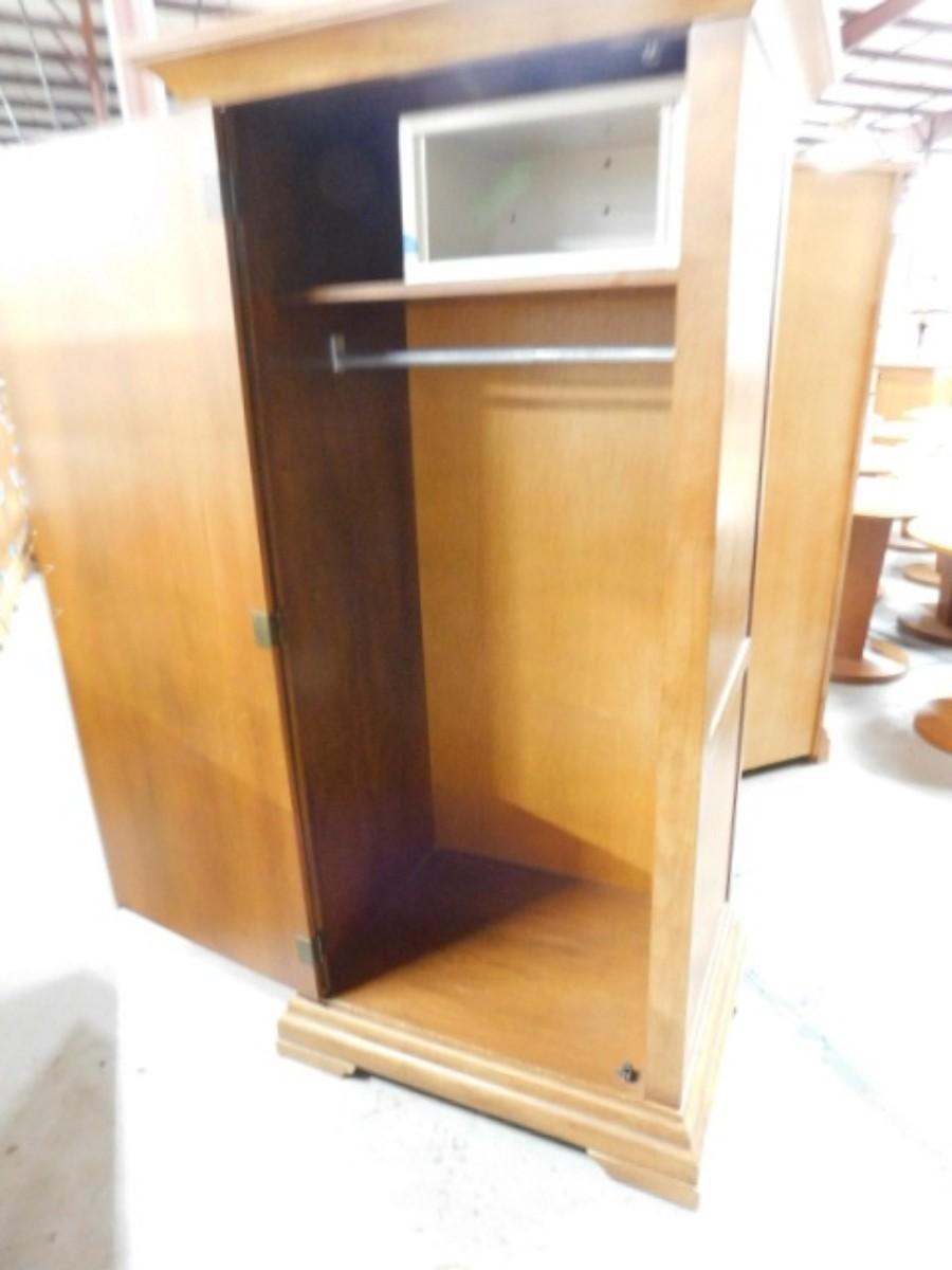 Rustic Arts and Crafts Design Single Door Armoire Cabinet may have a removable safe box on shelf. Bidder is buying one unit. Expect some wear or scratches to the finish. Shipping option available via freight or local mover at Buyer's expense. Buyer must have all shipping scheduled within the stated dates and times of pickup. Recommended local mover is Beaty Bros. Moving 828-201-2982