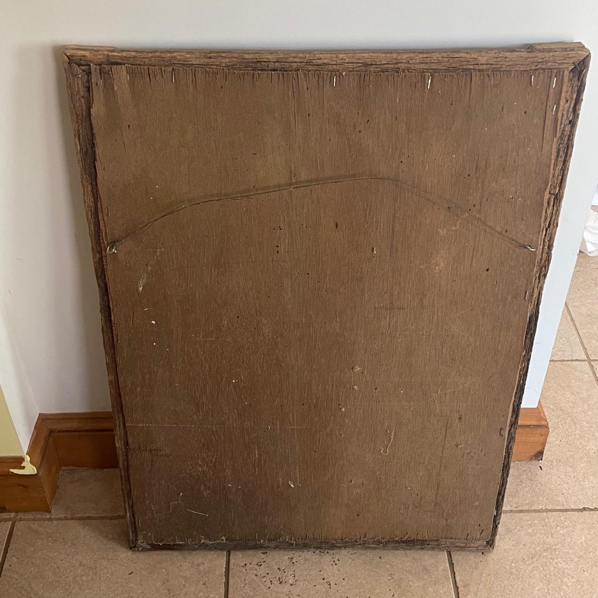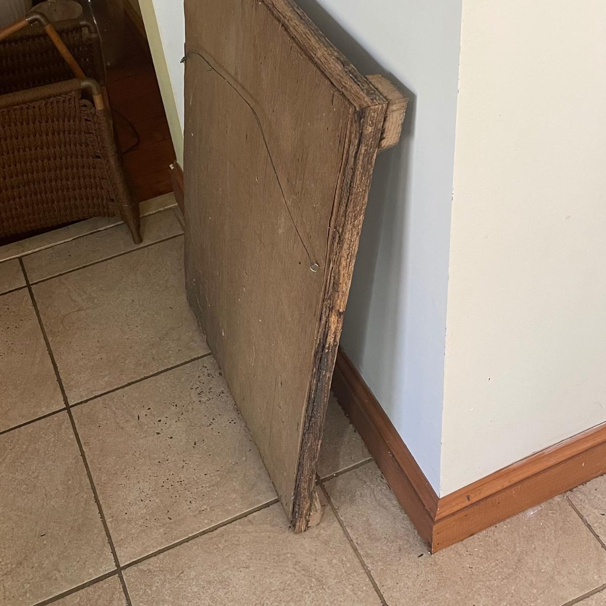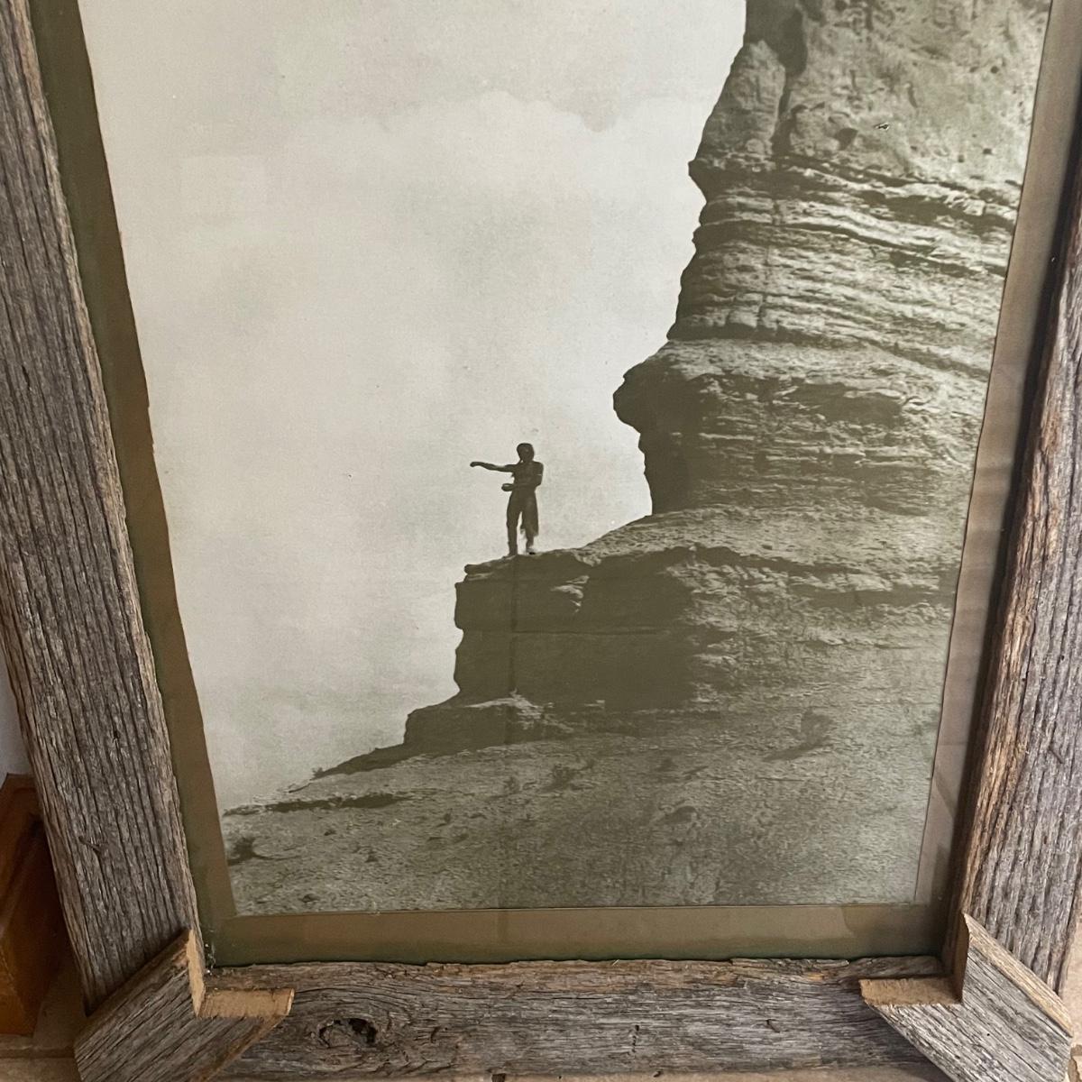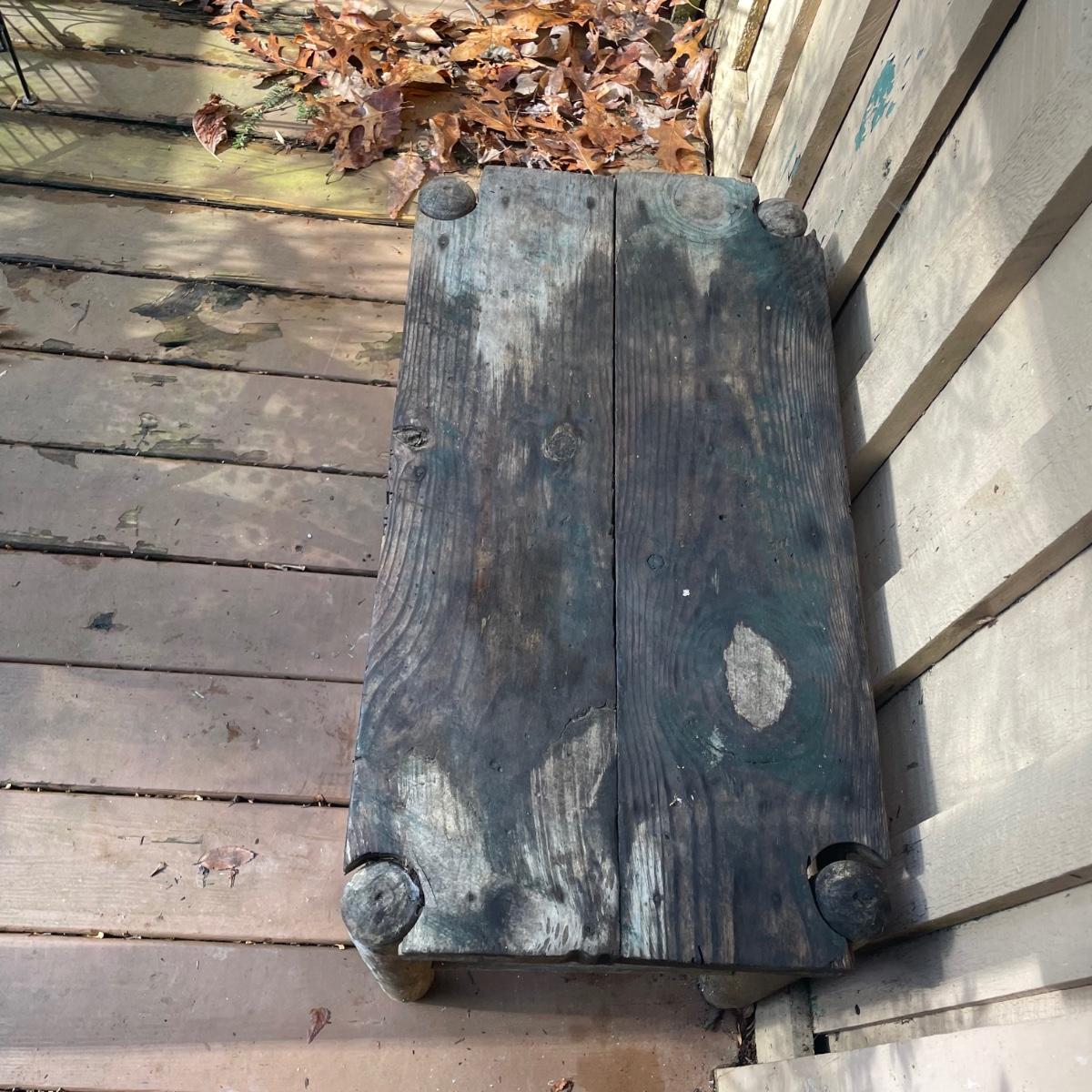 This rustic bench measures 29” x 15.5 x 17.5” and is in good condition (it was partially wet when photographed, hence the darker areas). We paired it with a rustic framed black and white photo; frame measures 21.5” x 29“.