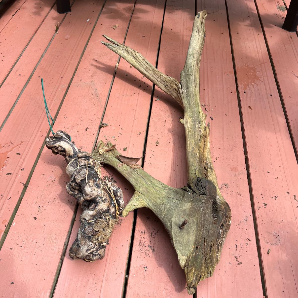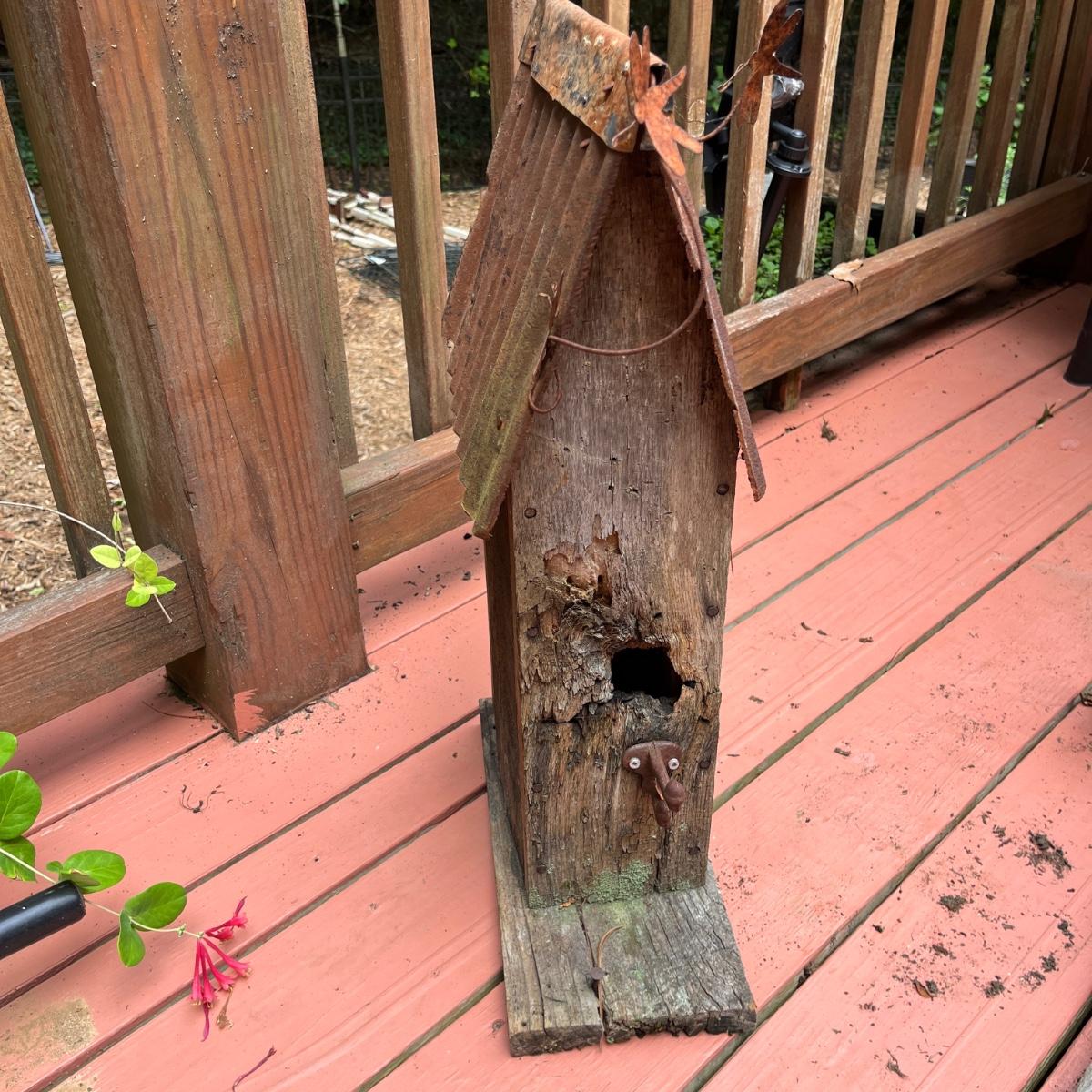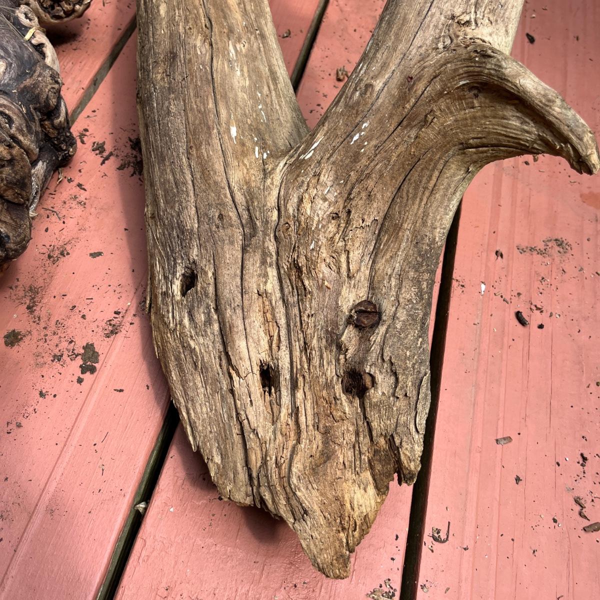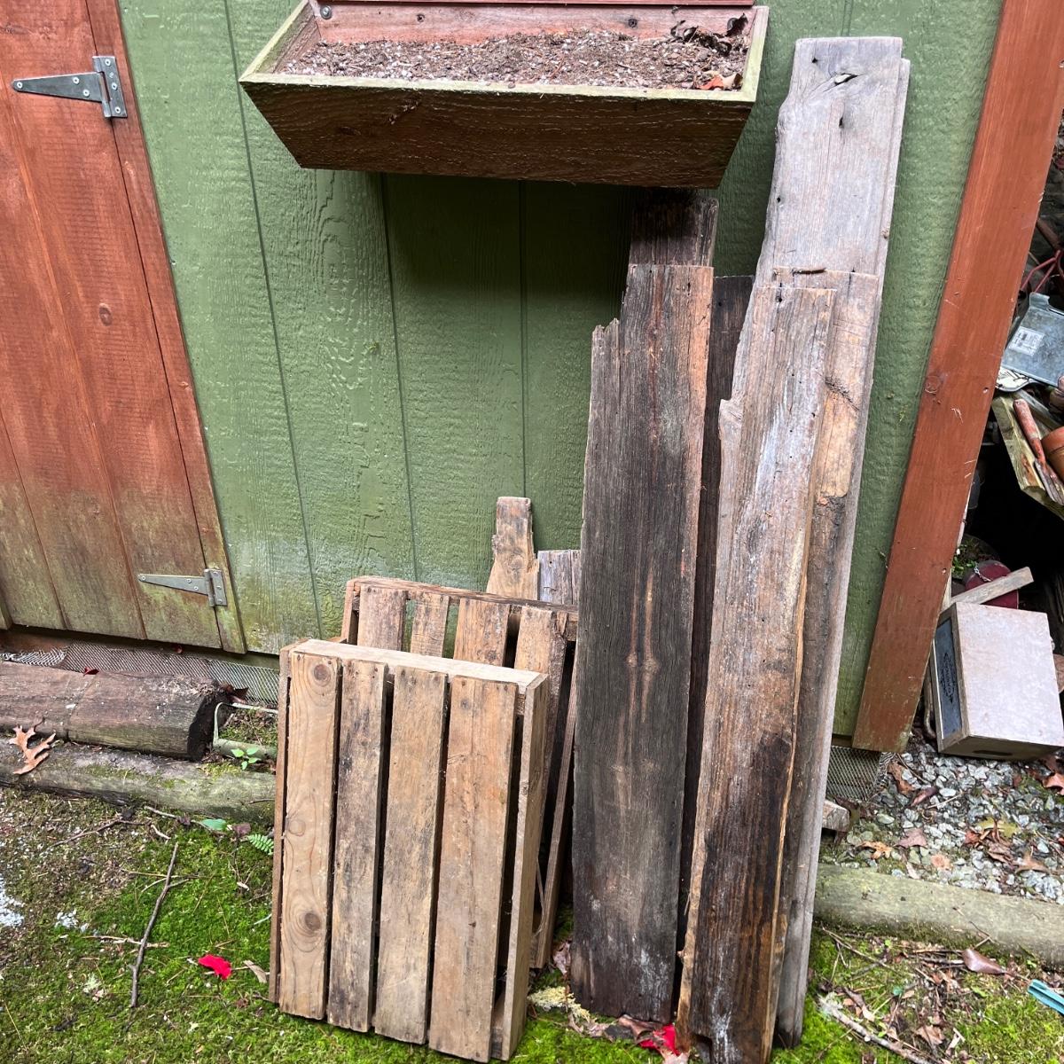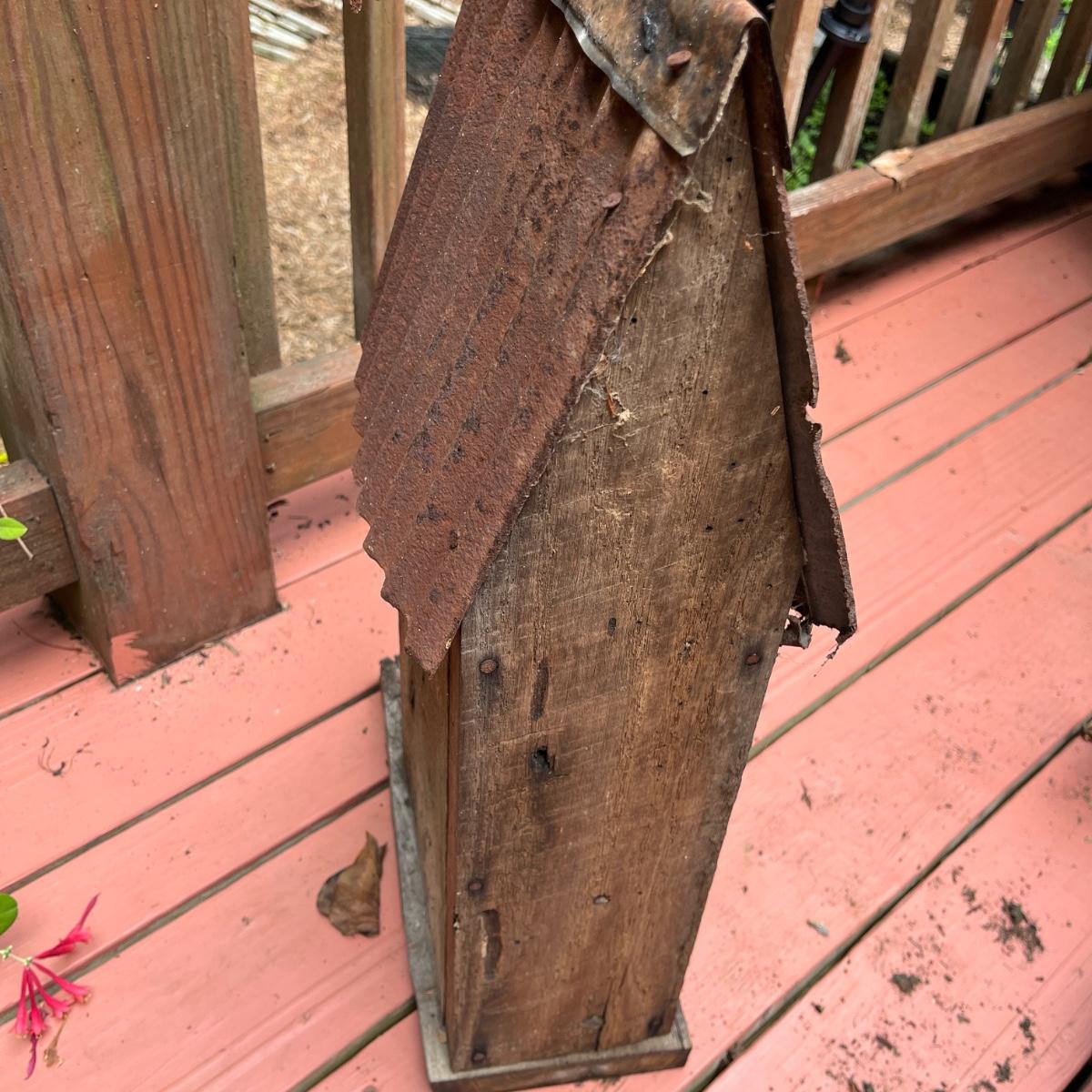 Lot includes driftwood birdhouse, barn wood birdhouse, owl perch, barn wood, driftwood and more. Largest birdhouse 6” x 13” x 24”H and longest piece of barn wood measures 55” x .75” x 7”H.