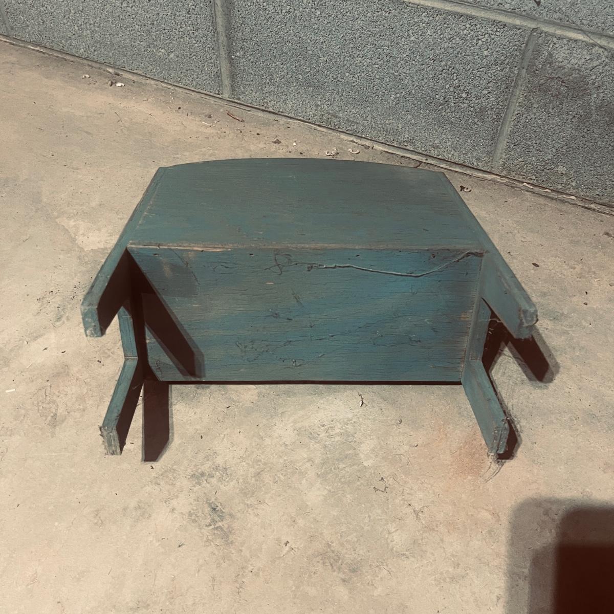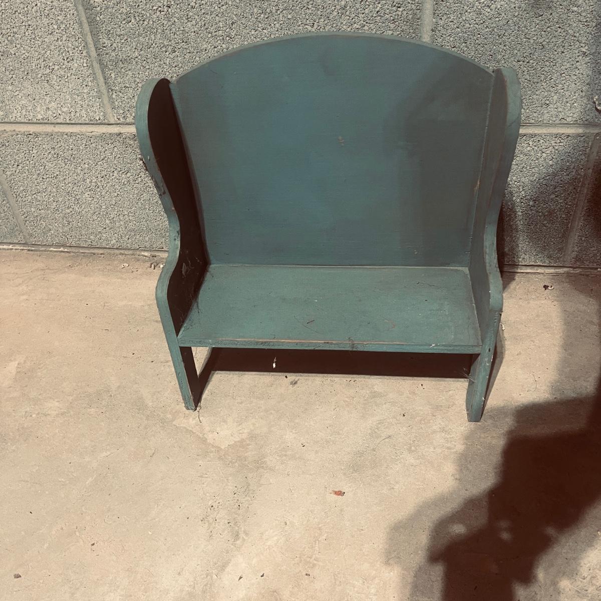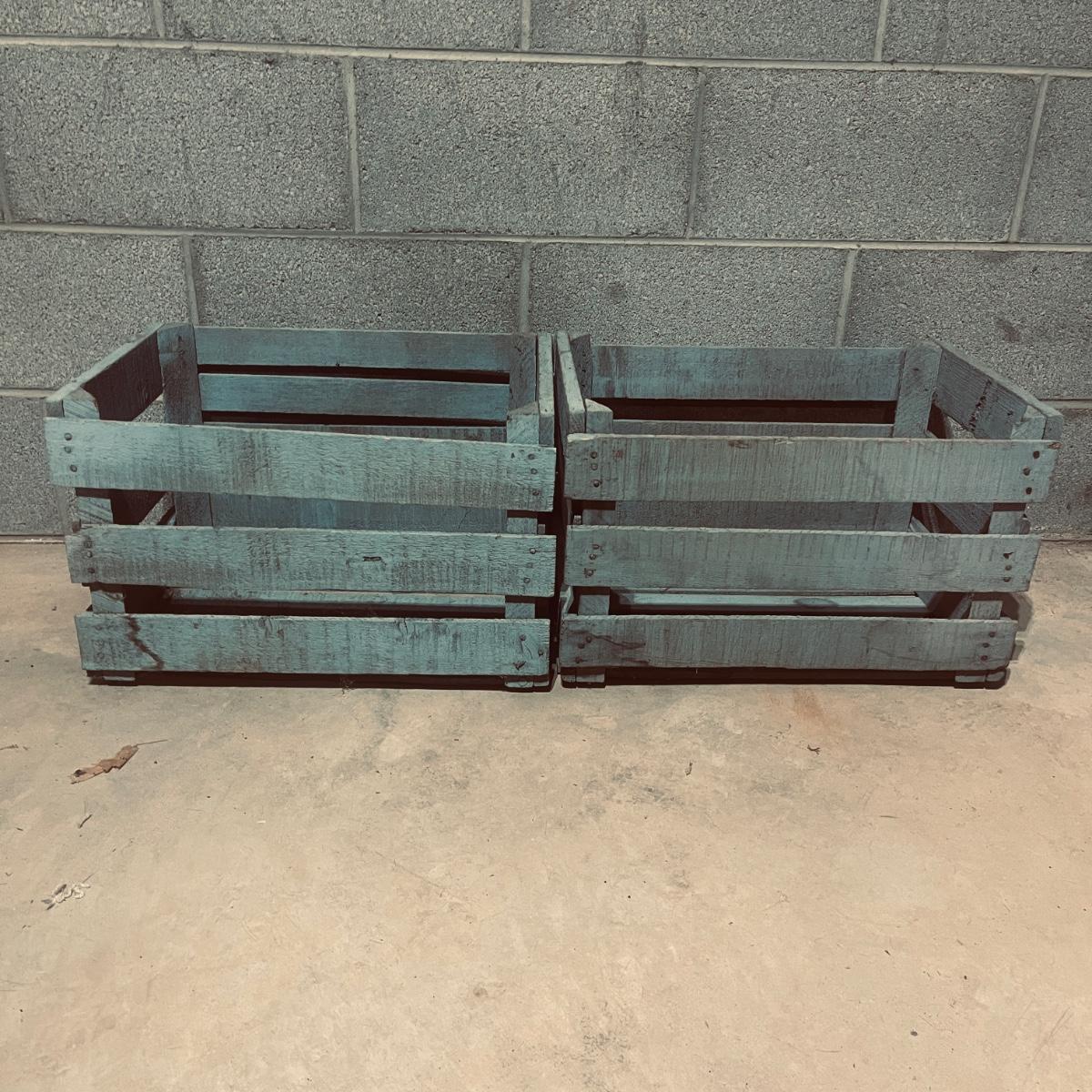 Lot includes two wooden crates, wooden step stool, wooden open/closed sign and doll sized wooden bench. Crates measure 13.5” x 19” x 12”H.