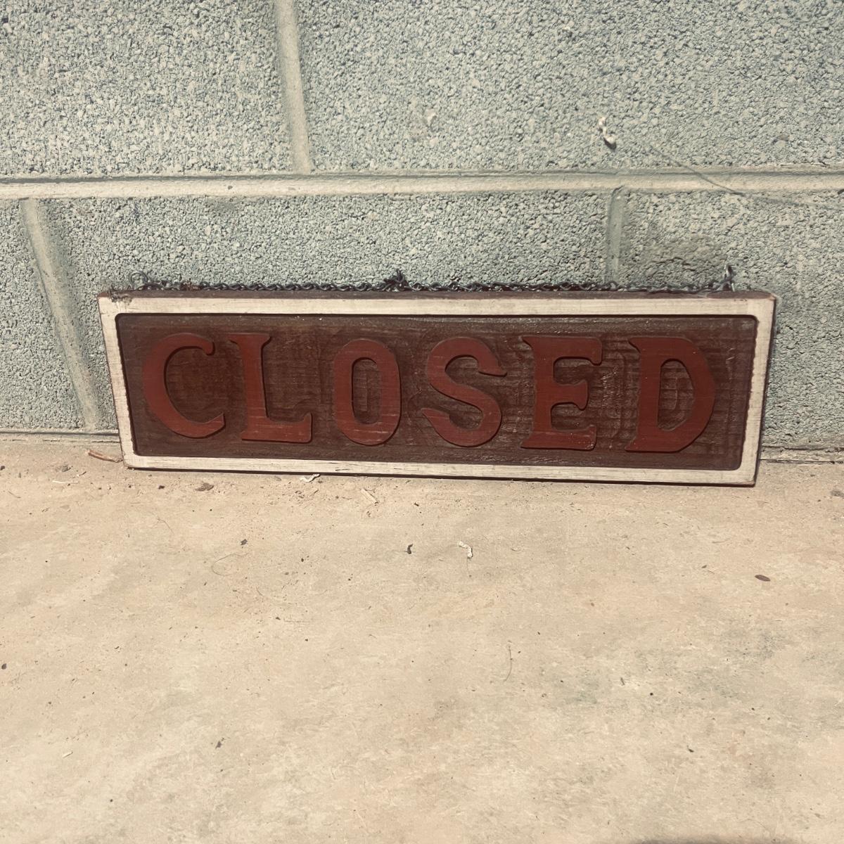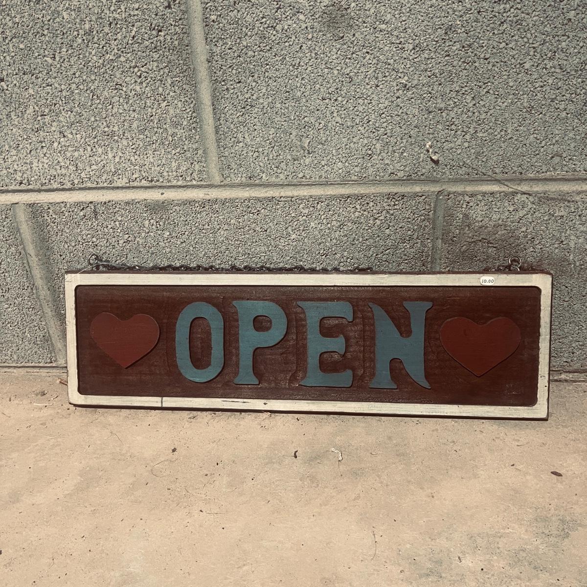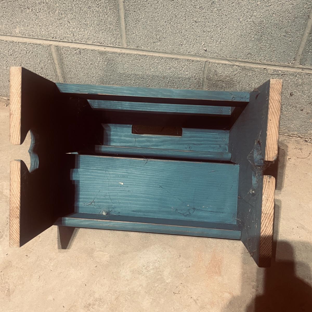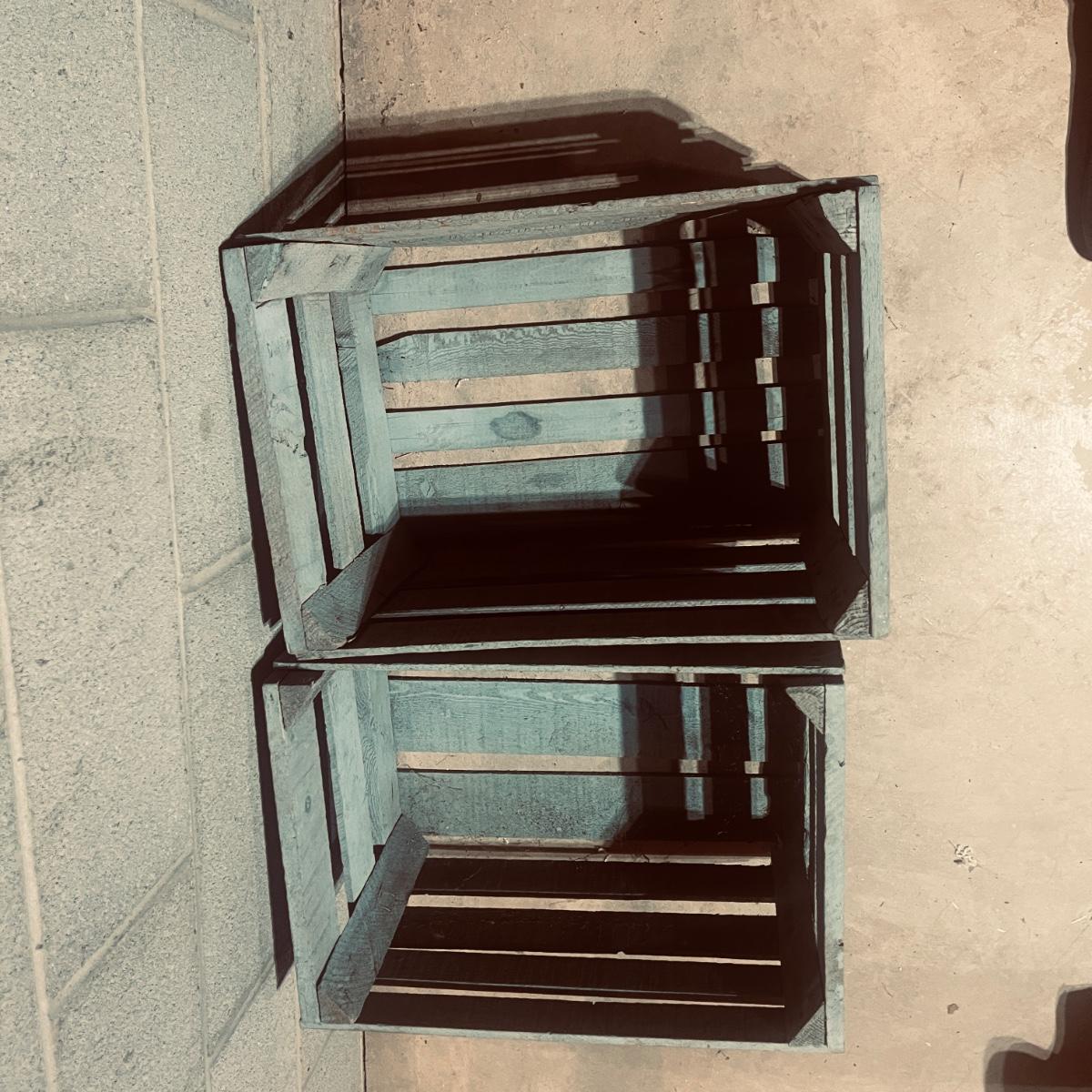 Lot includes two wooden crates, wooden step stool, wooden open/closed sign and doll sized wooden bench. Crates measure 13.5” x 19” x 12”H.