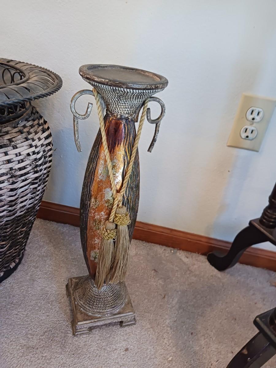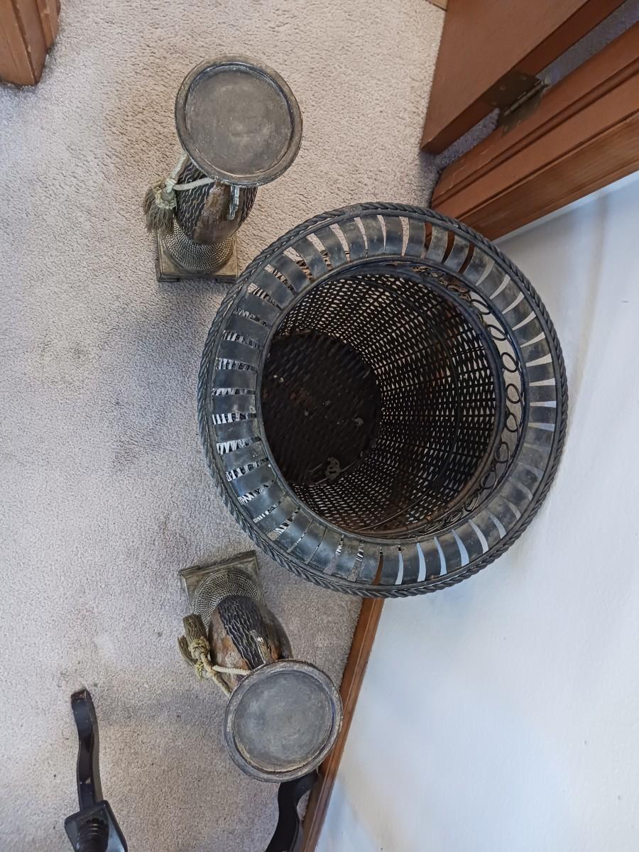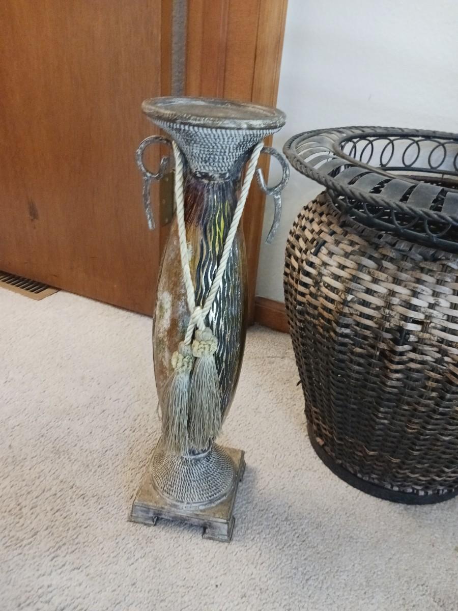 WICKER BASKET W/ METAL RIM (16X16) TWO CANDLE HOLDERS