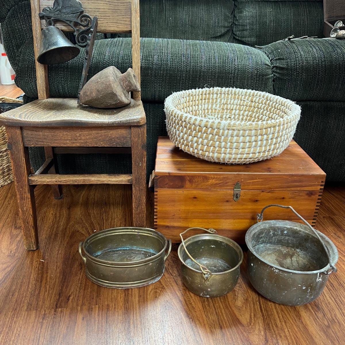 Rustic Decor Lot - Wood, Cast Iron, Brass