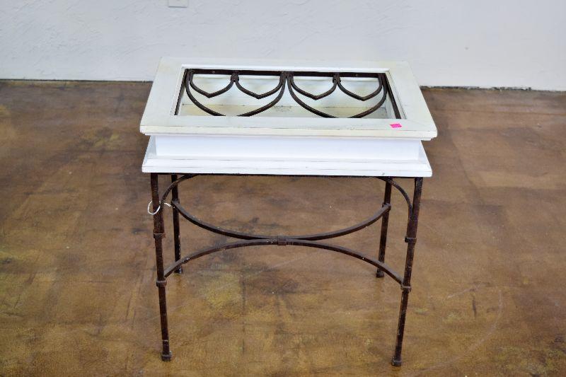 The item appears to be in good overall condition, with only general signs of wear from usage and display. There may be some general nicks and marks on the piece. The item measures approximately 15" deep X 22" wide X 22 3/8" tall.
