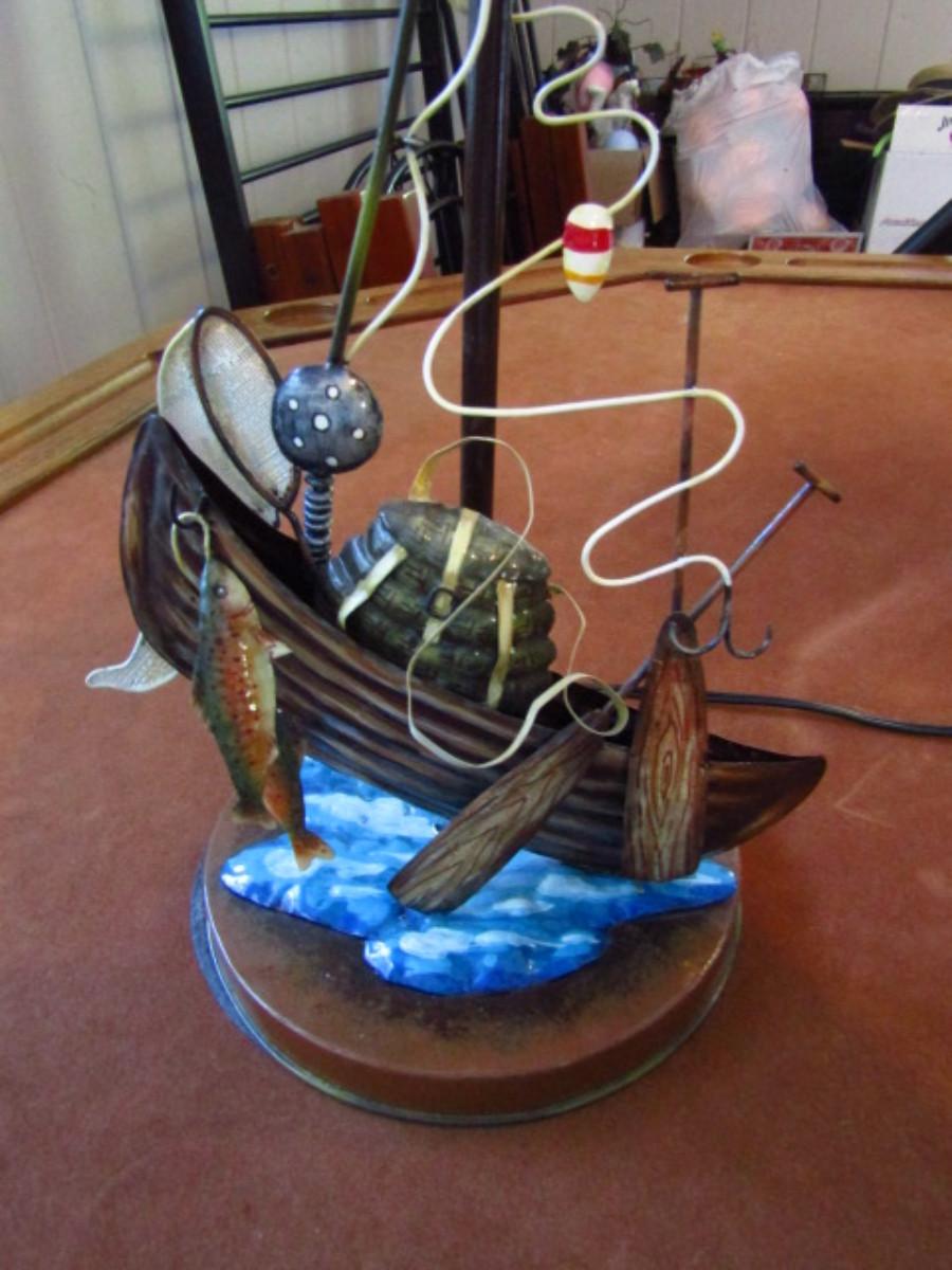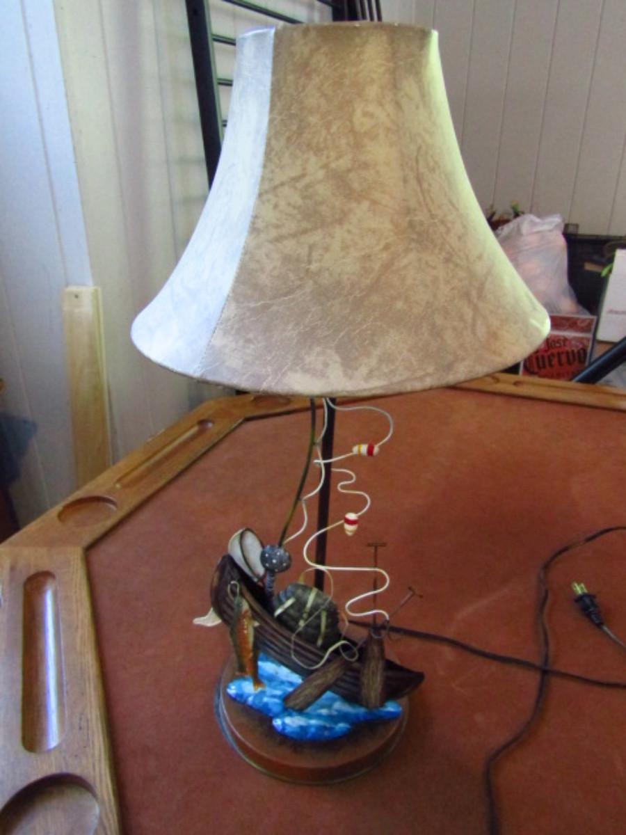 Rustic, Fishing Theme Table Top Lamp with Shade