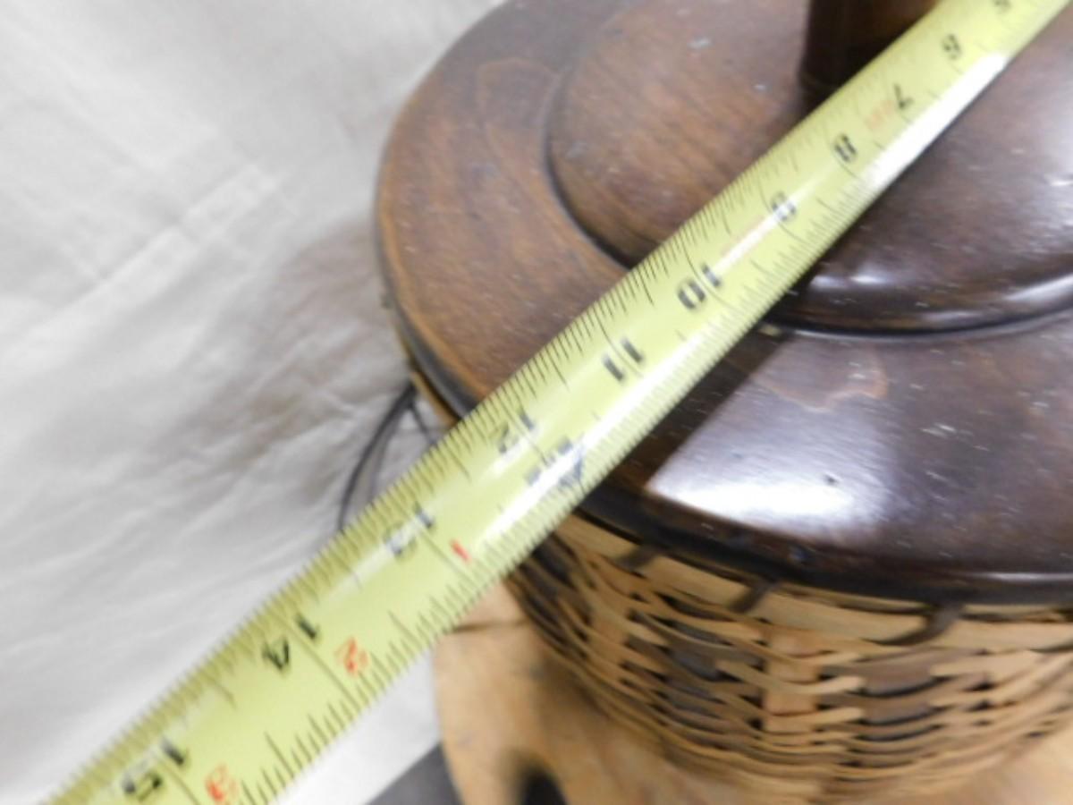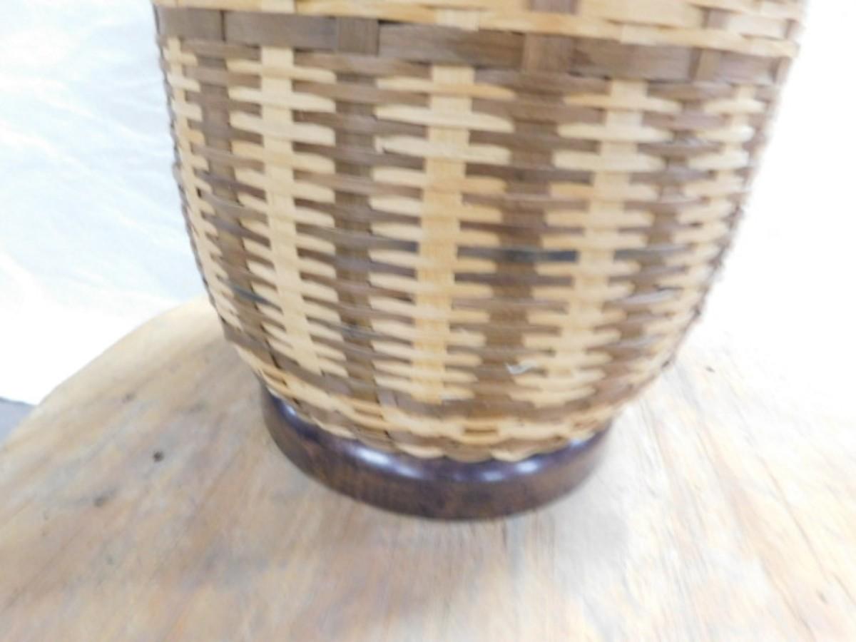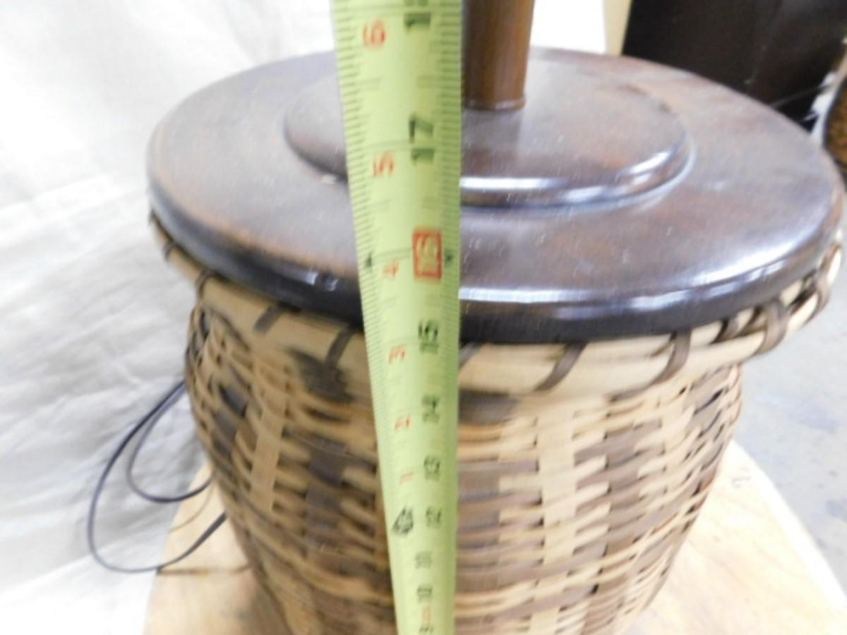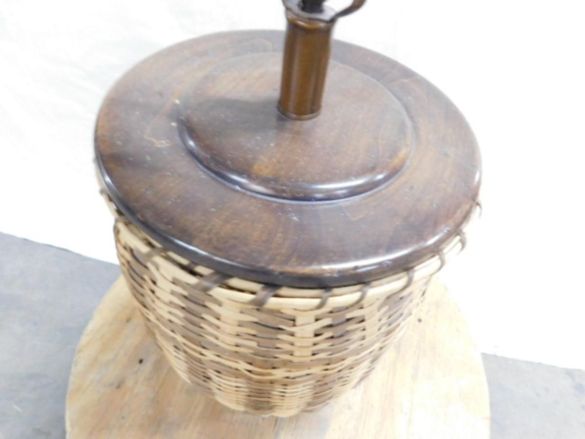 Rustic Hand-Woven Splint Wood Basket Lamp #1. Expect some wear or scratches to the finish. Shipping option available via freight or local mover at Buyer's expense. Buyer must have all shipping scheduled within the stated dates and times of pickup. Recommended local mover is Beaty Bros. Moving 828-201-2982