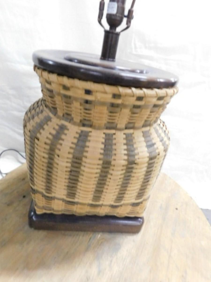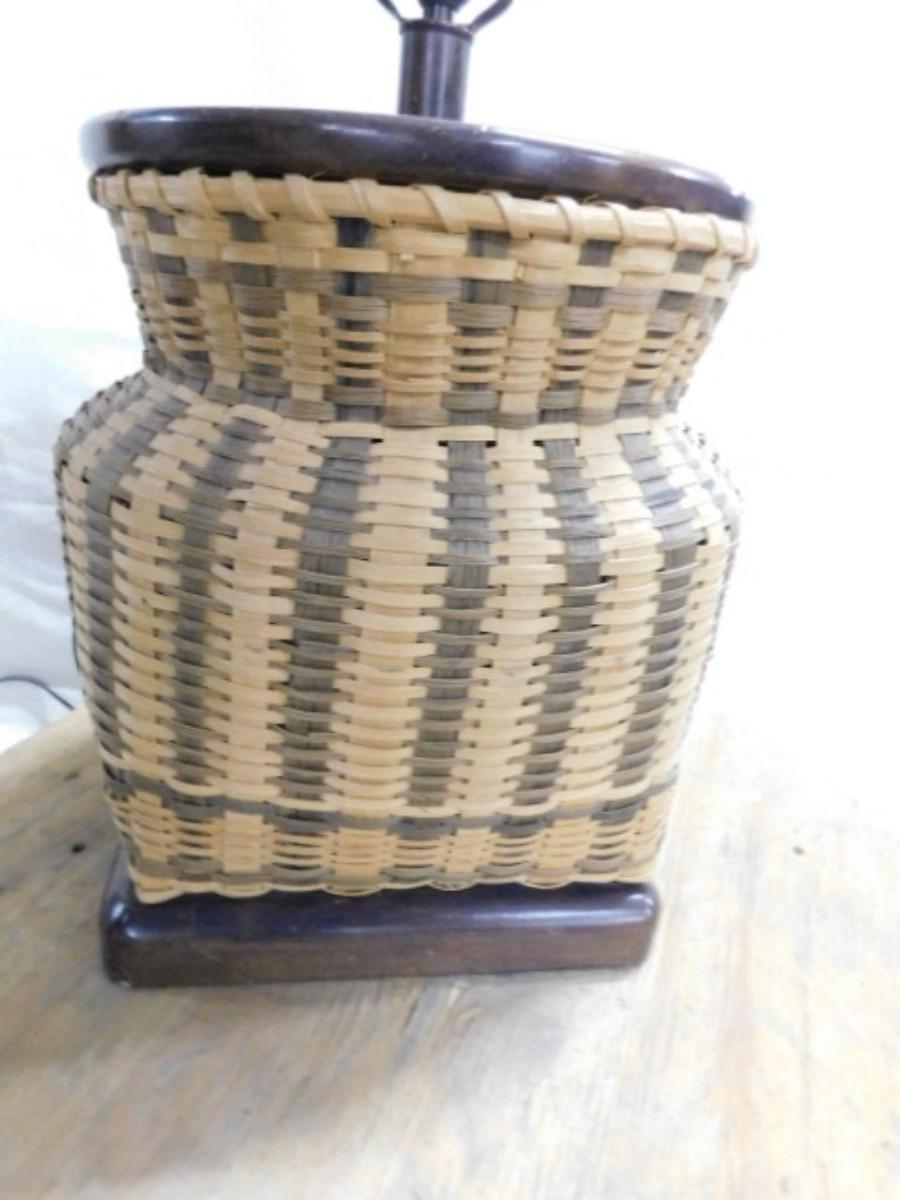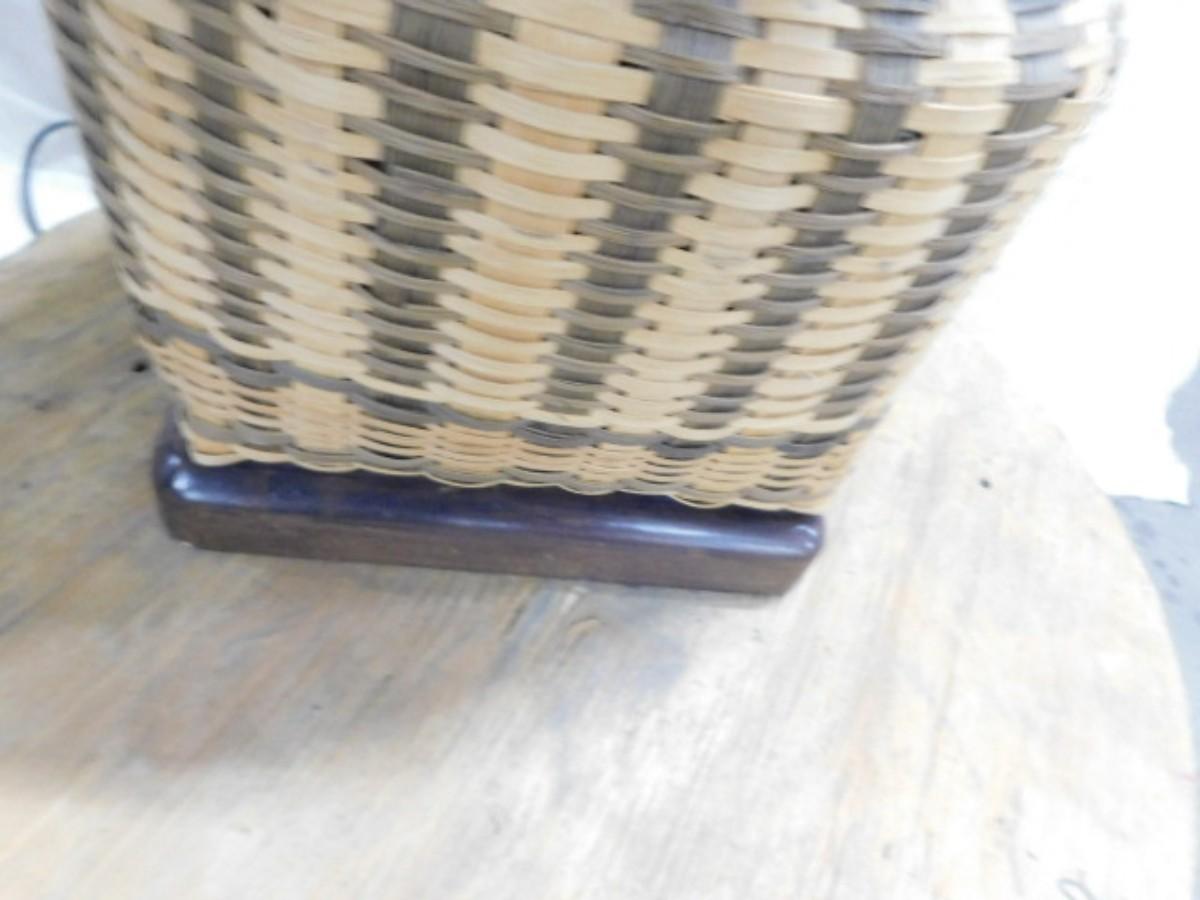 Rustic Hand-Woven Splint Wood Basket Lamp #3 Expect some wear or scratches to the finish. Shipping option available via freight or local mover at Buyer's expense. Buyer must have all shipping scheduled within the stated dates and times of pickup. Recommended local mover is Beaty Bros. Moving 828-201-2982