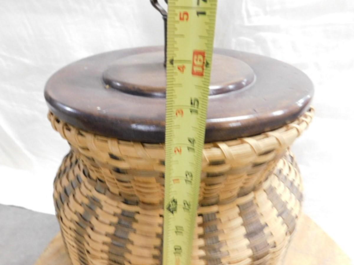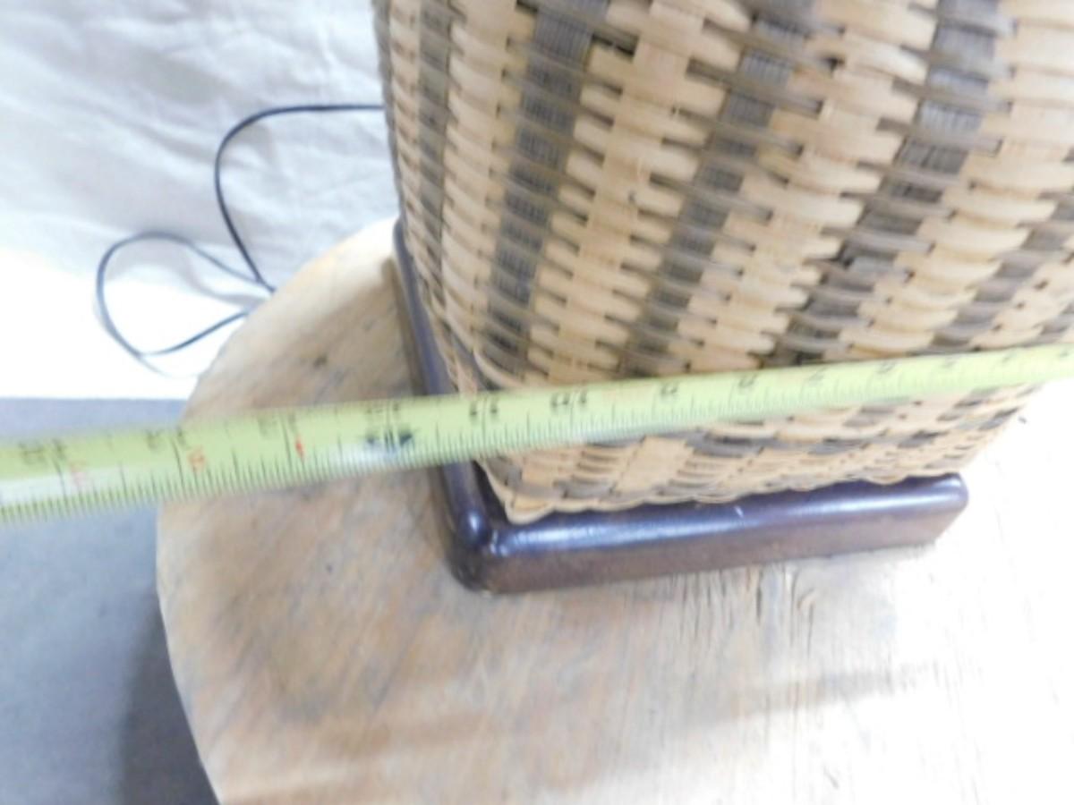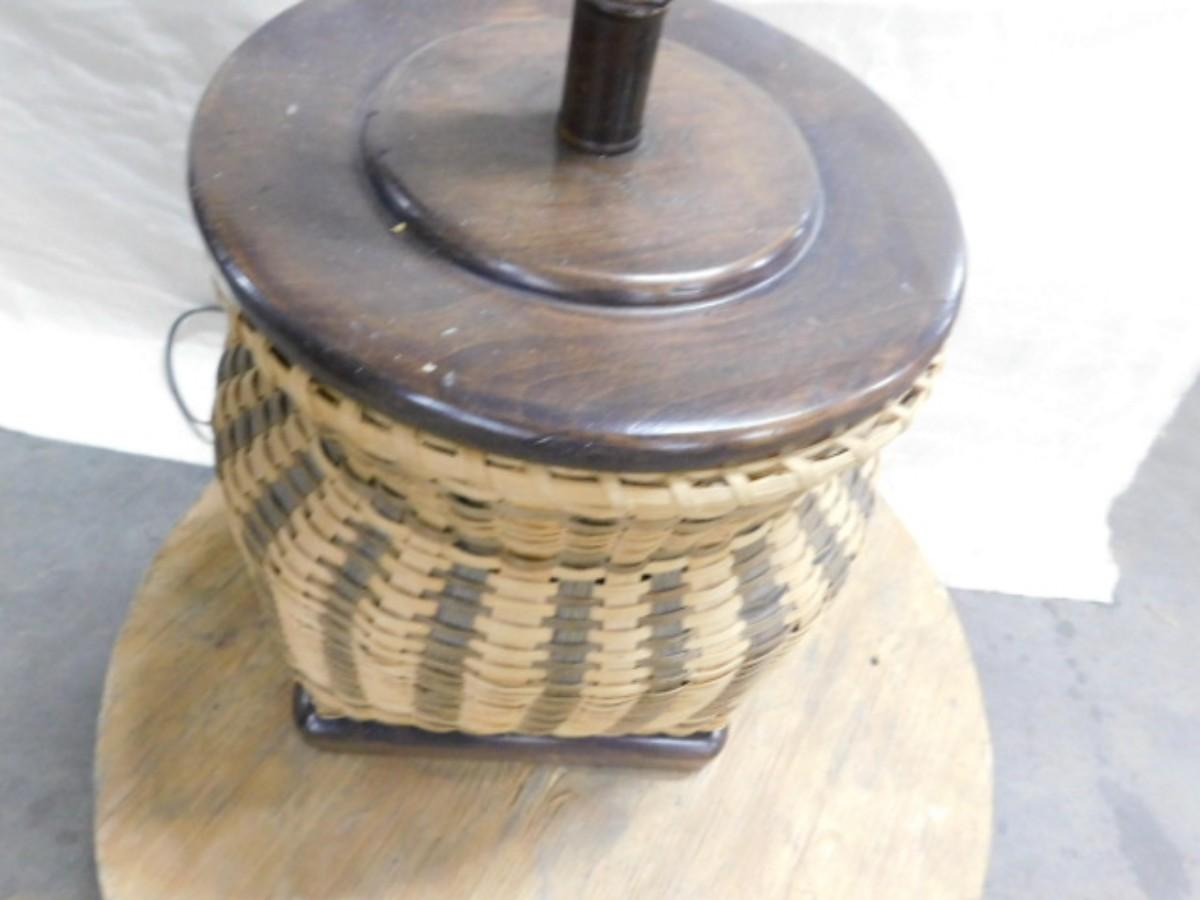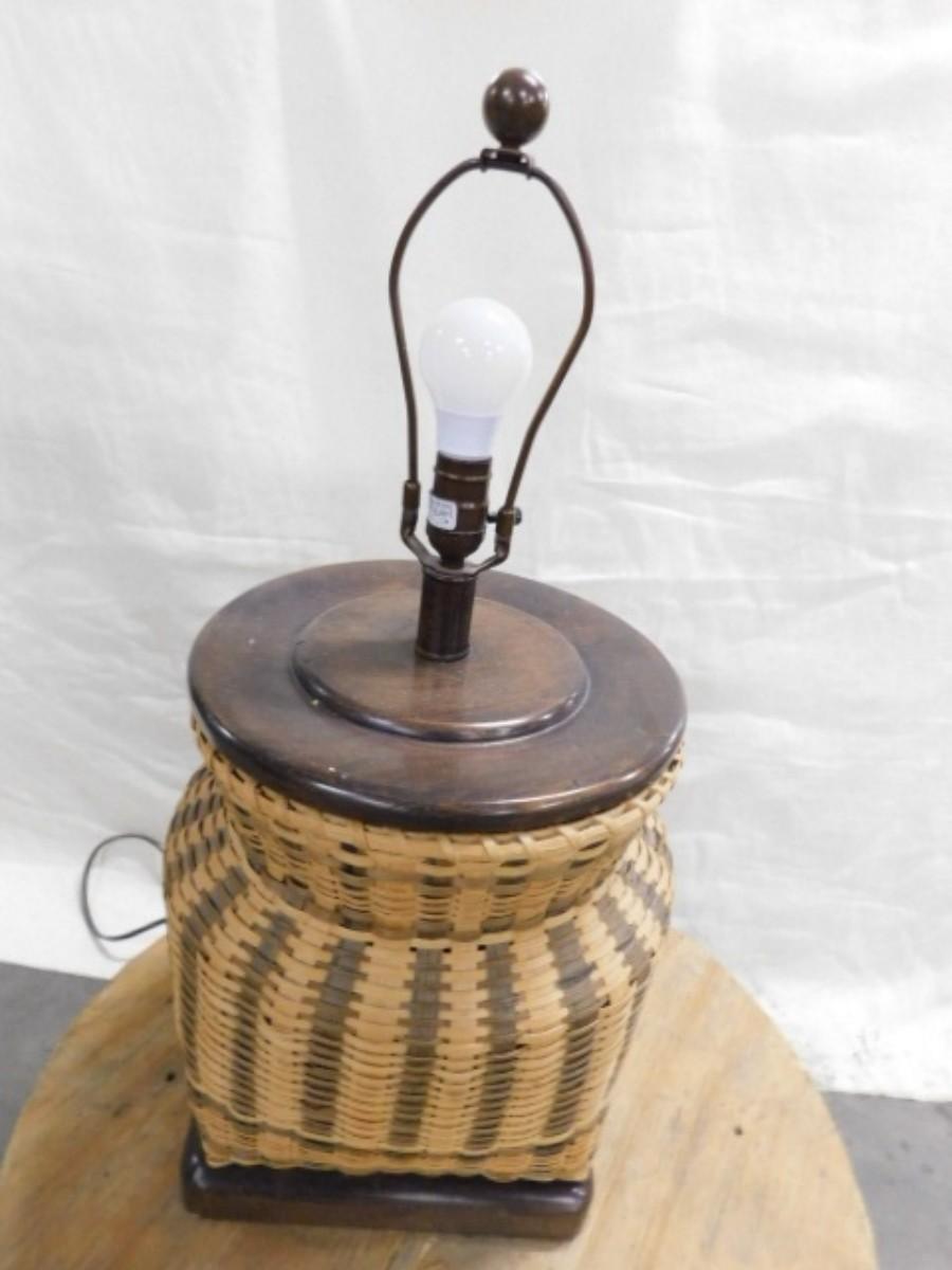 Rustic Hand-Woven Splint Wood Basket Lamp #3 Expect some wear or scratches to the finish. Shipping option available via freight or local mover at Buyer's expense. Buyer must have all shipping scheduled within the stated dates and times of pickup. Recommended local mover is Beaty Bros. Moving 828-201-2982