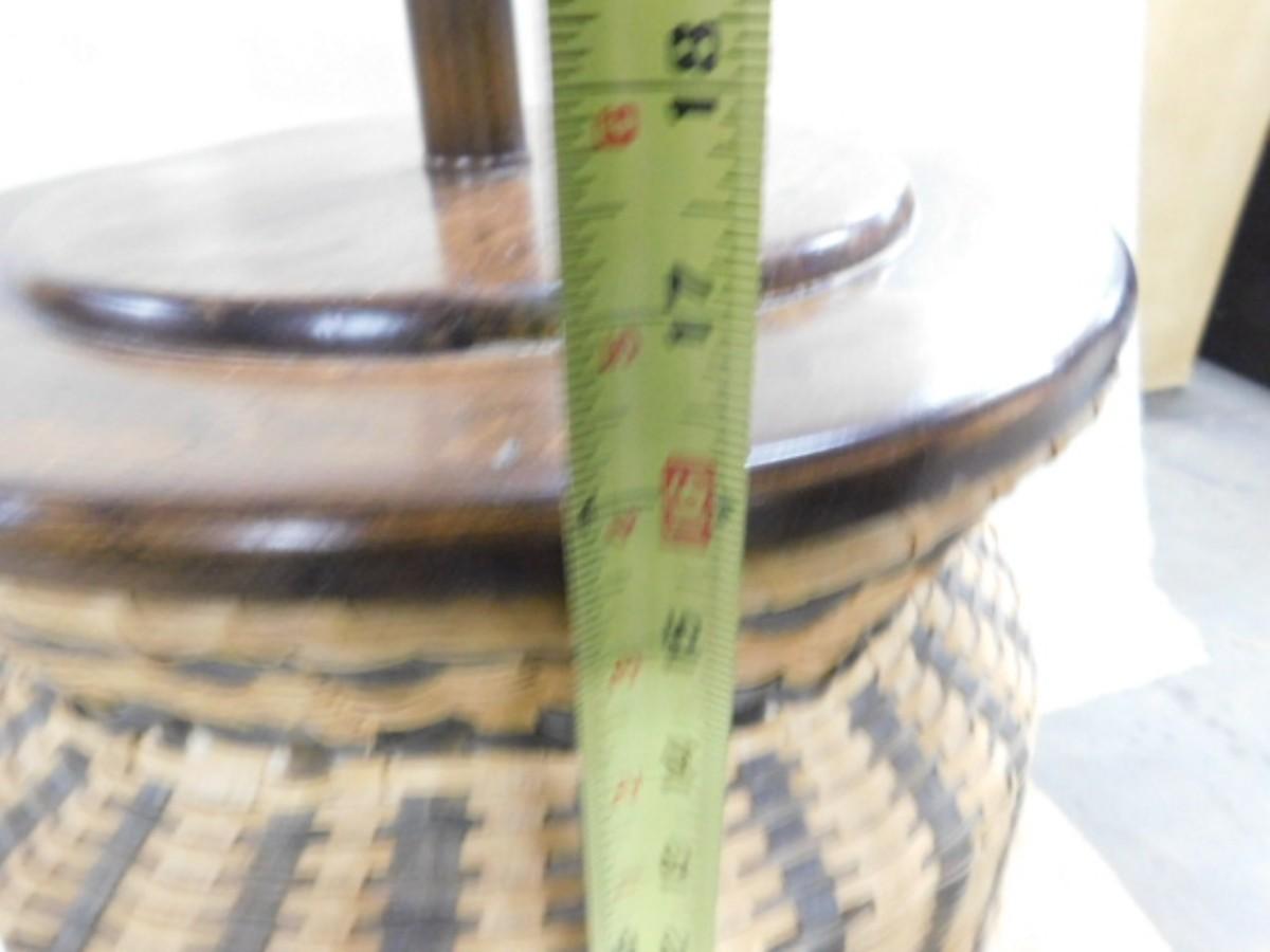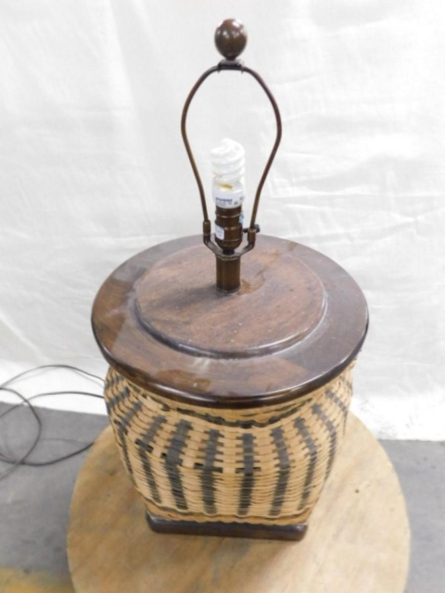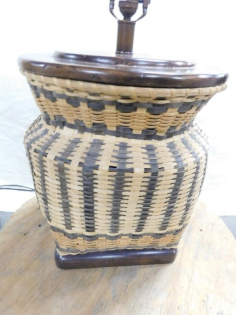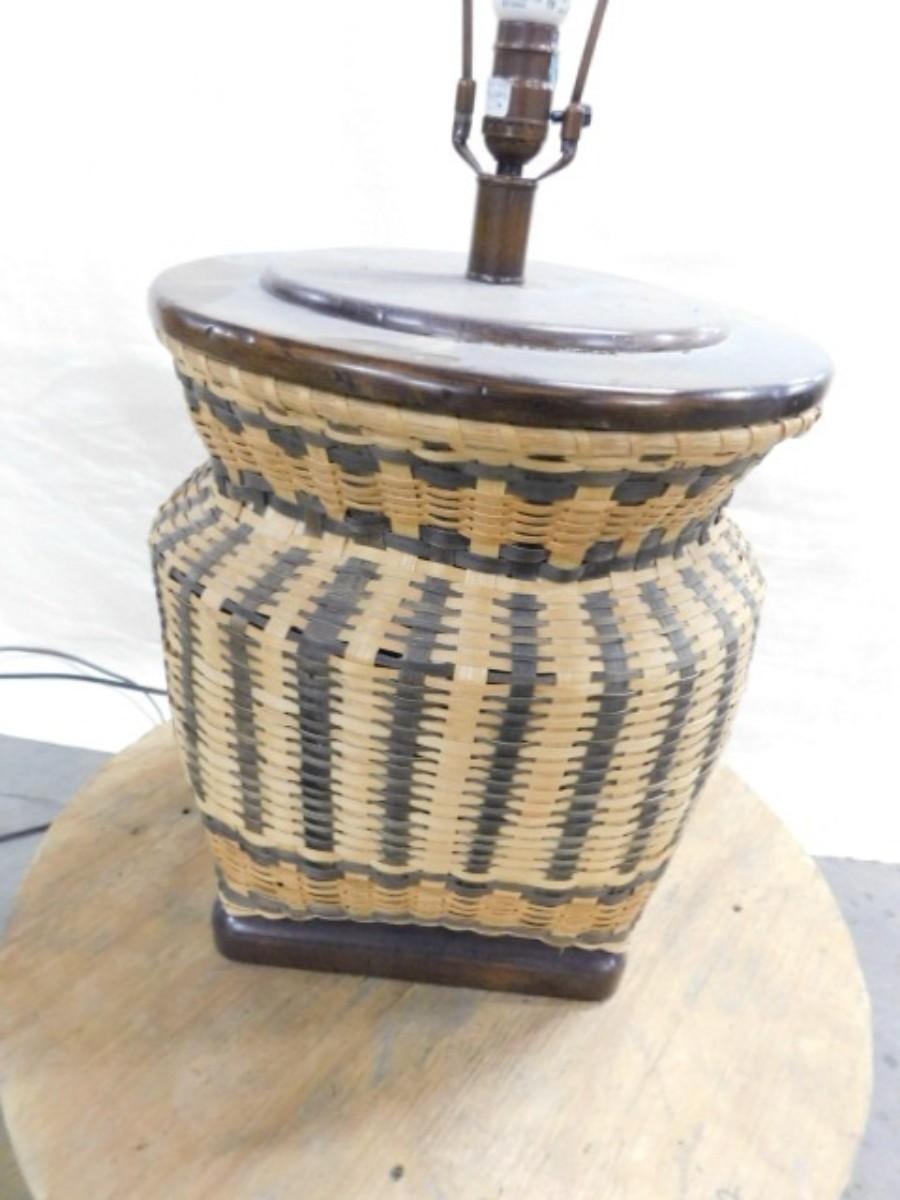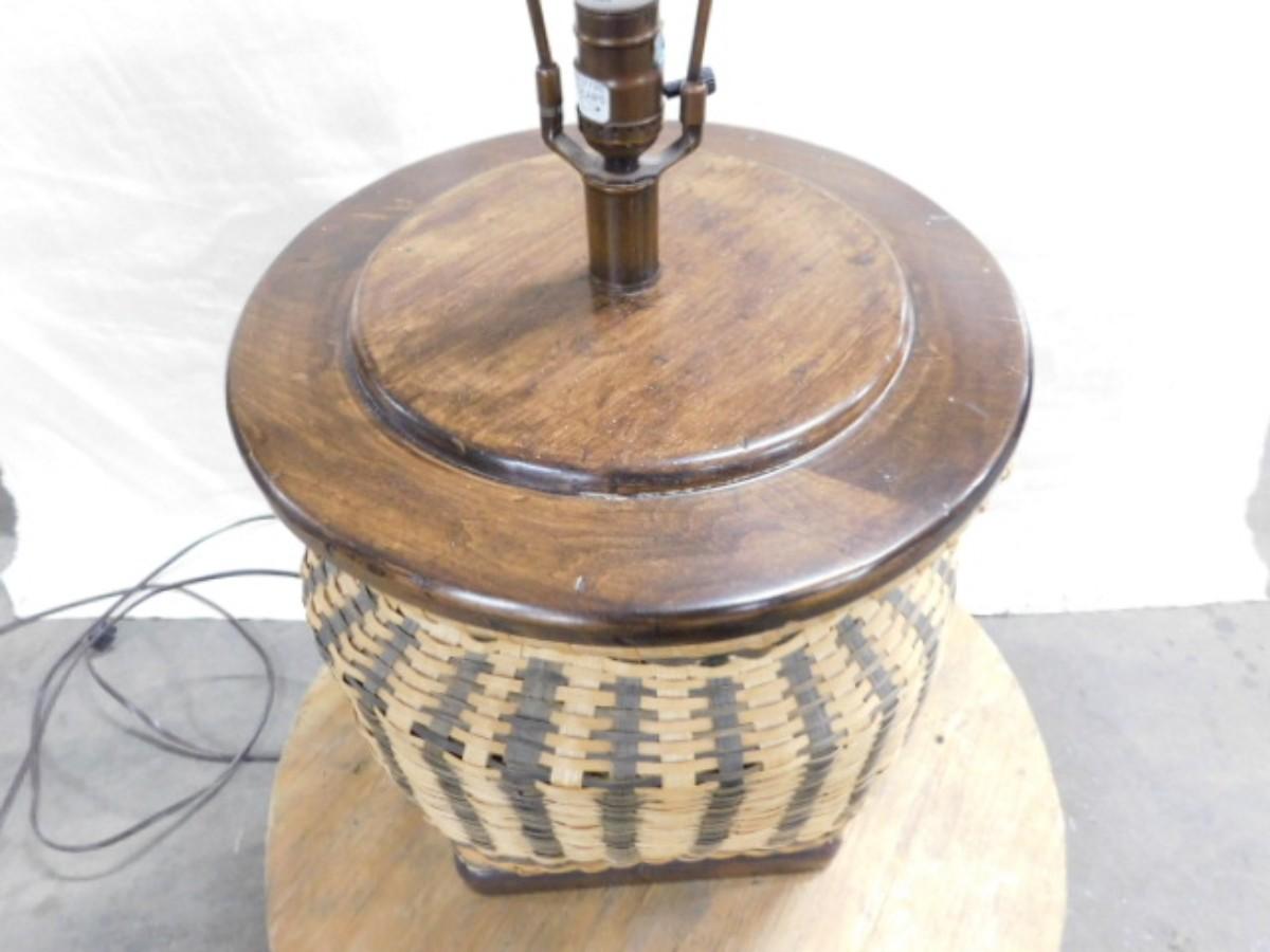 Rustic Hand-Woven Splint Wood Basket Lamp #4 Expect some wear or scratches to the finish. Shipping option available via freight or local mover at Buyer's expense. Buyer must have all shipping scheduled within the stated dates and times of pickup. Recommended local mover is Beaty Bros. Moving 828-201-2982