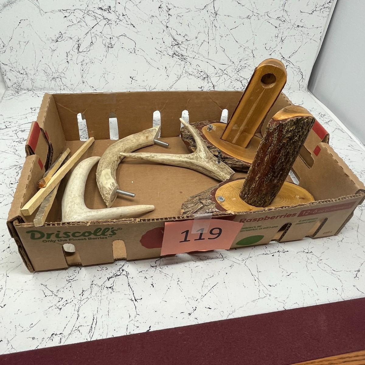 Rustic Home Décor, Rustic log towel rod brackets, antler hangers and drawer pull