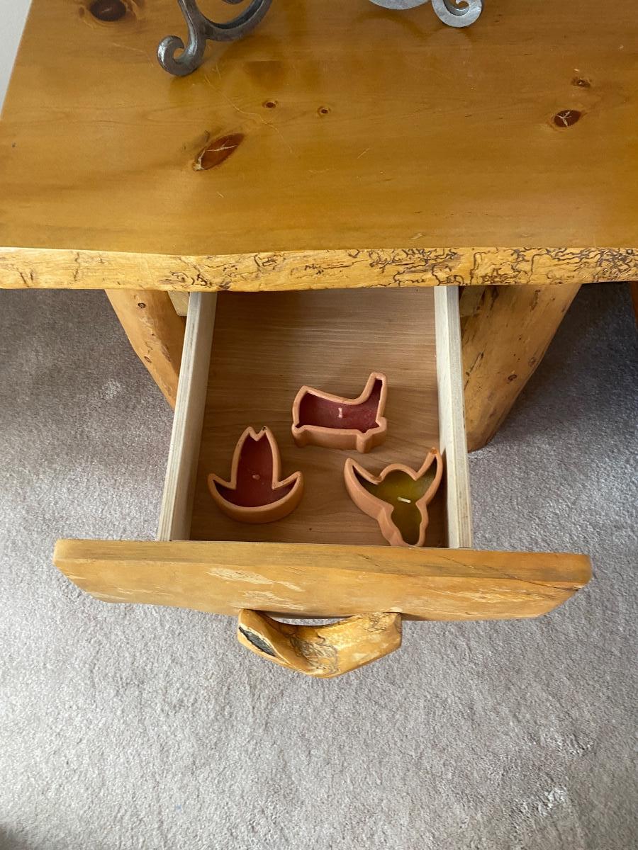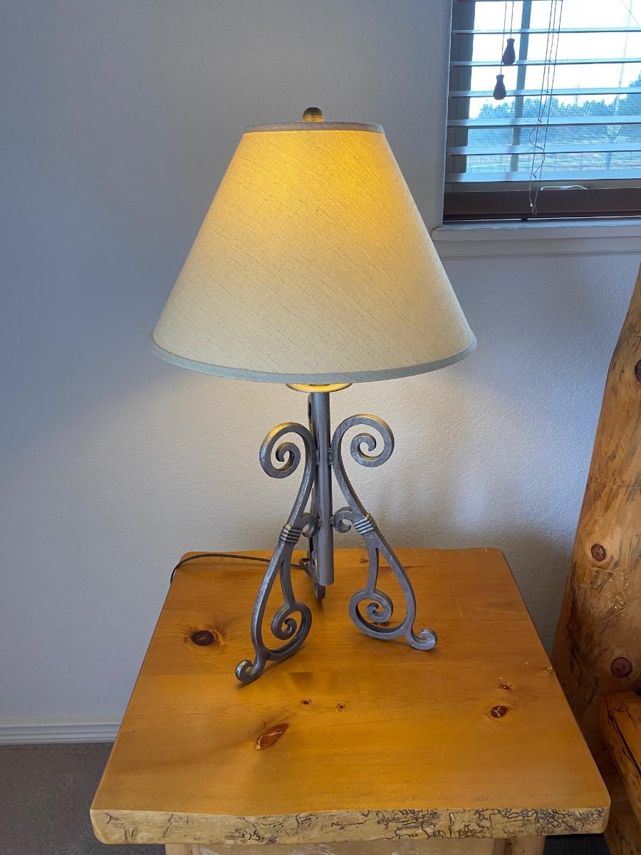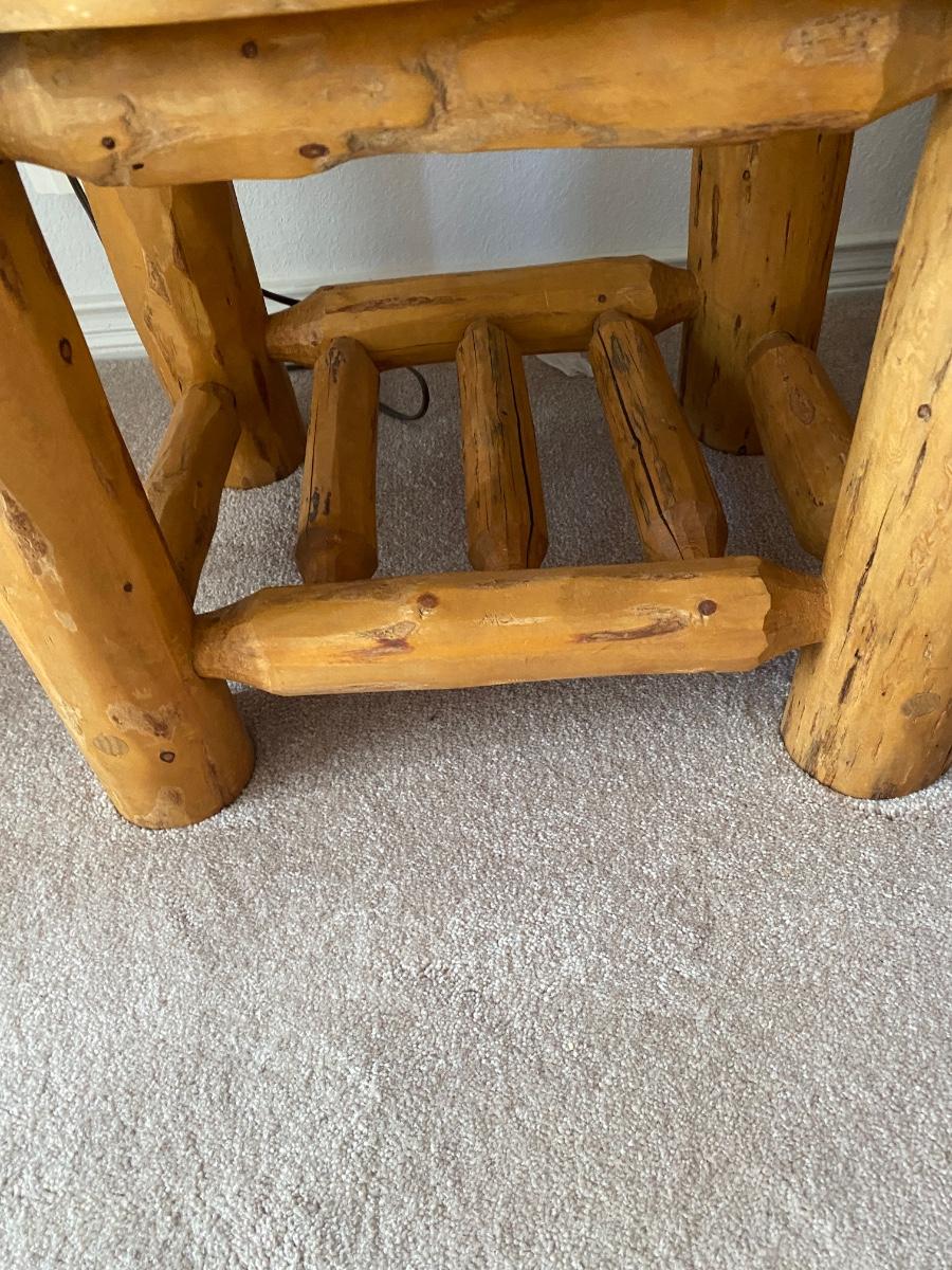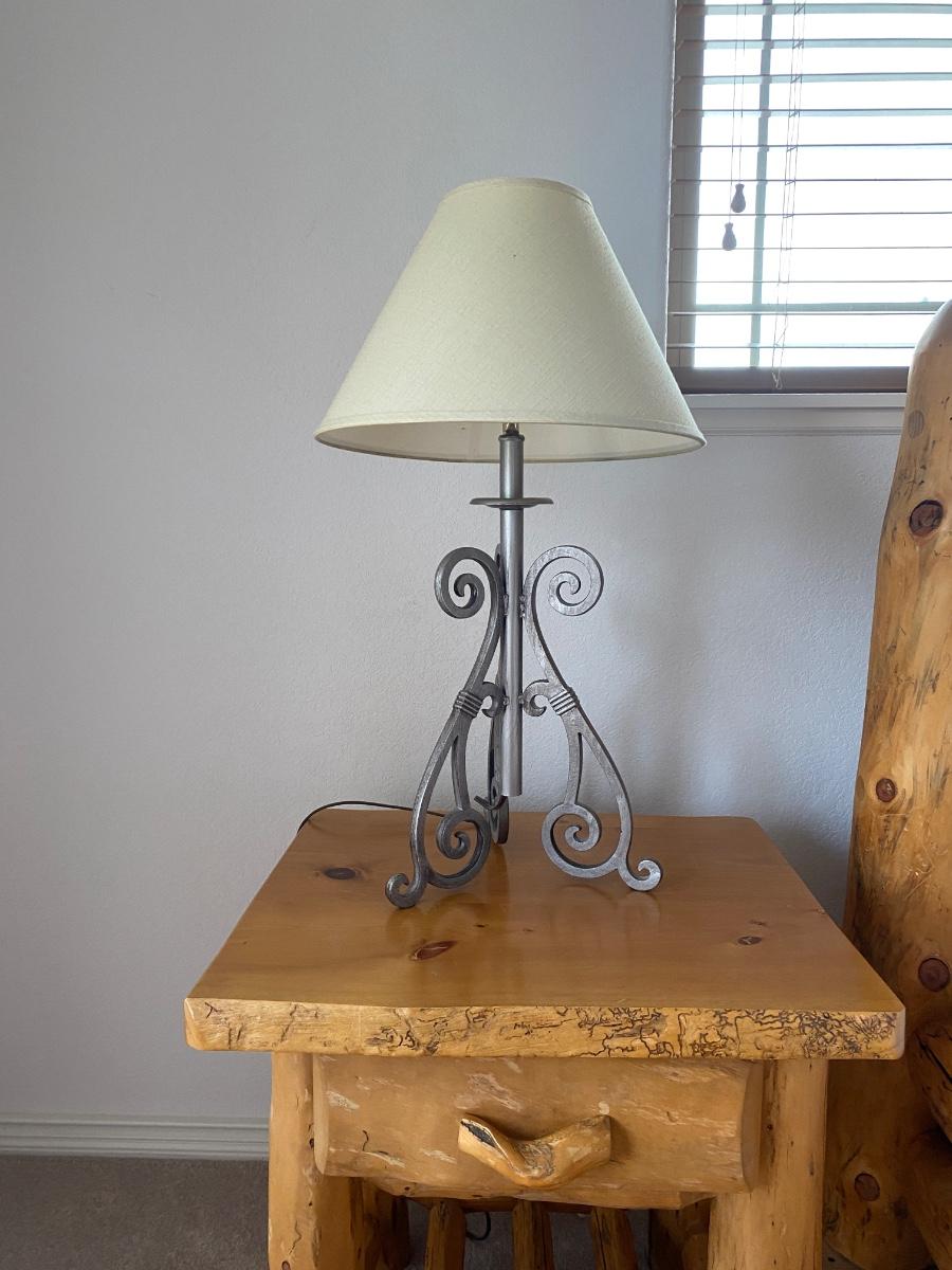 PINE LOG NIGHT STAND WITH 1 DRAWER AND IRON BASE LAMP