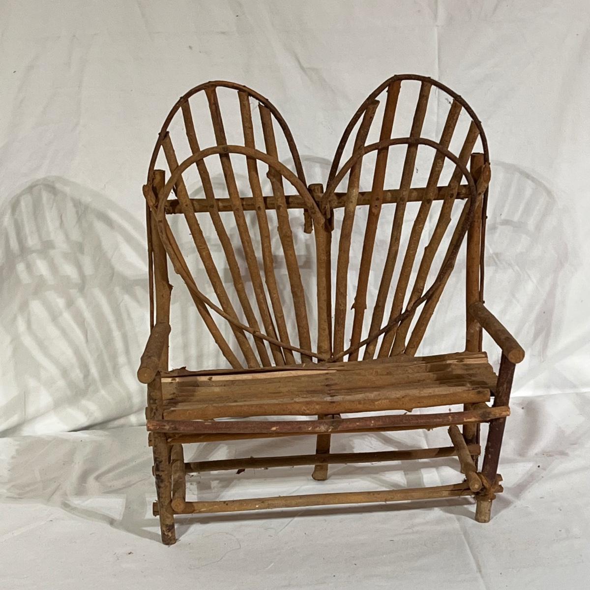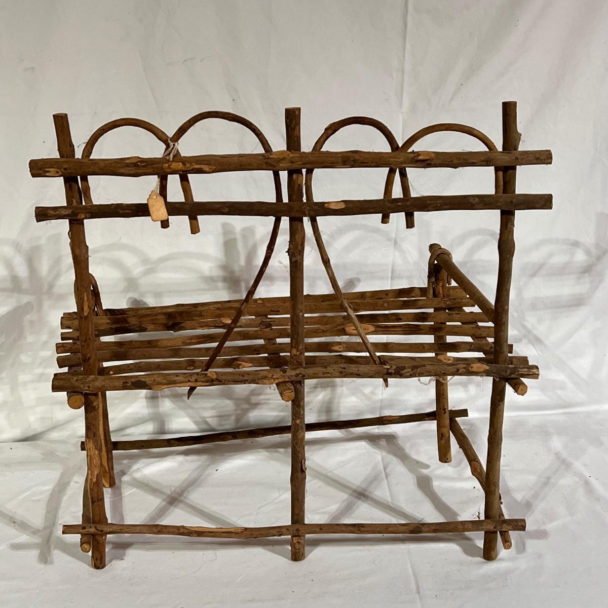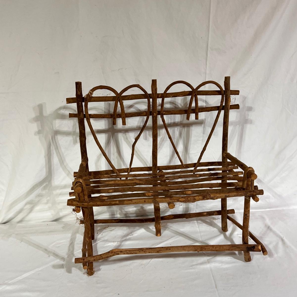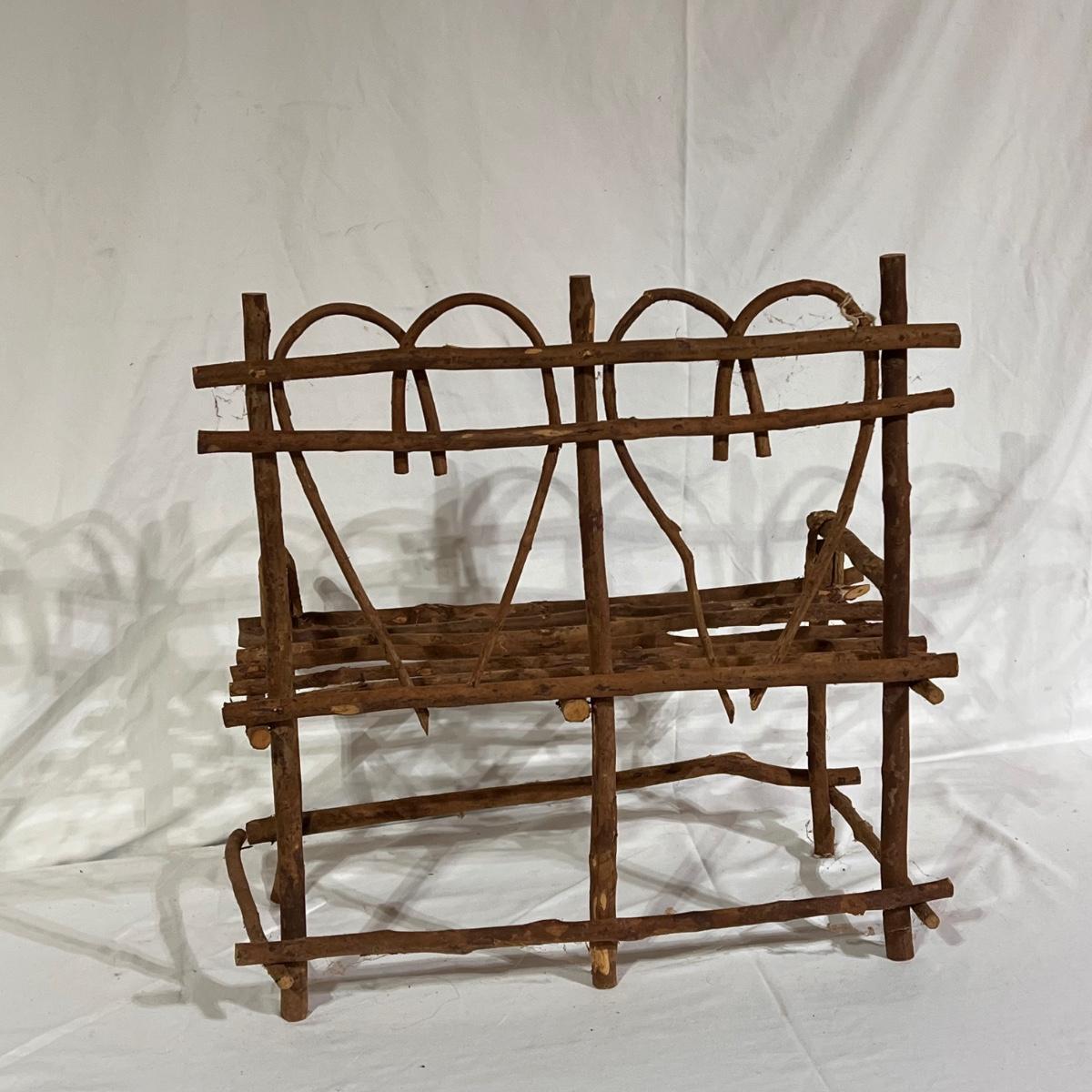 This lot includes three miniature benches and one larger shelf. All made from various sized wood, with the exception of the shelf having wire supporting the wood. The three benches appear to be sized for dolls or stuffed animals. The shelf is the largest item that measures 27”W x 7”D x 29”H. Shipping available. Shipping can be costly. We suggest contacting our preferred local shipping provider, Postage Express, with dimensions and getting an estimate before bidding: (828) 255-9250 or shipping@postageexpressnc.com.
