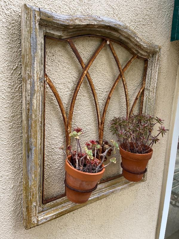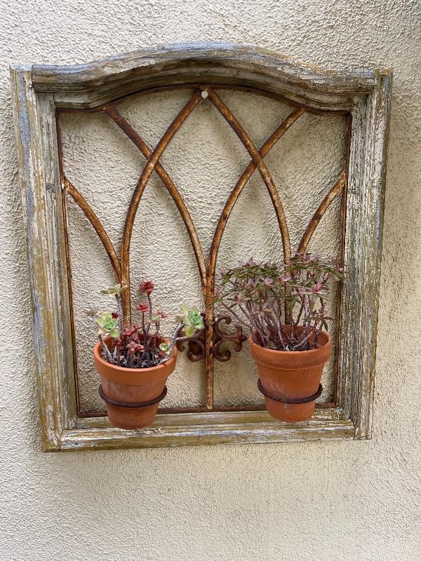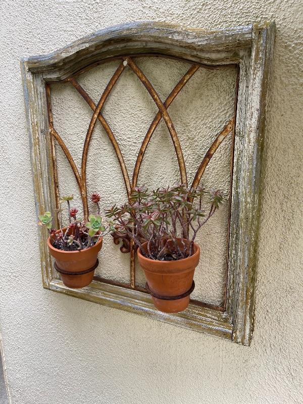 Rustic Patio Garden Wall Art with 2 potted succulents
