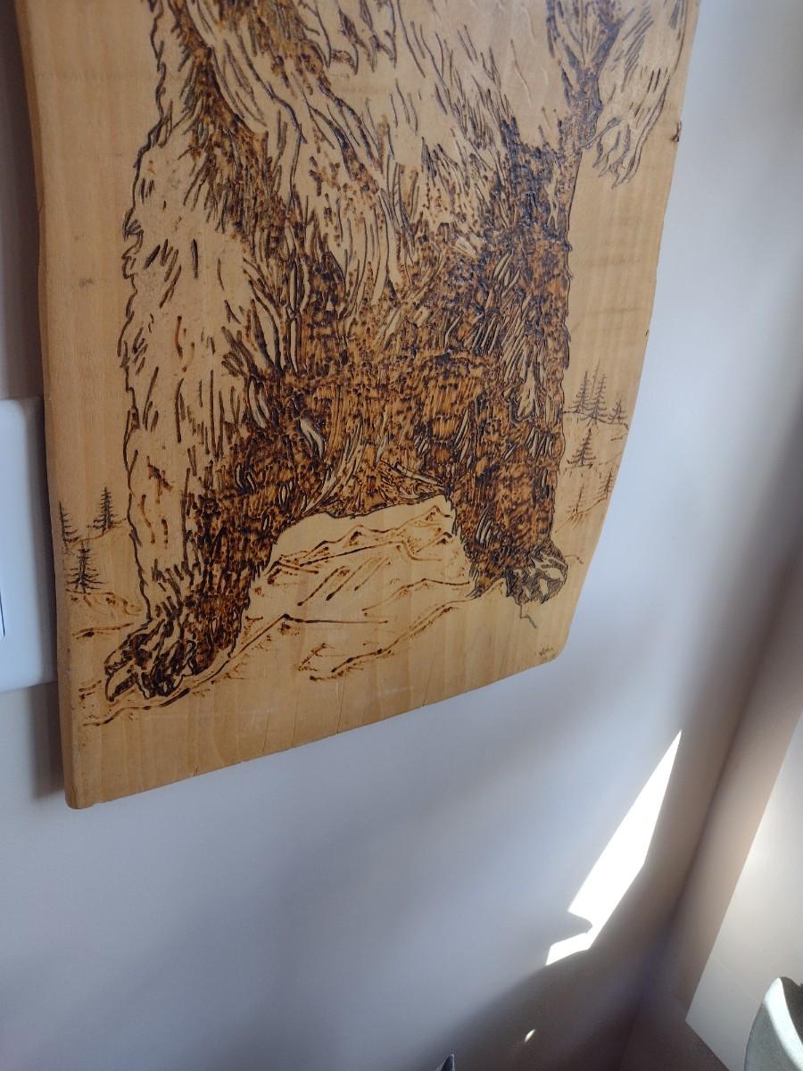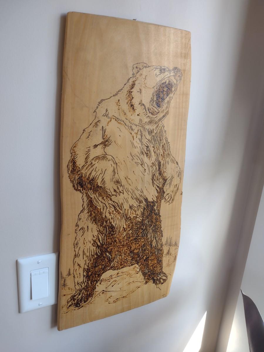 Rustic Pyrographic Original Art Grizzley Bear by Asheville Artist Jahn Morrison