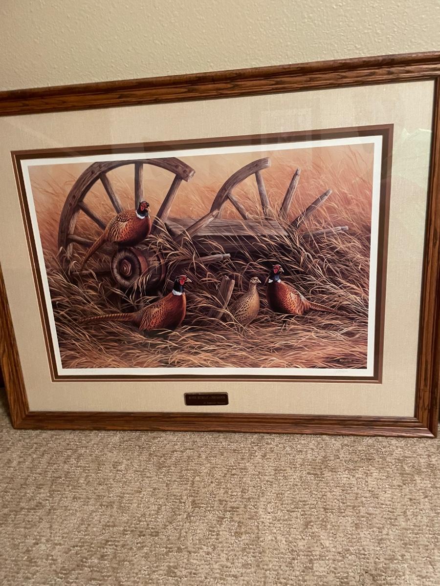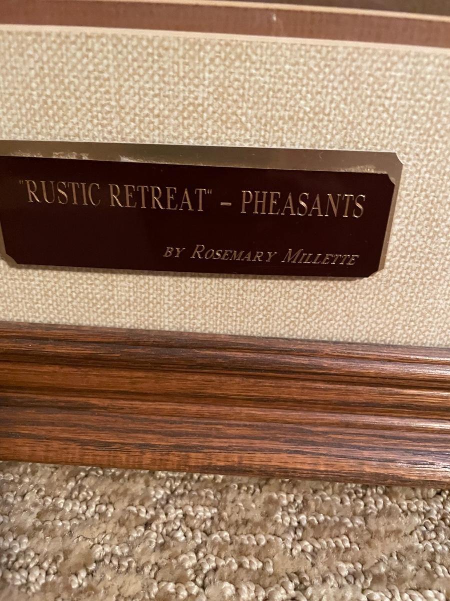Rustic Retreat Pheasants print with frame by Rosemary Millette