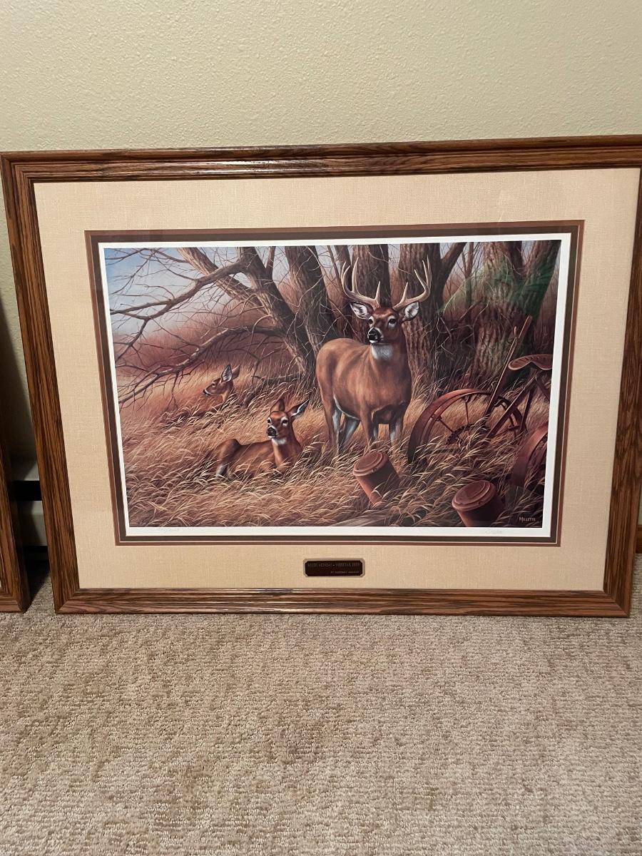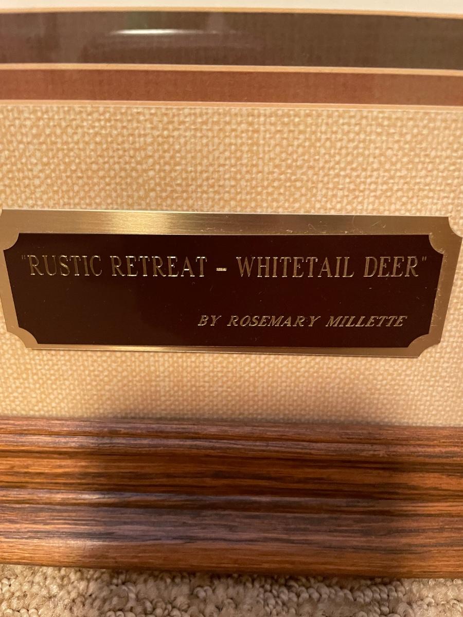 Rustic retreat White tail Deer print with frame by Rosemary Millette.