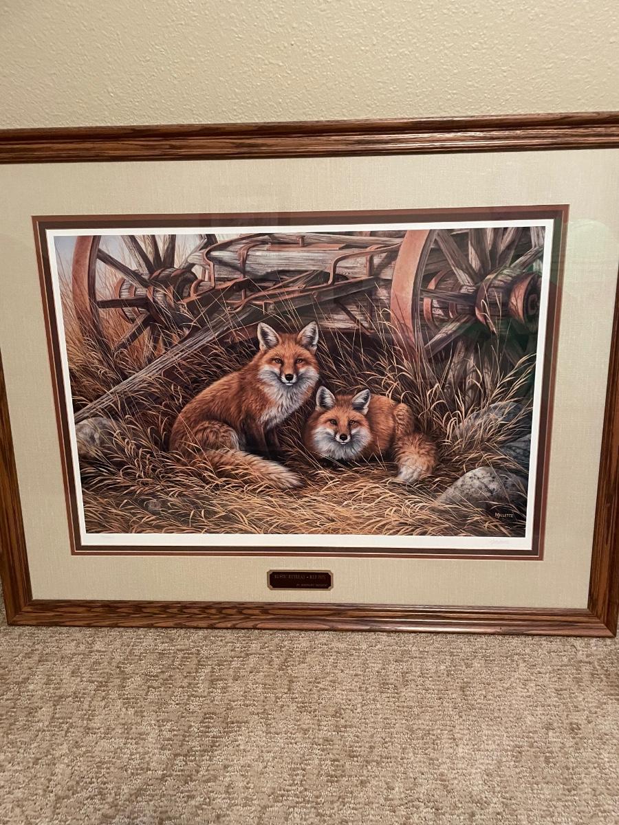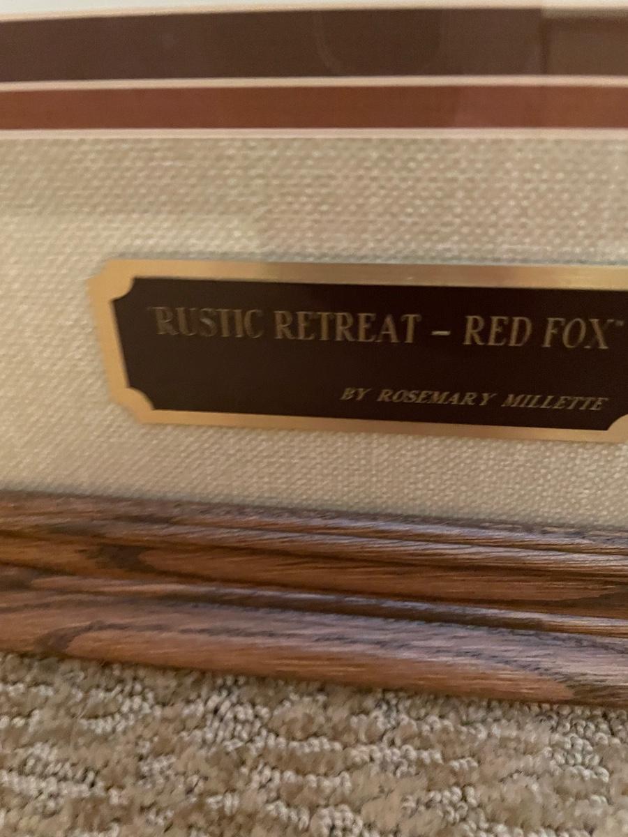 Rustic Retreat Red Fox print with frame by Rosemary Millette
