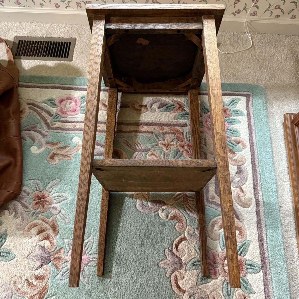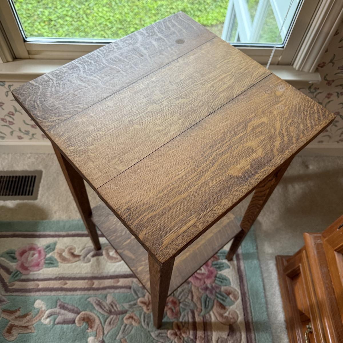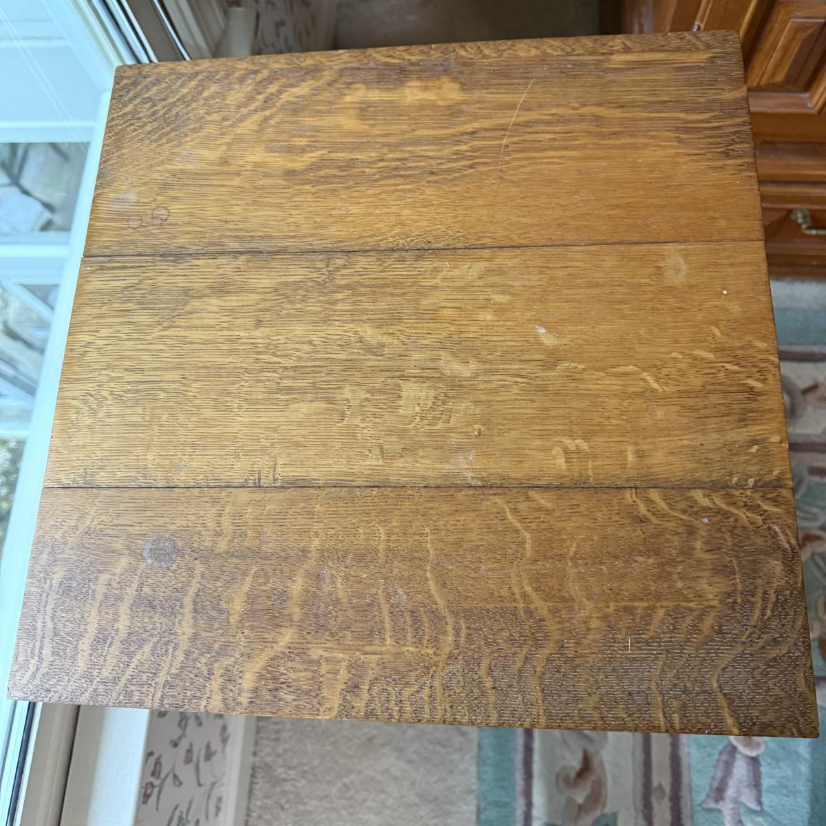 This lot contains the perfect solid oak side table. Table has two levels. It measures 16” x 16” x 29.5”H. Local pick up only.