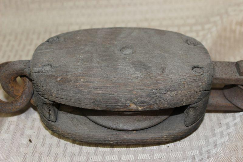 Single Line Pulley. Nicely weathered rustic condition. Star emblem on one side. Very Heavy.