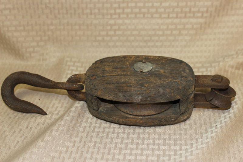 Rustic Single Line Wood Tackle Barn Pulley