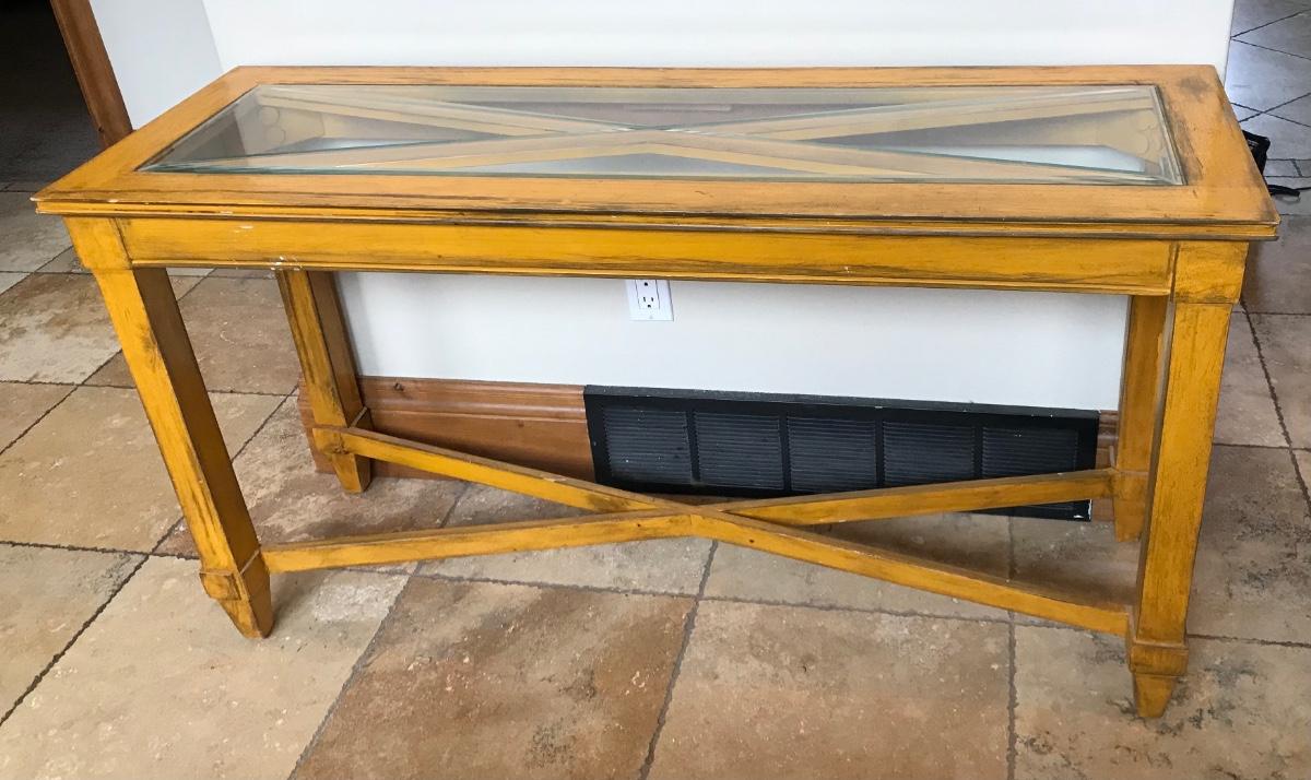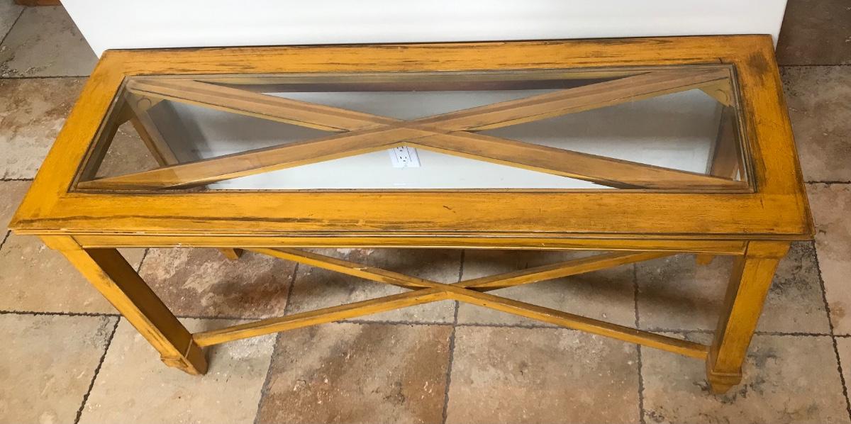 Rustic Sofa table with glass top