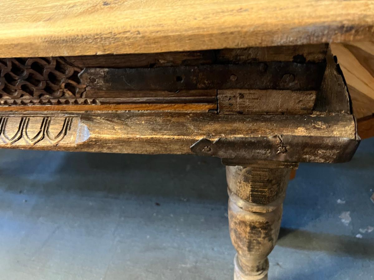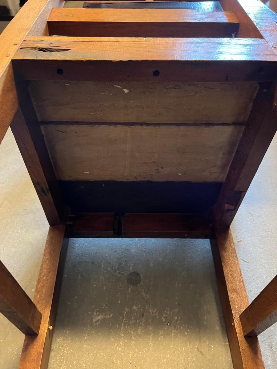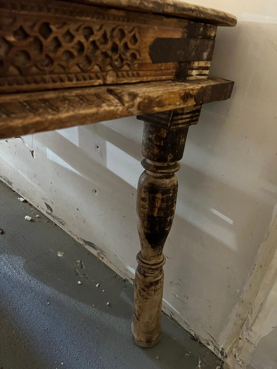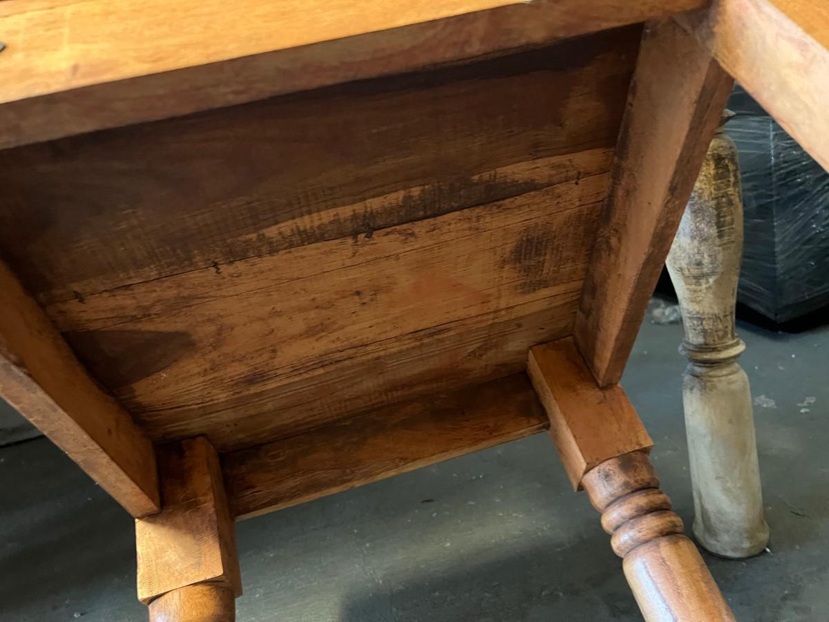 Rustic table and 4 chairs identical and 2 chairs different but similar style. Table: 69" wide x 46" deep x 31" tall. Chairs: 18" wide x 19" deep x 42" tall (back) 17 3/4" tall seat. Other chairs: 18" deep x 18" wide x 43" tall back 18" seat height.