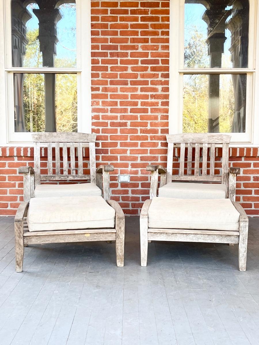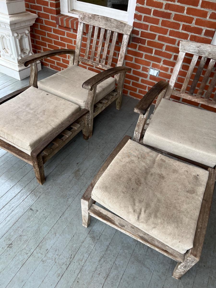 Teak Patio Set ~ Pair (2) Chairs and Matching Ottomans ~ *Please Read Details