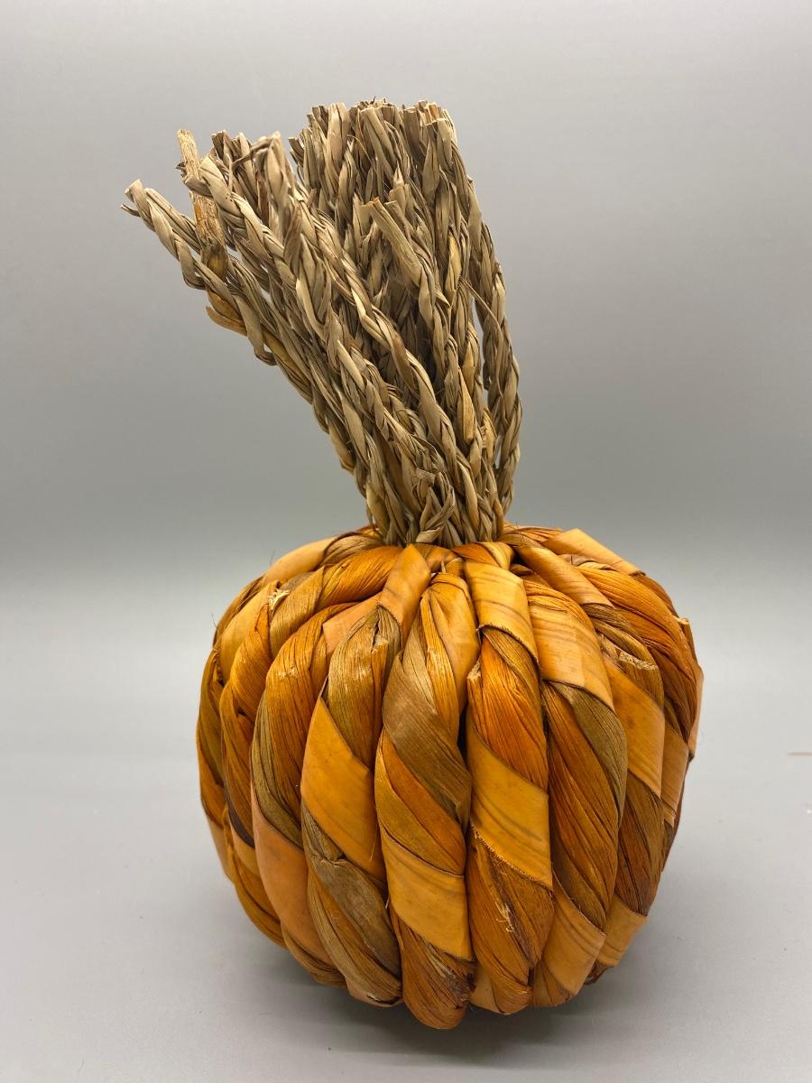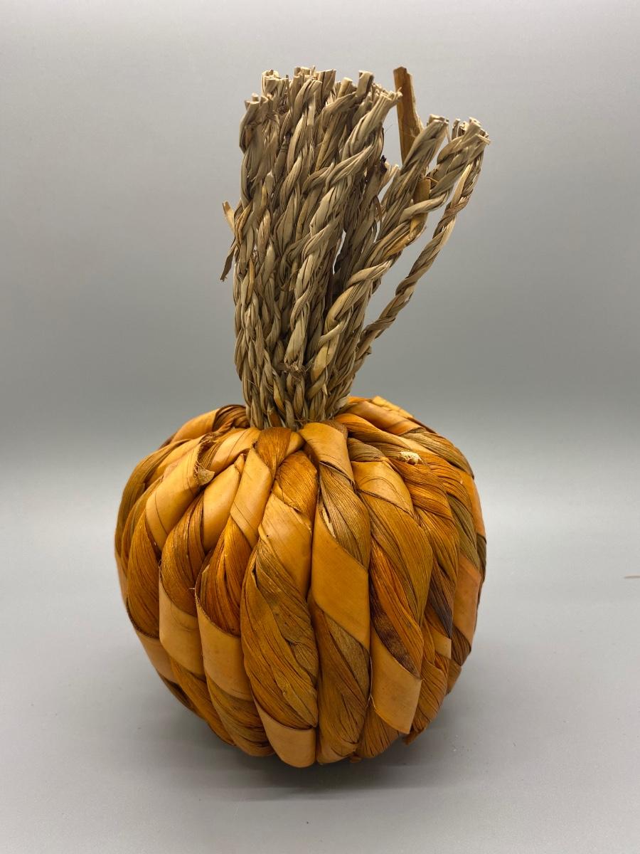 Rustic style Autumn decor, twisted raffia pumpkin. Good condition. Display as is or make part of a fall project.