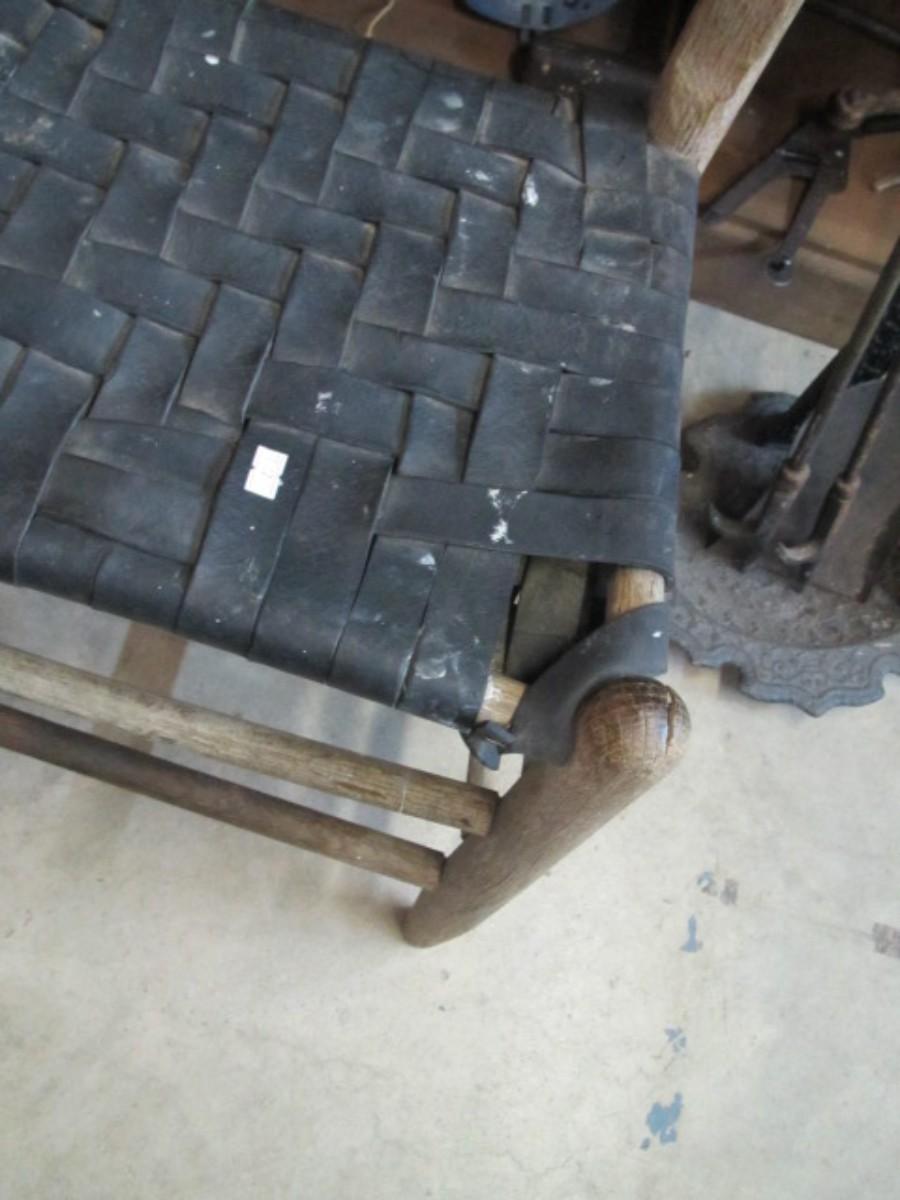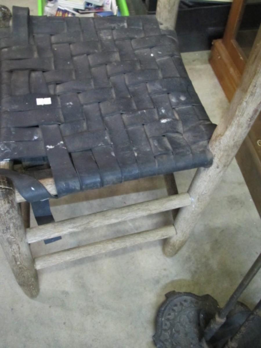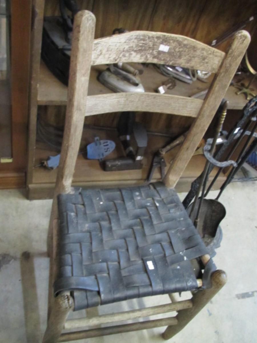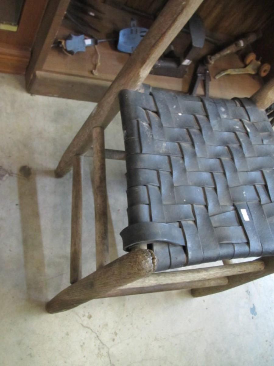 Rustic Wooden Chair Leather Woven Seat