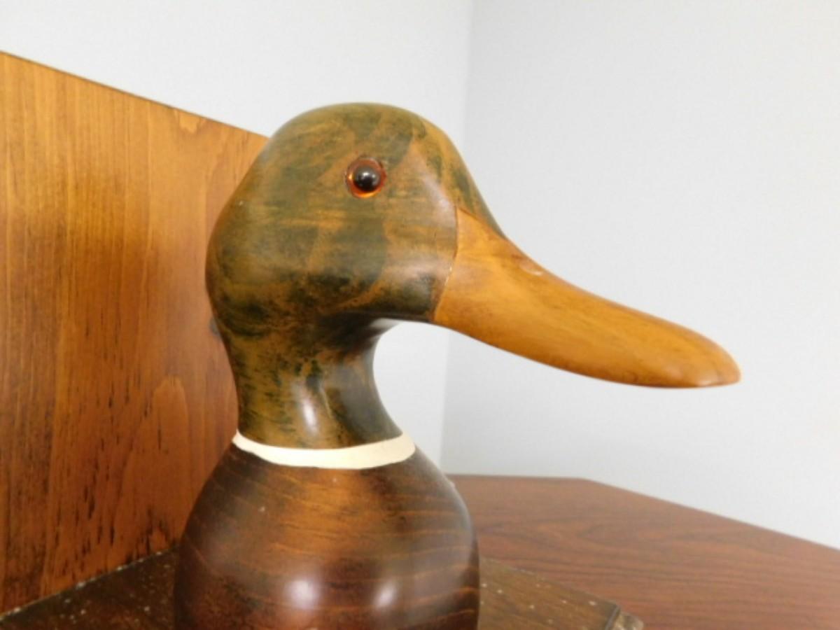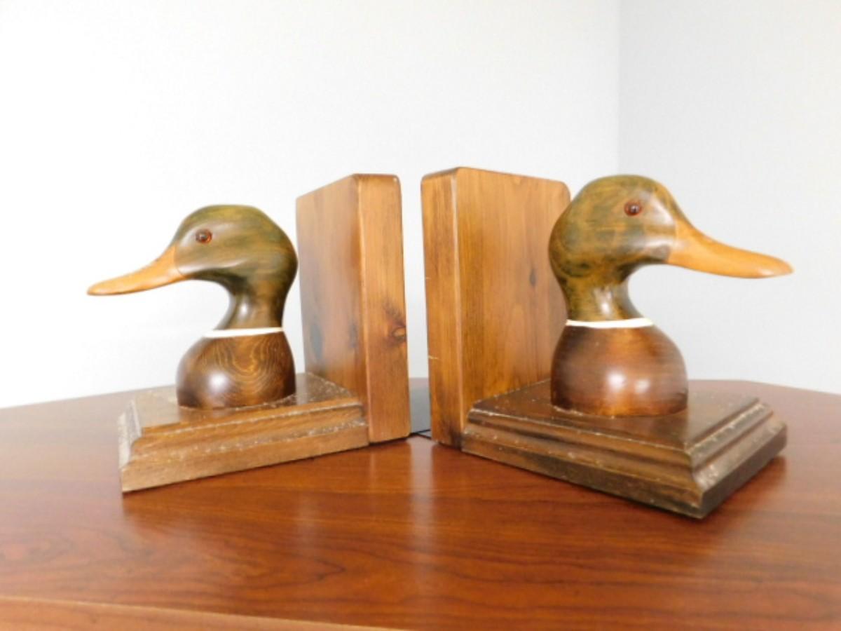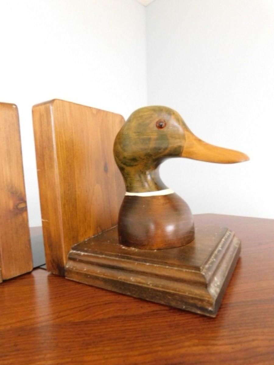 Rustic Wood Carved Duck Head Book Ends Hand Painted Country Traditions