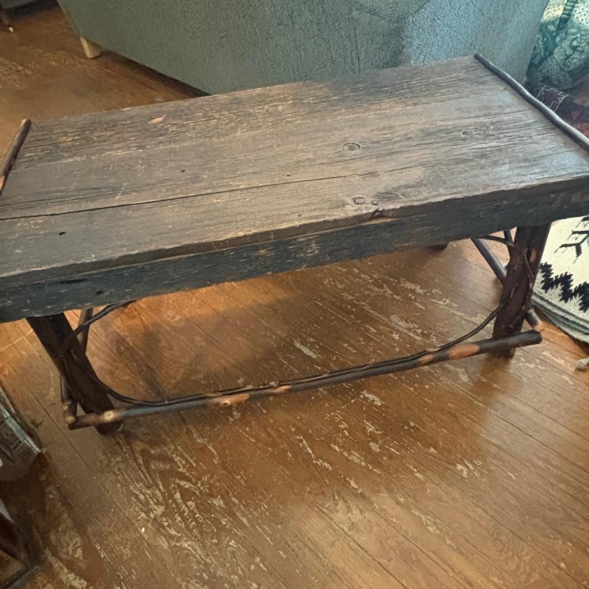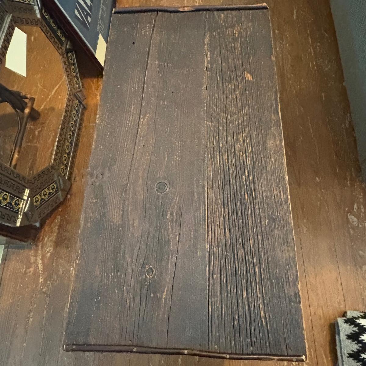 Charming weathered-effect solid wood coffee table measures 37” x 19” x 18.5”H. Local pickup only.