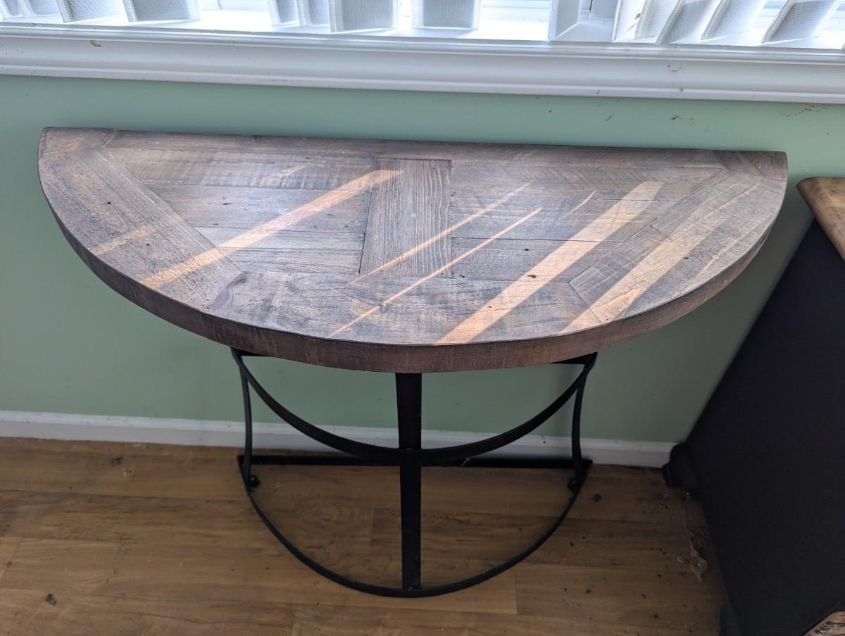 Rustic Wood & Metal Half Moon Table (FR)
