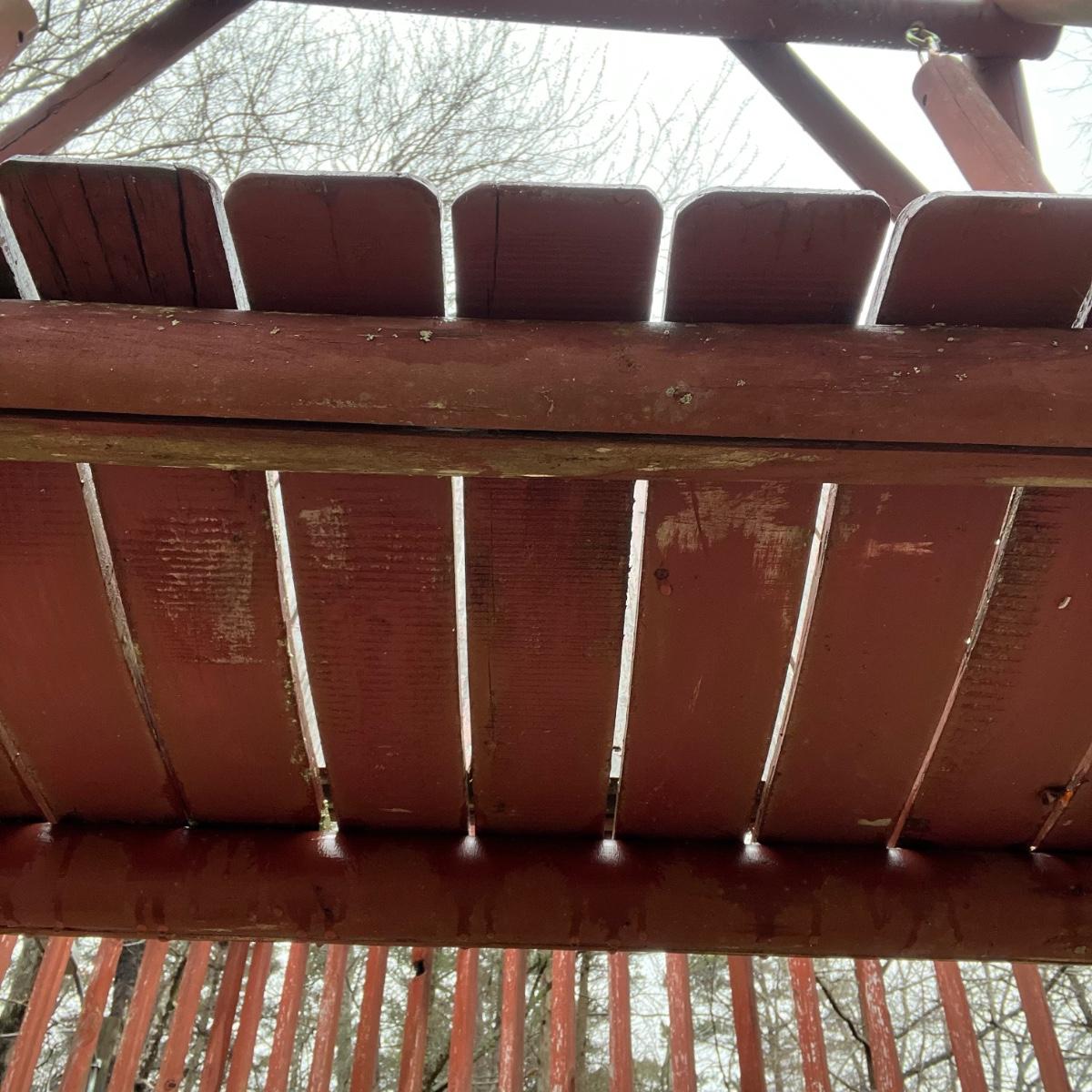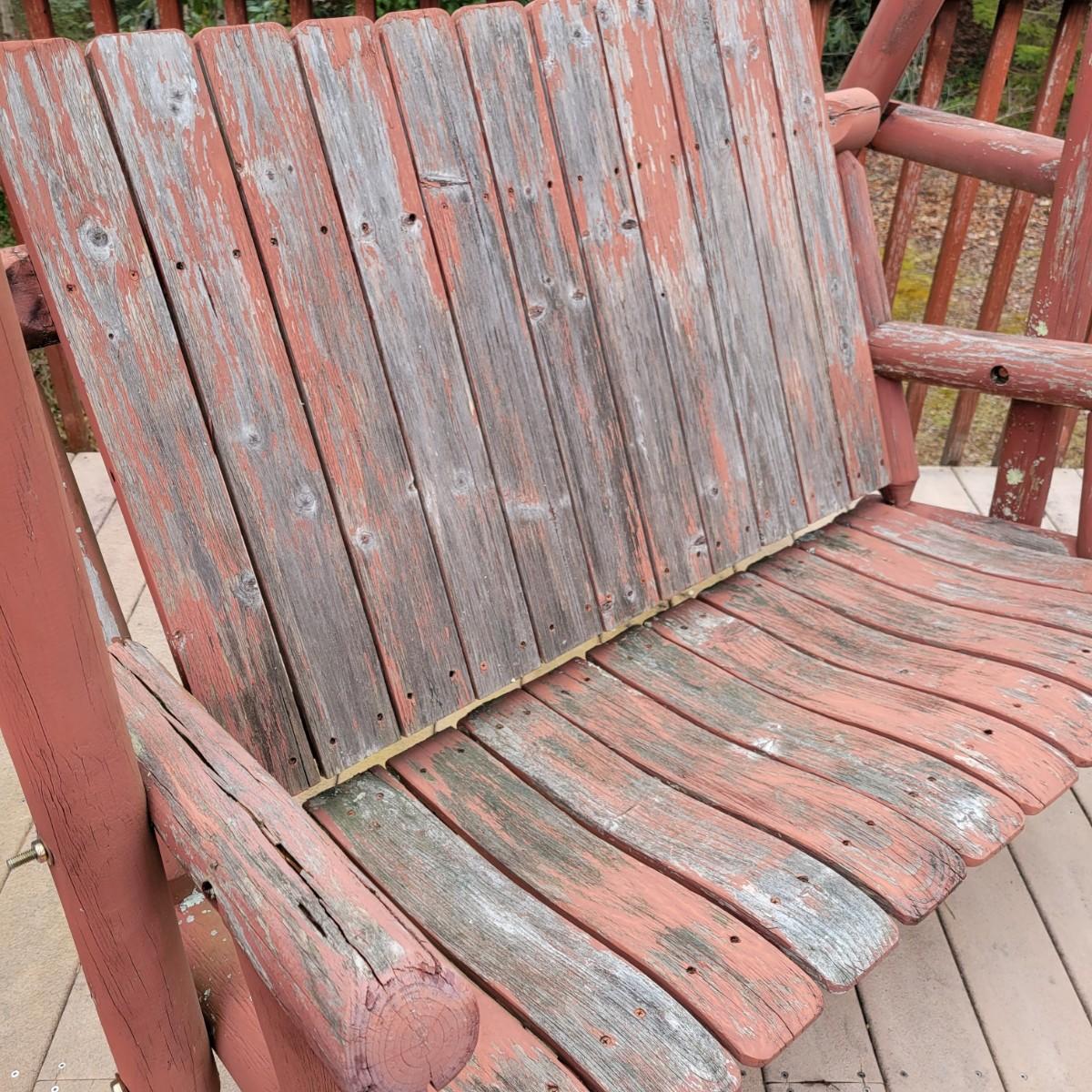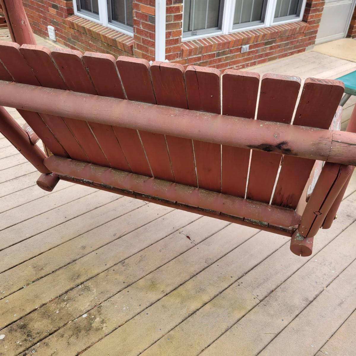 A rustic free standing swing with faded red paint. Some paint has weathered off, but swing is still structurally sound. Measures approximately 80" x 60" x 69". With 19” seat height. Local pickup only. Winning bidder must bring assistance to help move and load this item due to its weight and/or size.
