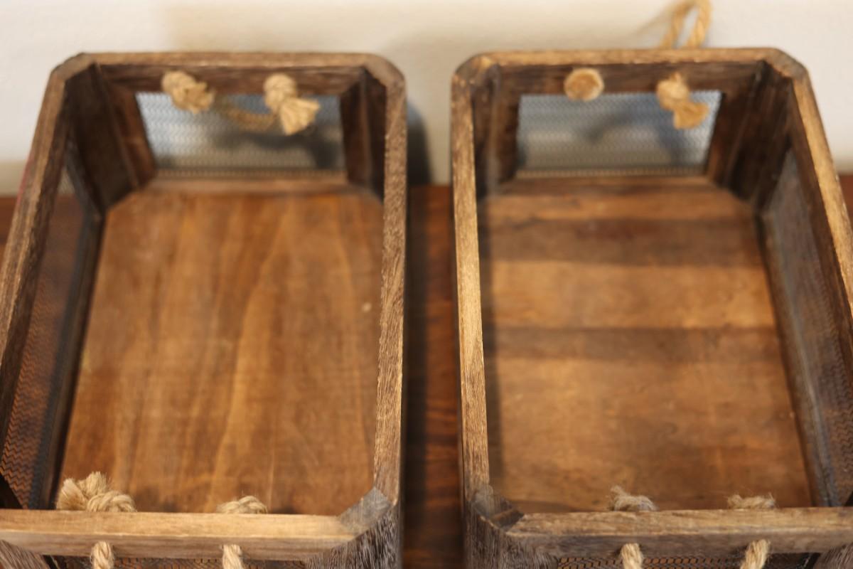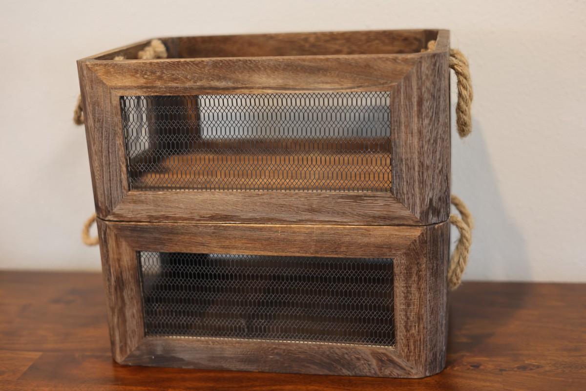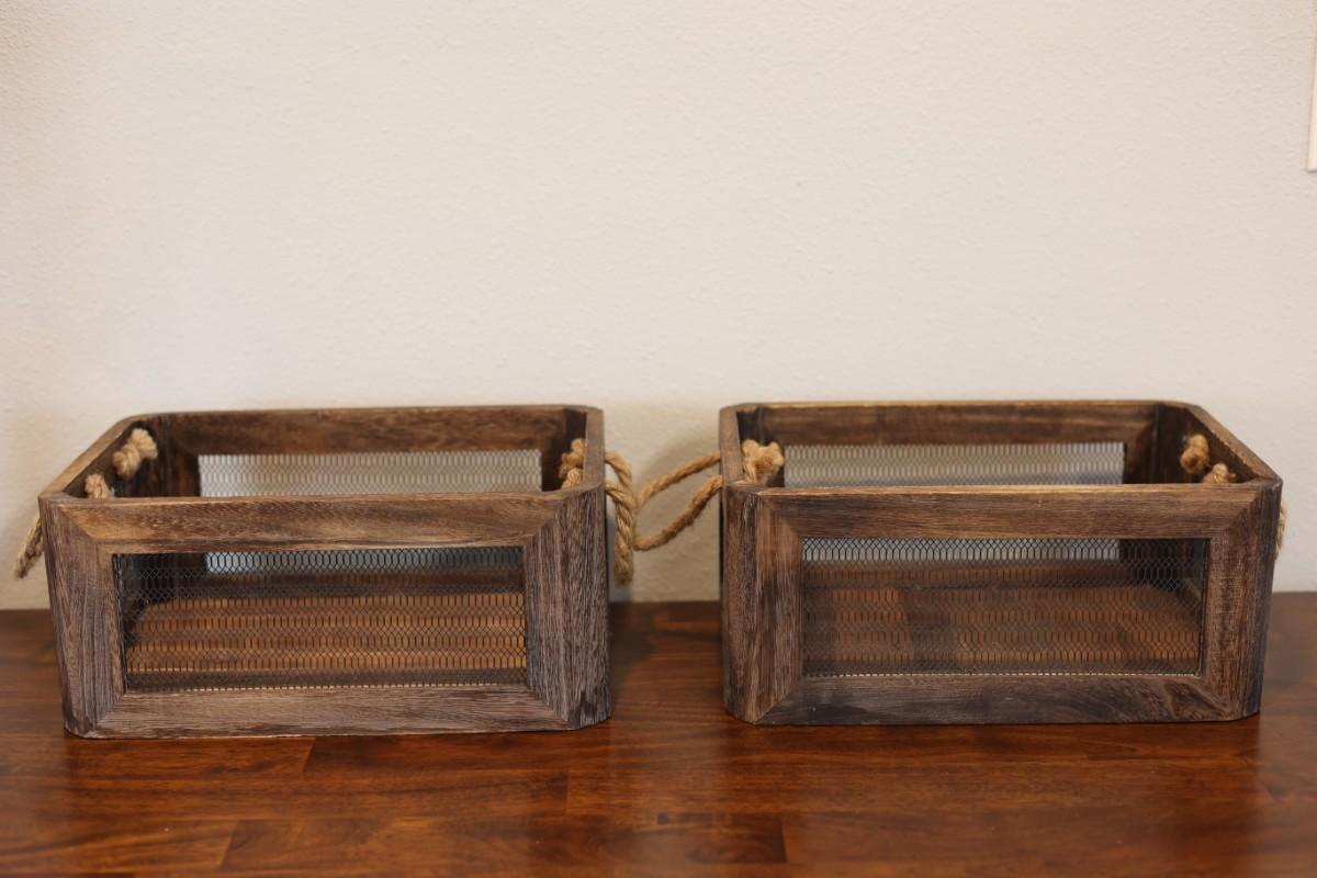 Rustic Wood & Wire Decorative Nesting Storage Basket (2)