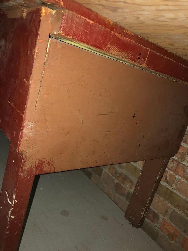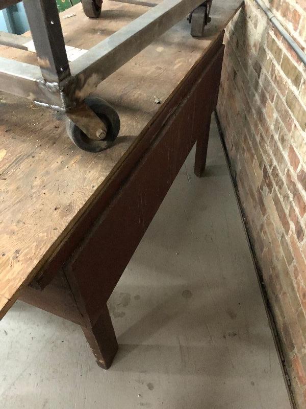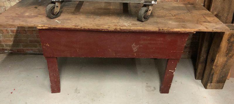 Rustic work bench table 71 x 29 x 31 tall, plywood over painted top, hand made.