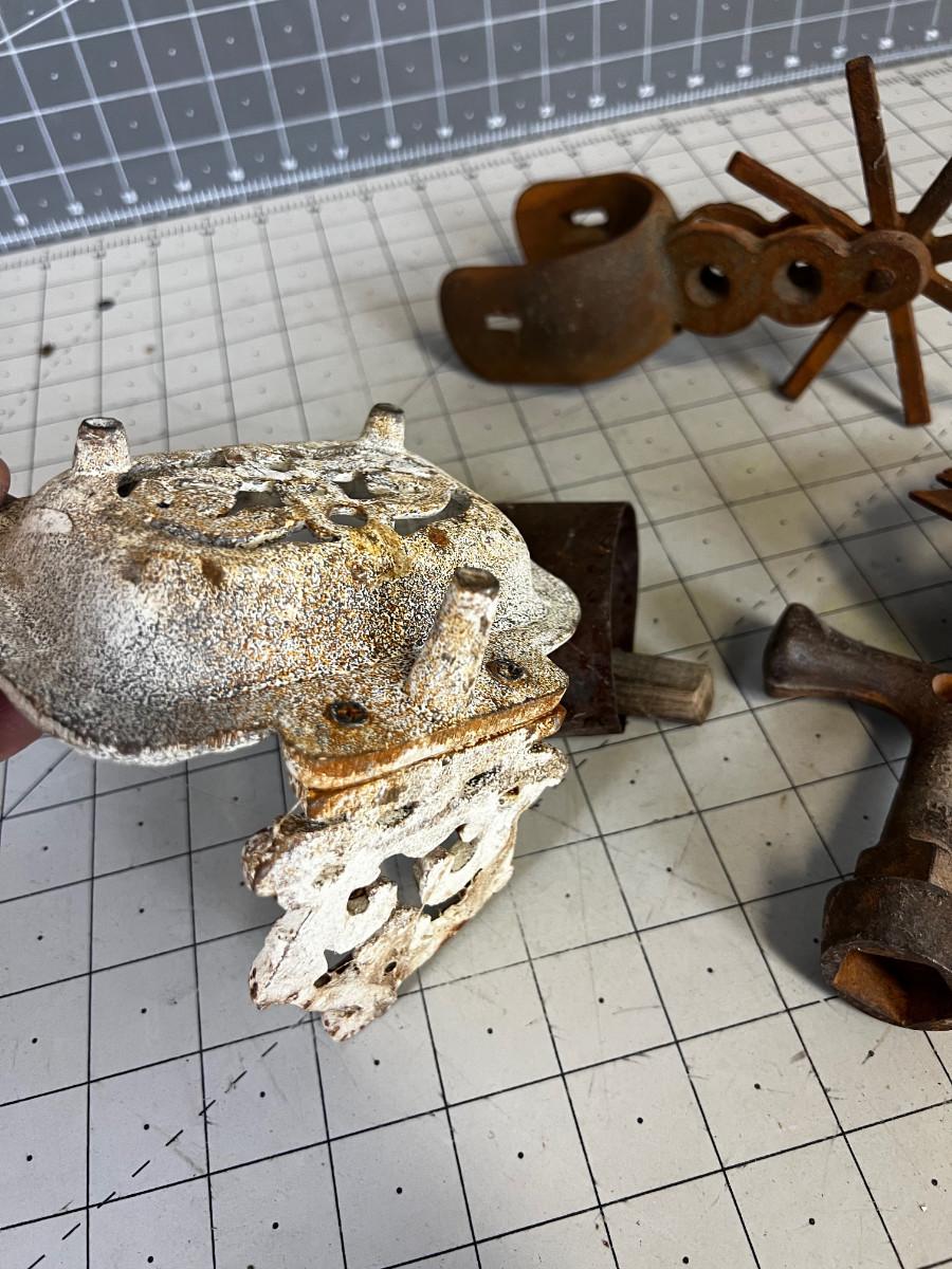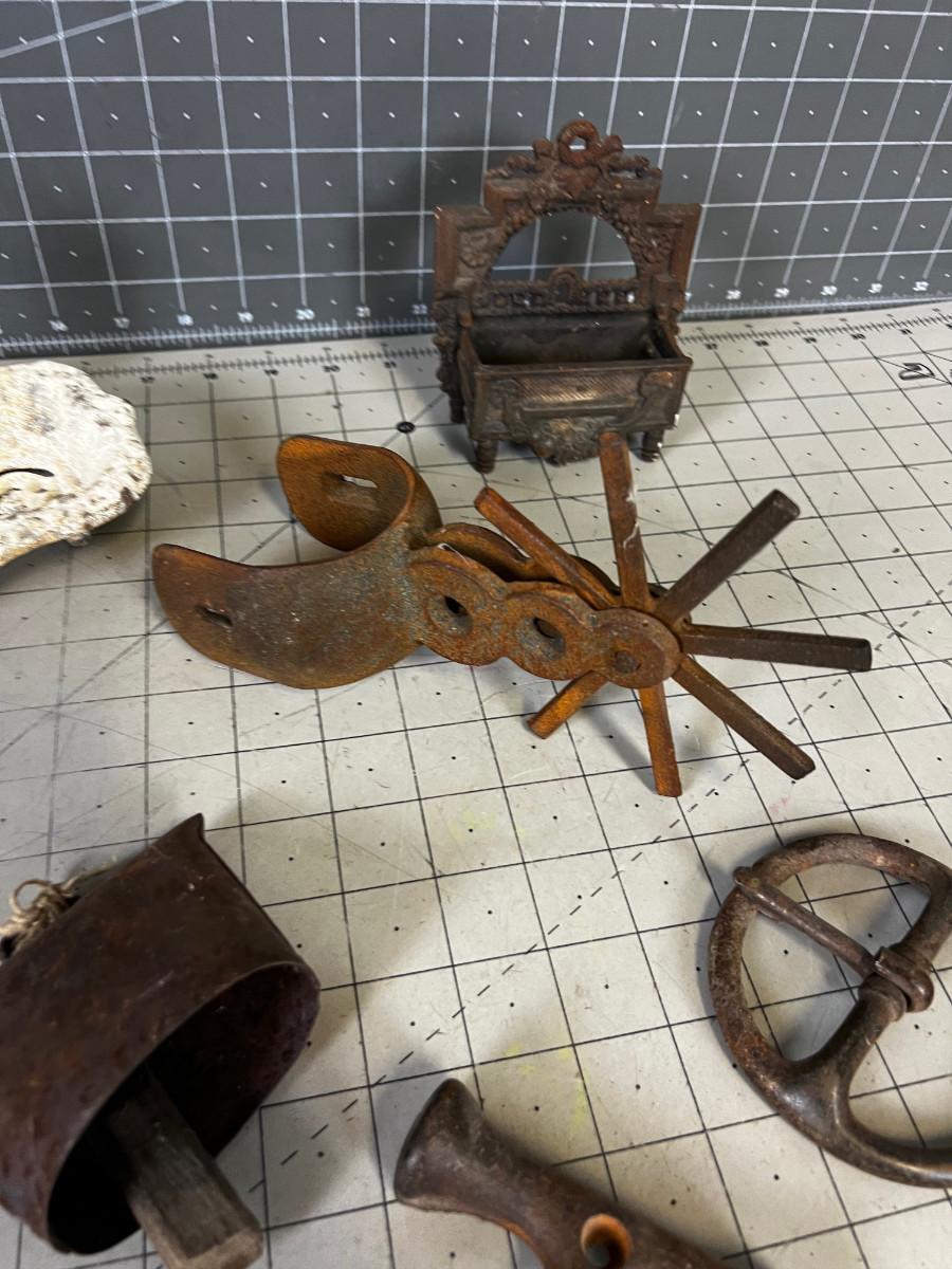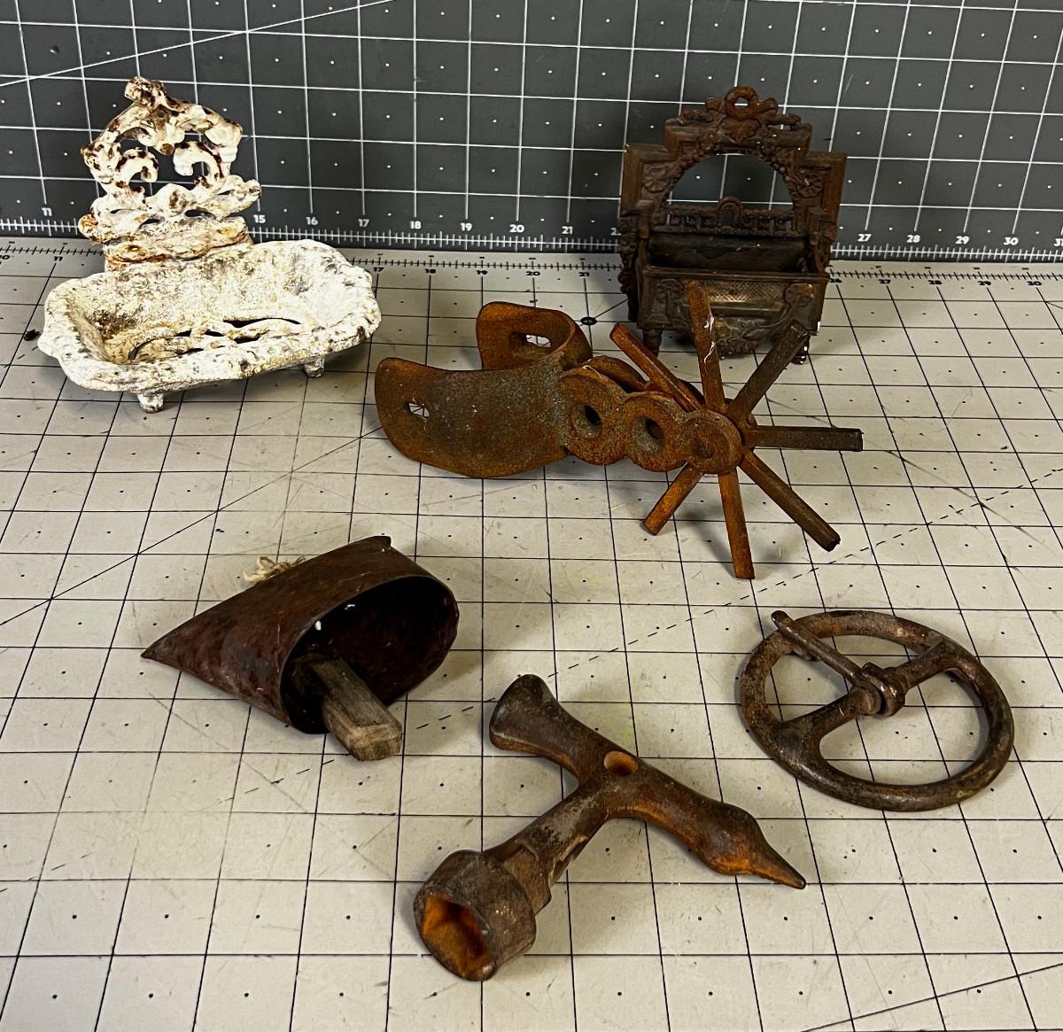 Rusty Iron: Spur, Bell, Soap Dish LOT