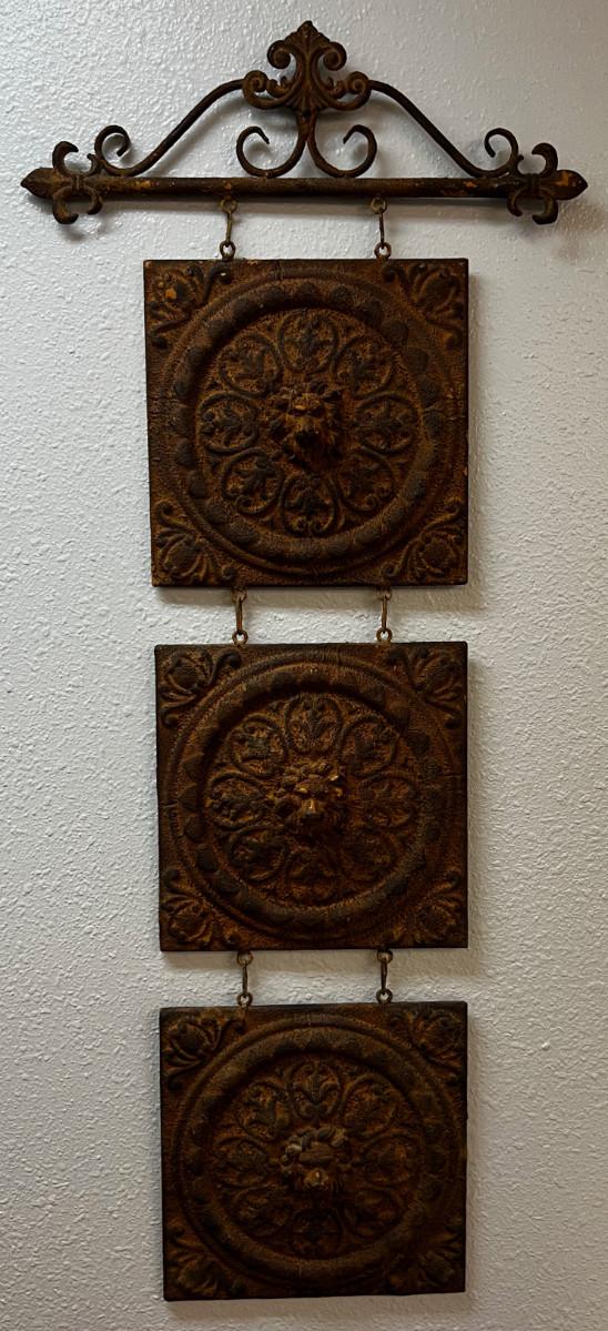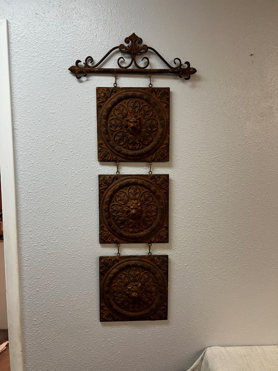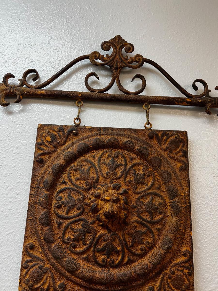Rusty Metal Wall Hanging Lion Heads