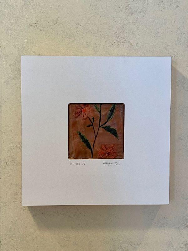 The subject item for auction sale is a small original mixed media work by Kansas artist Ruth Ann Keefer titled