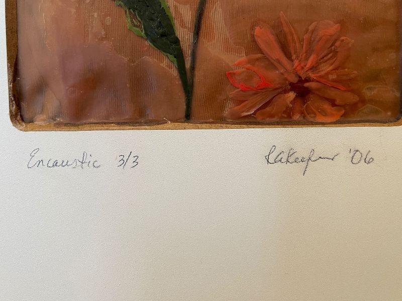 Ruth Ann Keefer Signed Encaustic and fiber Painting