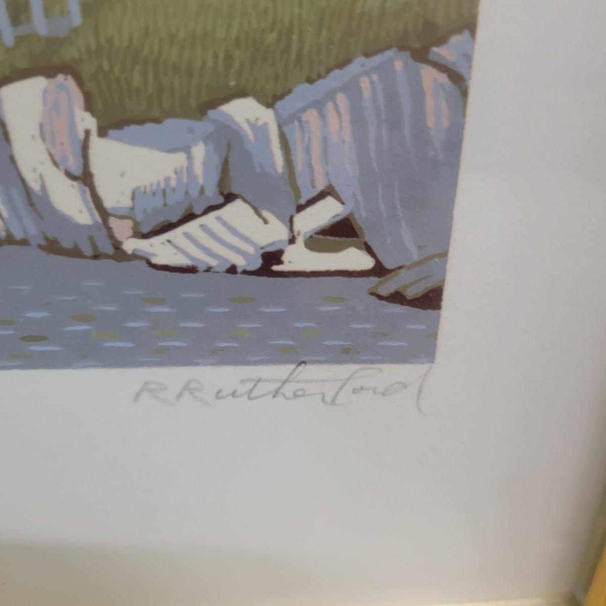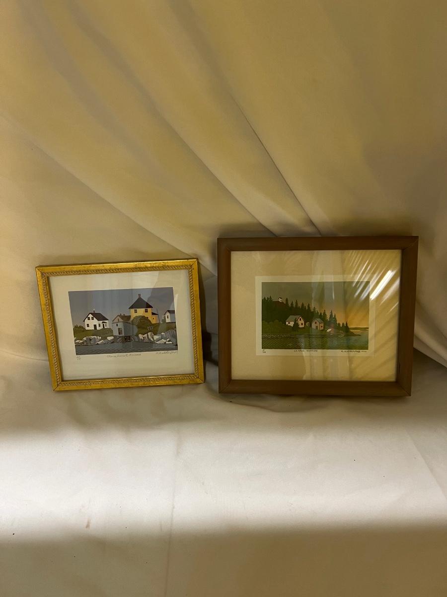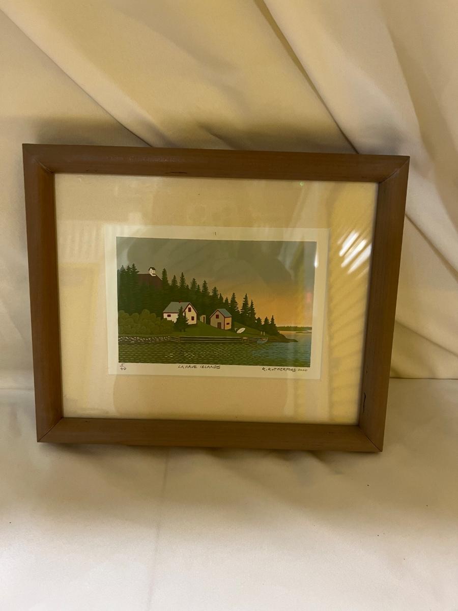 A pair of signed prints, by R. Rutherford. The frame on both prints are wood. There’s a rip on the back through the paper but nothing serious, (see photos) The glass and Wood is in good condition. Measurements for the bigger one are 11”x9”x4”