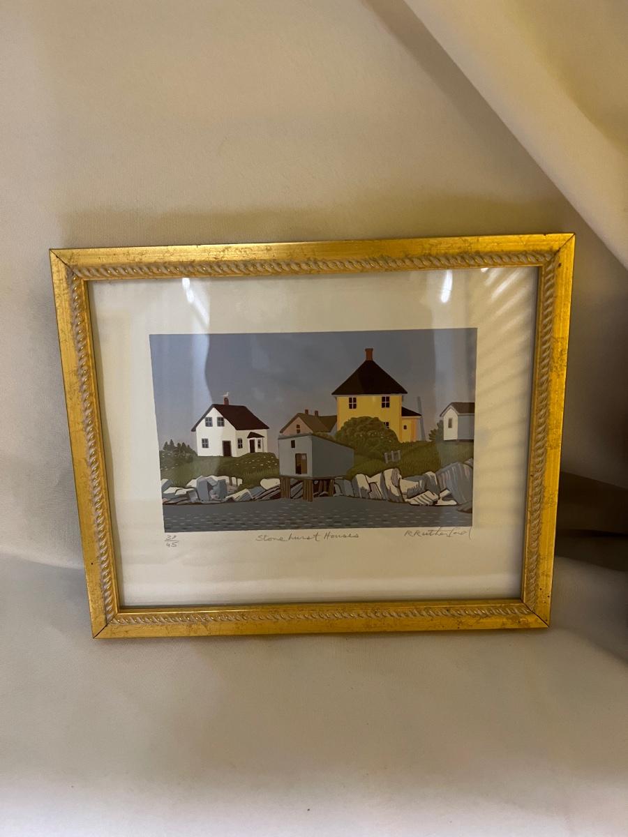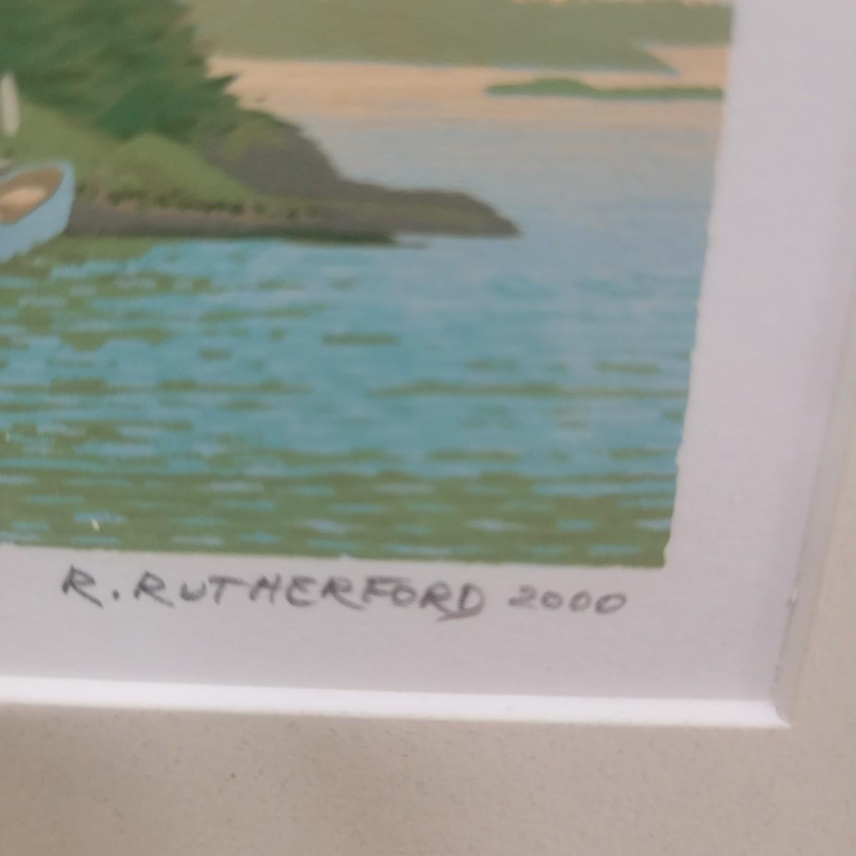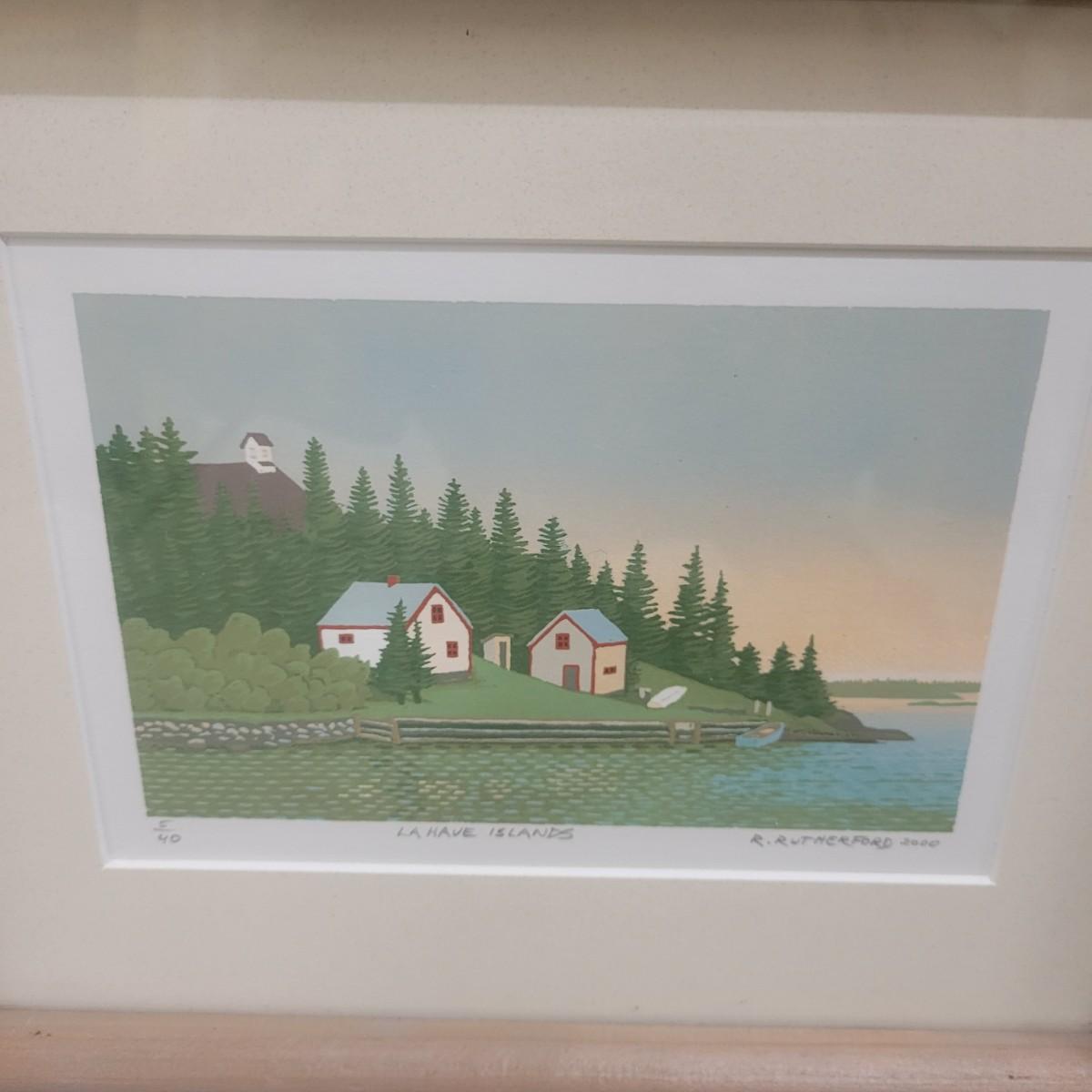 A pair of signed prints, by R. Rutherford. The frame on both prints are wood. There’s a rip on the back through the paper but nothing serious, (see photos) The glass and Wood is in good condition. Measurements for the bigger one are 11”x9”x4”