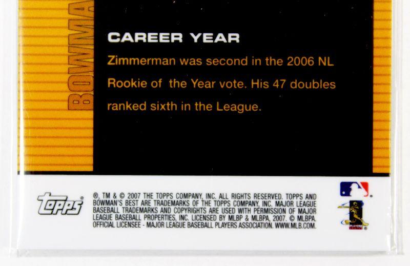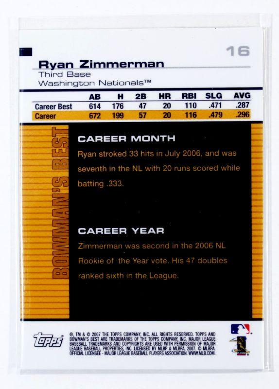 RYAN ZIMMERMAN Bowman's Best #16 2007 Topps Washington Nationals Baseball Card MINT